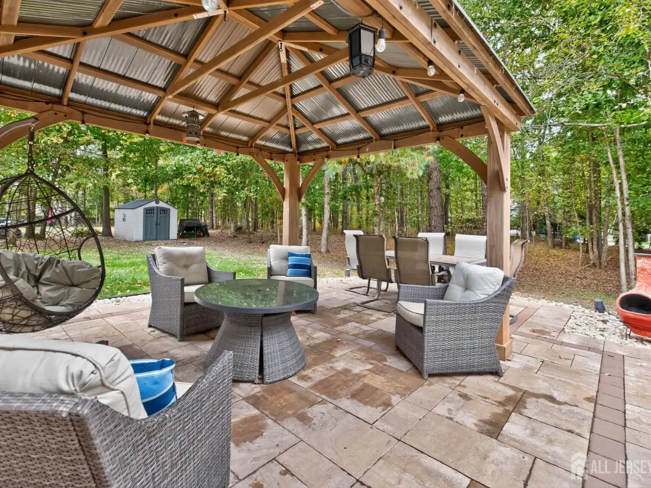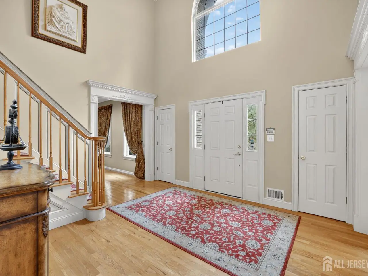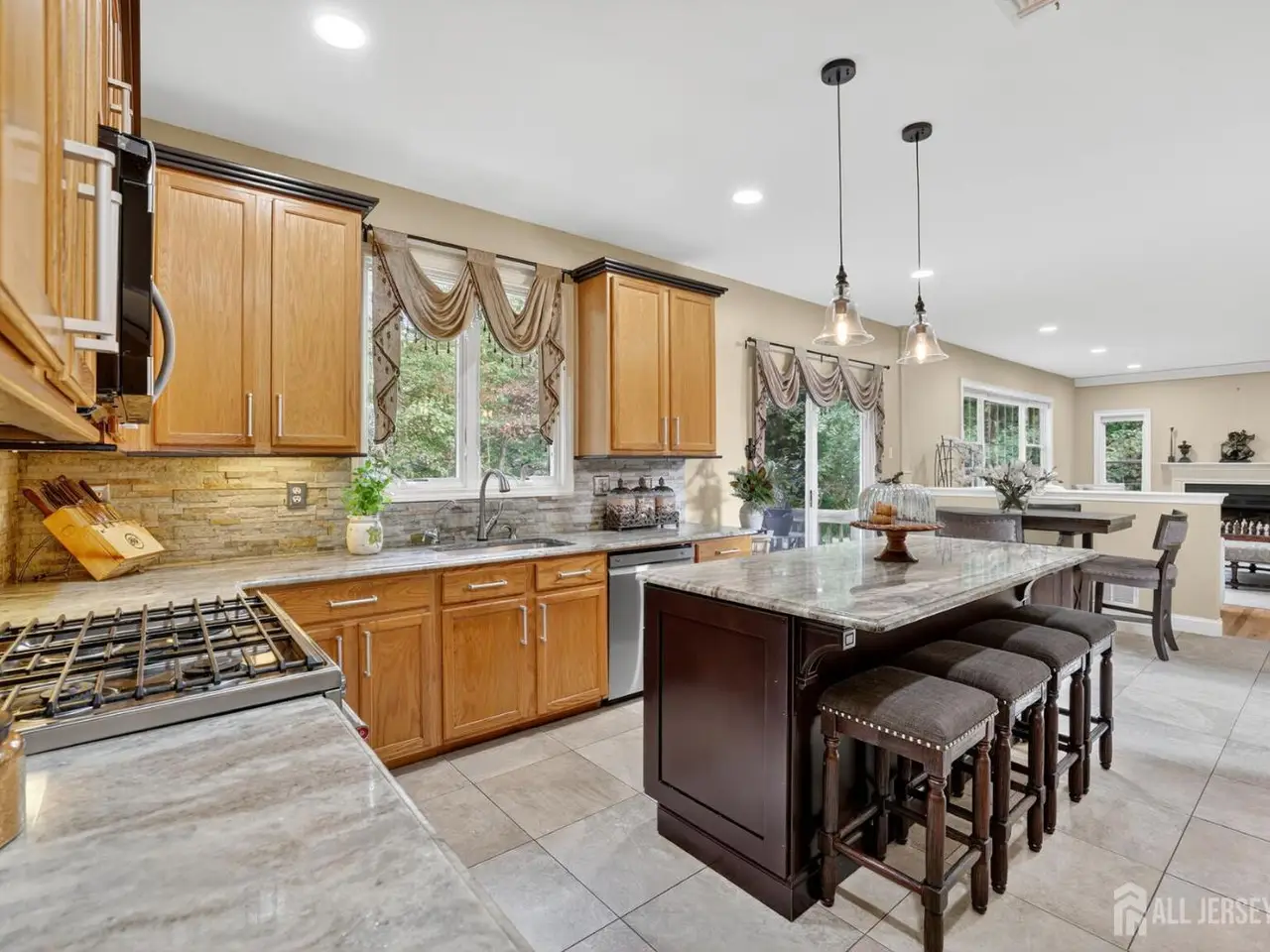 Nestled in a tranquil neighborhood, this elegant colonial home showcases five generously sized bedrooms and 2.5 bathsincluding a versatile first-floor guest bedroom. At the heart of the home lies a stunning gourmet kitchen, complete with marble countertops, a center island with built-in wine rack, pendant lighting, and sleek stainless steel appliances. The kitchen opens seamlessly into a sun-drenched family room anchored by a cozy gas fireplace, creating the perfect space for everyday living and entertaining. Rich hardwood floors span both levels, complemented by custom moldings that frame the dramatic 16-foot foyer and staircase. Throughout the home, extensive mood lighting and recessed fixtures create a warm, inviting ambiance in every room. Additional highlights include a central vacuum system, a beautifully landscaped backyard with a paver patio and gazebo ideal for outdoor gatherings, and an underground sprinkler system for effortless maintenance. This move-in ready residence blends timeless charm with modern upgrades offering comfort, style, and convenience for today's lifestyle.