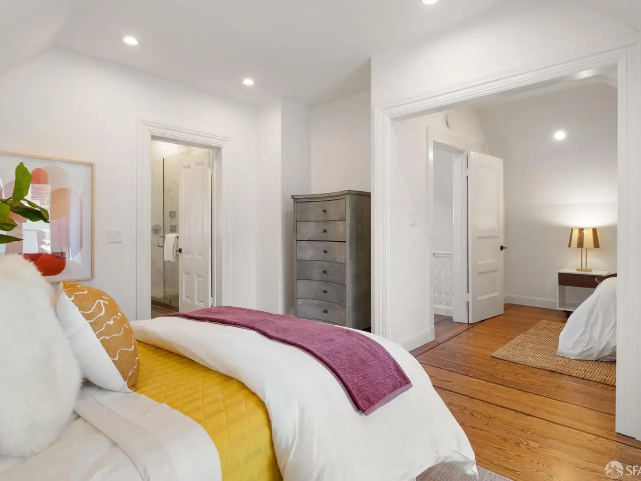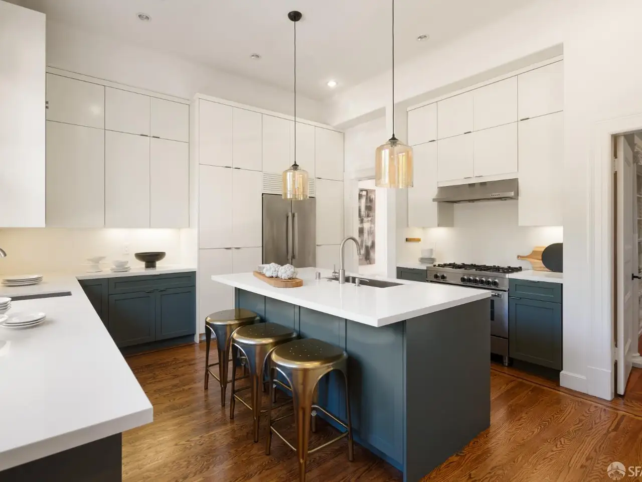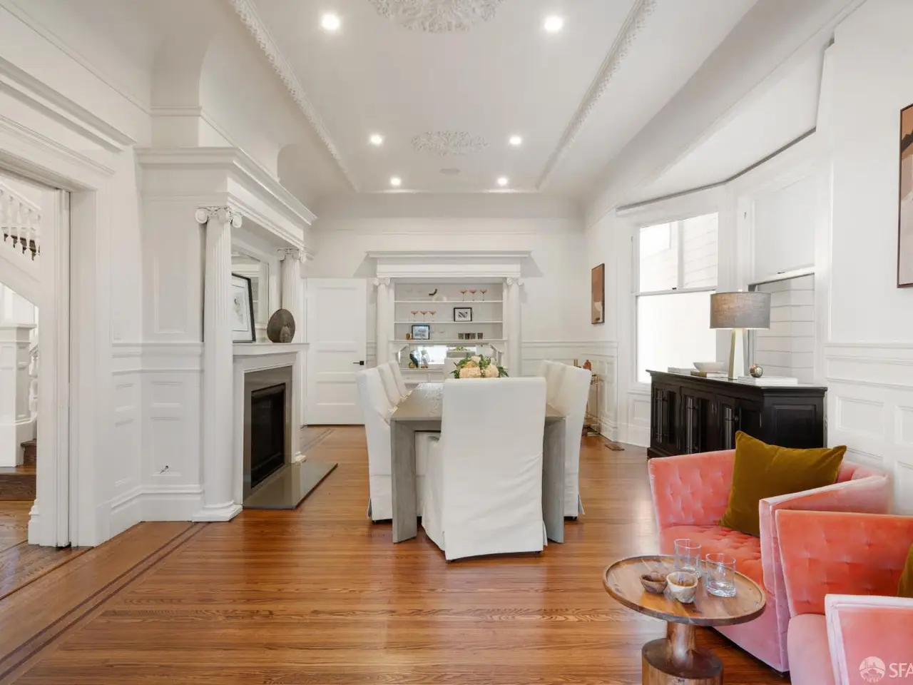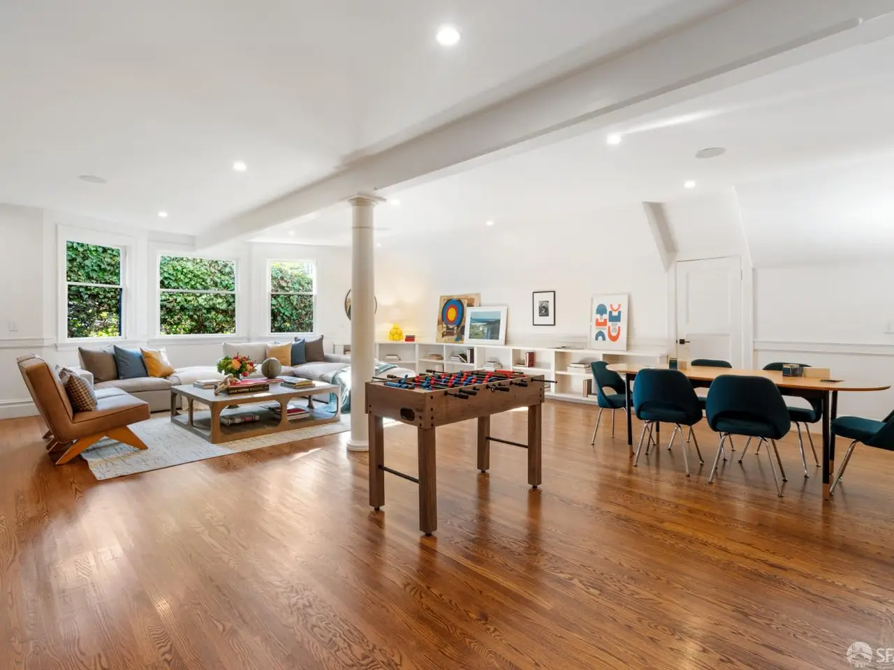 Designed by Swedish architect Nicolaus August Nordin, 199 Carl Street is a stately corner single-family home nestled in the desirable Cole Valley neighborhood. This thoughtfully remodeled residence combines timeless period details with modern luxury, offering an exceptional living experience across four expansive levels. The spacious floor plan features high ceilings and generous living spaces throughout. The main level boasts a chef's kitchen outfitted with top-of-the-line appliances and a large island, a welcoming foyer, a sophisticated living room, and an elegant dining area perfect for entertaining. A half bathroom and direct access to the professionally landscaped backyard complete this level. Upstairs, you'll find three bedrooms, including the primary suite, each with its own ensuite bathroom. The top floor also includes a large family room for children's activities, an additional bathroom, and flexible rooms that can serve as home offices, guest bedrooms, or fitness spaces. The lowest level offers abundant storage options, a half bathroom, and a versatile ballroom, ideal for entertaining guests or creating a luxurious guest retreat. This extraordinary home seamlessly blends historic charm with contemporary amenities, offering a truly exceptional lifestyle.
