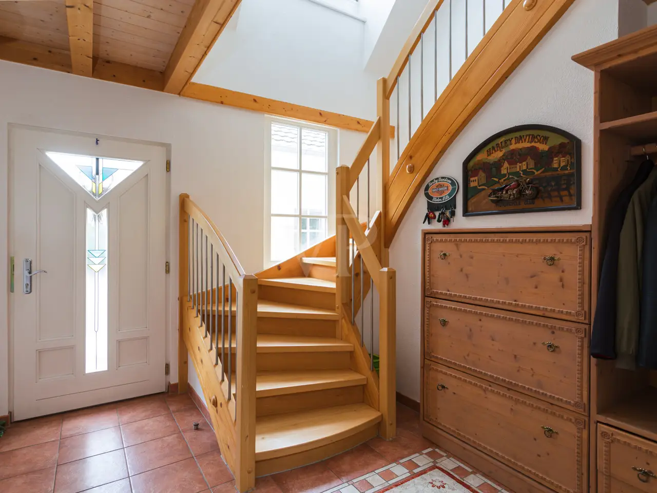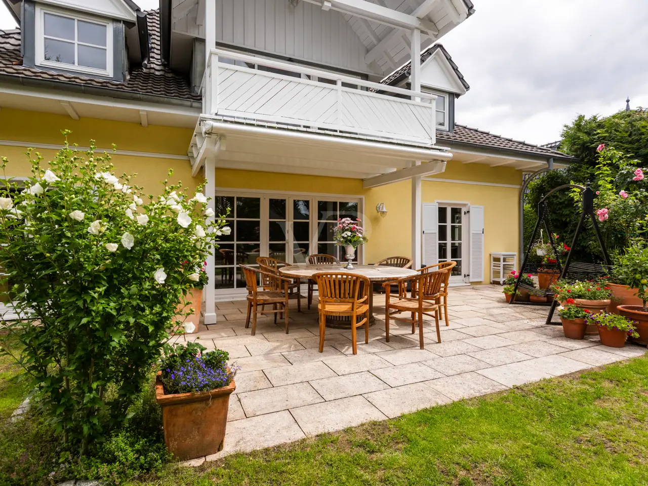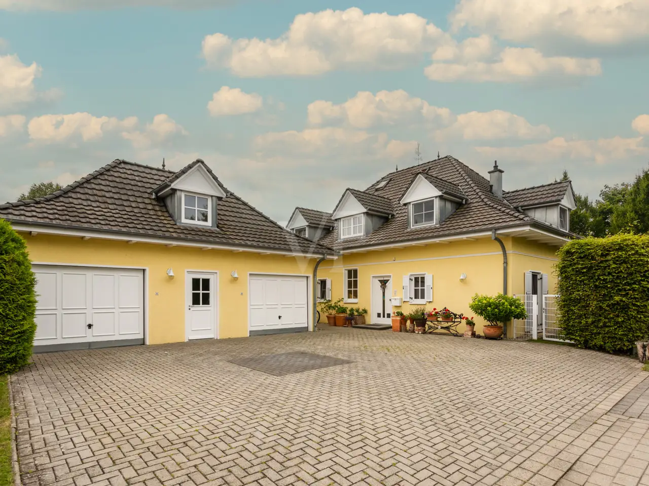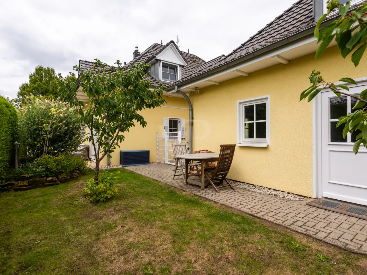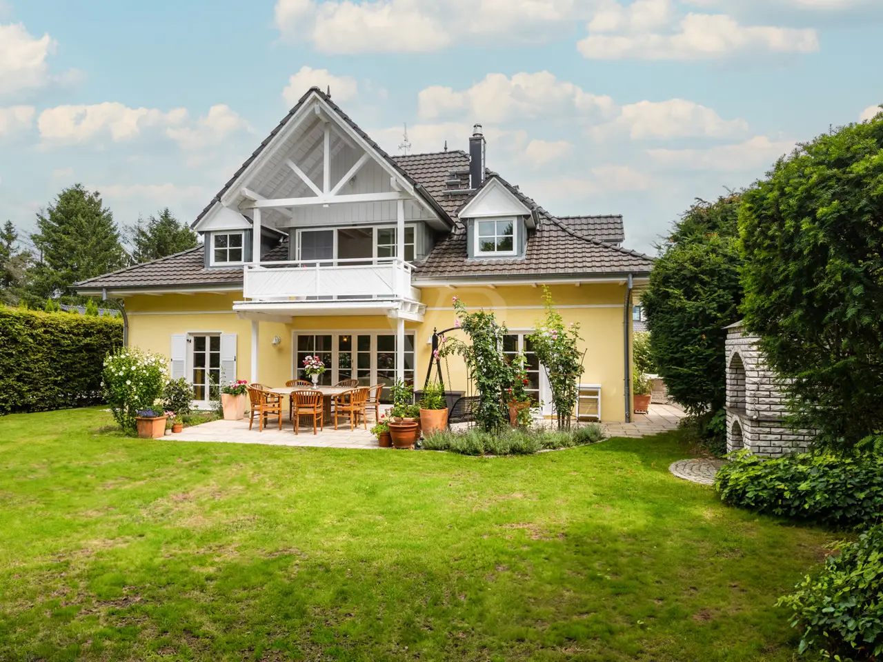 This well-kept detached house from 1995 boasts a spacious layout and a quiet residential area right next to Seddiner See golf club. With a living space of approx. 232.76 m² on a plot of approx. 895 m², the property offers a wide range of options for individual living concepts - ideal for families or couples who value living comfort and privacy. An inviting entrance area awaits you on the first floor, from where you enter the spacious, light-flooded living and dining area. Large windows and direct access to the terrace create a harmonious connection between the indoor and outdoor areas. An awning provides pleasant shade on the main terrace on sunny days. The kitchen is equipped with a fitted kitchen, offers plenty of space for culinary activities and also has access to one of the two terraces. There are a total of six well-proportioned rooms, including four bedrooms spread over two floors. Two bathrooms ensure comfort in everyday life and offer enough space for the whole family. The majority of the windows are fitted with blinds so that light and privacy can be customized. There is also a converted attic, which is currently used as a yoga room. The property also has a spacious balcony, which also covers the large main terrace, as well as a well-tended garden with a brick-built barbecue, perfect for socializing with family and friends. There are two garages for the vehicle fleet in the separate outbuilding, which also offers storage space for garden tools, bicycles and other utensils. Thanks to the well thought-out layout, there is enough space for every member of the family - even if you need more space. The location impresses with absolute tranquillity in the midst of natural surroundings. The proximity to the renowned Seddiner See golf club is a particular highlight for golf enthusiasts. At the same time, shopping facilities, schools and other everyday amenities are within easy reach. This detached house combines high-quality living with practical furnishings and an idyllic location and can be occupied at short notice. See for yourself during a viewing - we look forward to hearing from you.