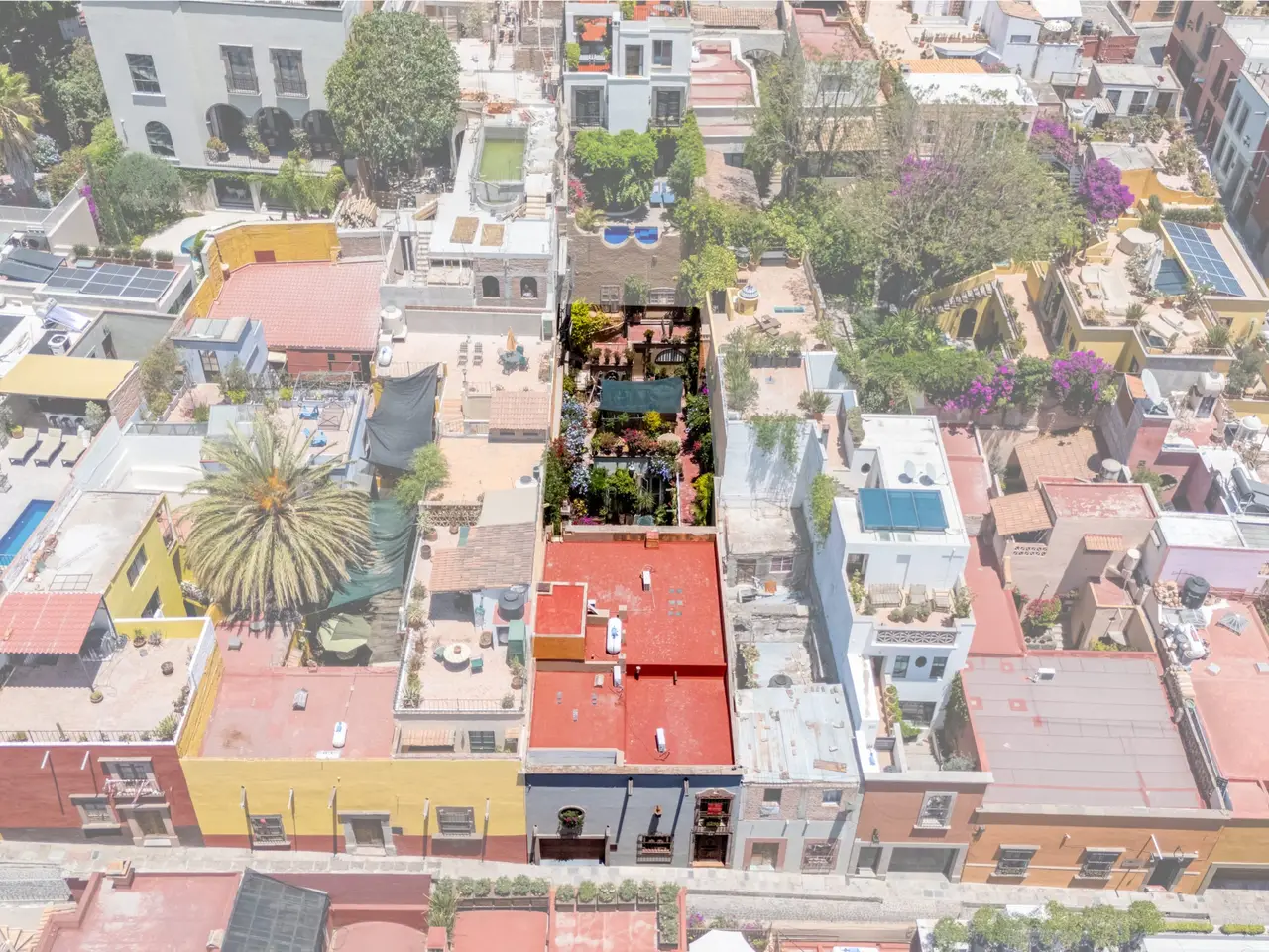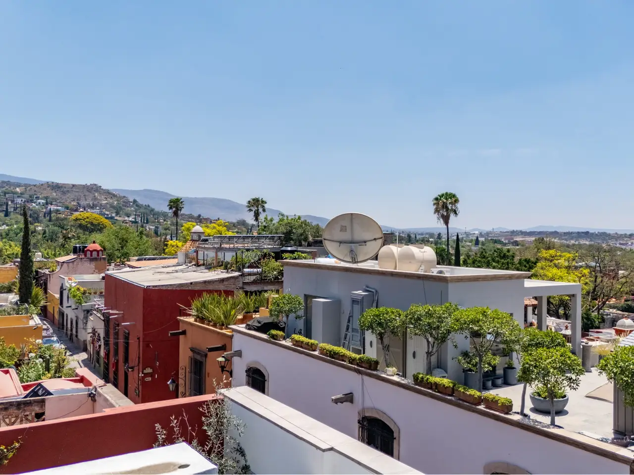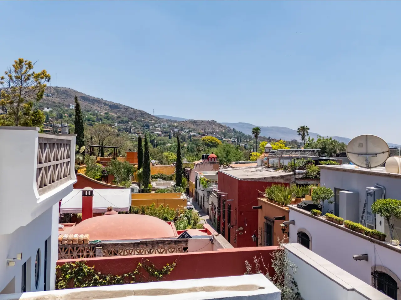 Casa Peggy — Timeless Elegance in the Heart of San Miguel Tucked away on the prestigious Diez de Sollano y Dávalos, one of San Miguel de Allende’s most sought-after and picturesque streets, Casa Peggy is a true southern belle—graceful, refined, and rich in character. This beautifully appointed residence features a two-bedroom main house with the flexibility of a third bedroom or studio, as well as a spacious one-bedroom apartment discreetly situated at the rear of the property—ideal for guests or rental income. Step inside to find soaring beamed ceilings, antique imported marble floors, and a cantera stone fireplace anchoring the elegant living room. The marble floors continue into the refined dining area, where French doors open to a lush central patio, creating seamless indoor-outdoor living. The kitchen, both practical and charming, is outfitted with a breakfast nook, oversized pantry, and wet bar, offering all the essentials for effortless entertaining. At the heart of the home lies a flower-filled courtyard, framed by New Orleans-style columns, and surrounded by terraced gardens on the second floor—evoking a sense of serene, southern charm. Upstairs, two generous en suite bedrooms await, each designed with comfort and privacy in mind. The primary suite opens onto a large balcony beneath a New Orleans-inspired roofline, perfect for morning coffee. A third upstairs room, currently configured as an expansive dressing room, can easily transform into a guest bedroom, private office, or creative studio. With its solid construction and prime location, Sollano 44 offers the exciting potential to build upward—expanding the second level or adding a full third floor to capture the panoramic rooftop views that define San Miguel living. And with a private garage, this historic gem offers a rare and highly coveted convenience in the city center.