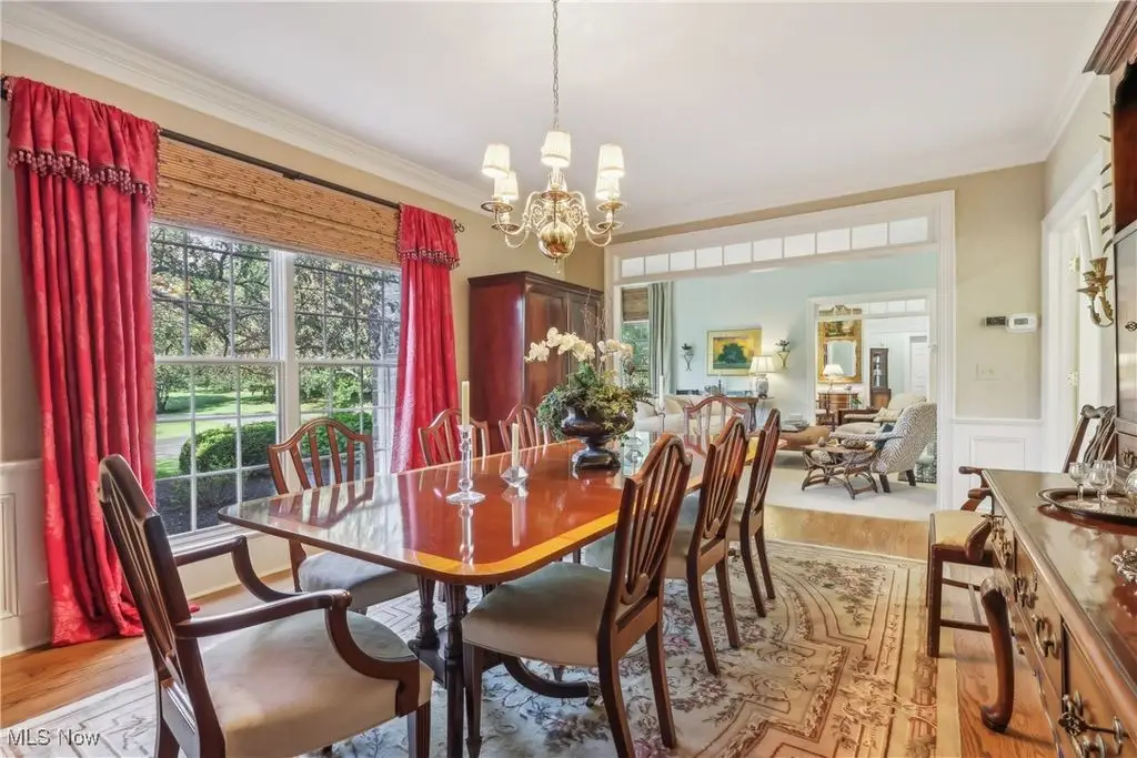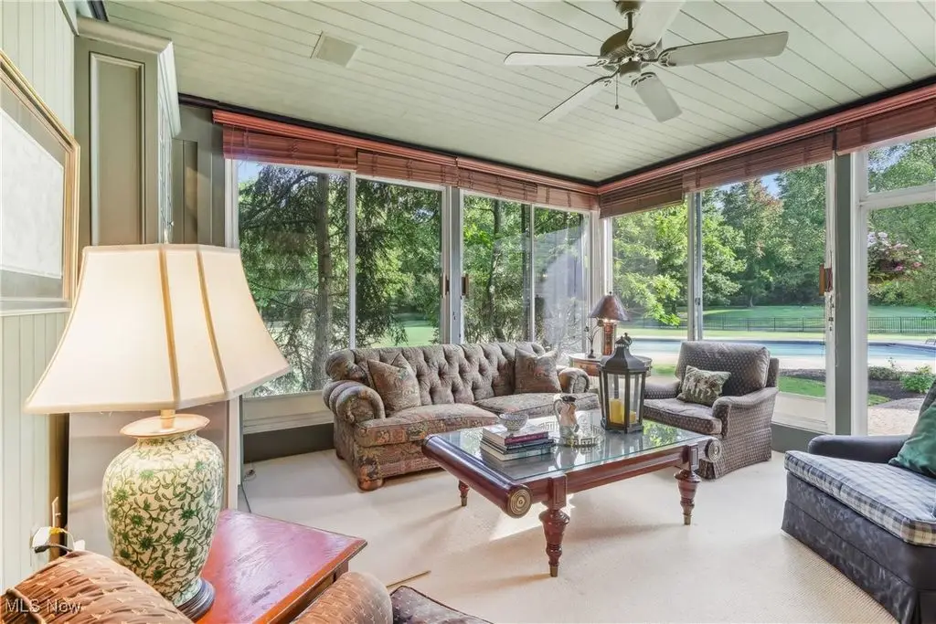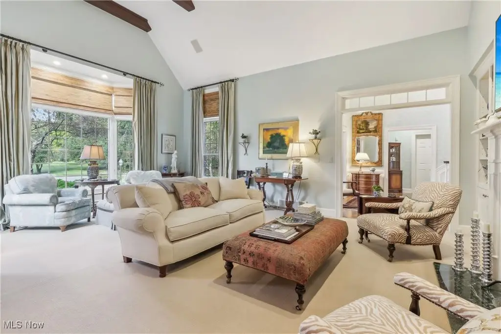 This exceptional 17-room Georgian Colonial combines timeless elegance with inviting warmth. Rich in architectural detail, the home features a gourmet kitchen, stately formal rooms, a spacious great room, a four-season sunroom, and a refined library. The luxurious primary suite includes a loft, generous walk-in closets, and a custom-designed glamour bath. The finished lower level offers versatile living space with a recreation room, nanny suite, and wine cellar. Outdoors, enjoy resort-style amenities including a pool, tennis court, and outdoor hearth areaC/B?B=ideal for entertaining. A whole-house generator provides added peace of mind. Set on a private, panoramic lot on a quiet cul-de-sac, this extraordinary estate is just 10 minutes from the charming Village of Chagrin Falls. A rare opportunity not to be missed!