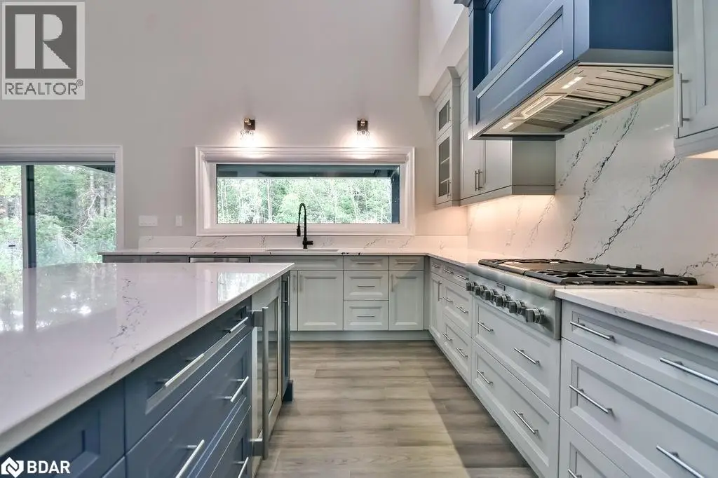 One-of-a-Kind in Braestone Estate Home with Legal Coach Apartment! Welcome to 4 Clydesdale Court, a custom-designed estate-style home perfectly positioned on a quiet court. Backing onto green space, this stunning residence blends timeless craftsmanship with upscale finishes, offering a luxurious lifestyle minutes from Barrie and Orillia. The open-concept main floor features soaring vaulted ceilings, oversized windows, and a gas fireplace. Walk out to a covered balcony with composite decking and glass railings perfect for serene views or entertaining. The chef-inspired kitchen includes granite counters, pantry, custom cabinetry, and $75k in built-in Thermador appliances. The main floor primary suite is a true retreat with a spa-like 5-piece ensuite, soaker tub, walk-in shower, and heated floors. Additional main floor highlights include a formal dining room, a den (ideal office or bedroom), a stylish powder room, and laundry. Upstairs, two large bedrooms each have 3-piece ensuites and walk-out access to a shared balcony. A major highlight is the finished triple car garage with private entry to a bright, self-contained legal coach apartment complete with kitchen rough in, bathroom, and laundry -ideal for family, guests, or rental income. The full-height unfinished basement with large windows offers excellent future potential for additional bedrooms, rec-room or home gym - the possibilities are endless. Enjoy the best of Braestone award-winning for its trails, equestrian features, farm-to-table charm, and vibrant community. Close to skiing, golf, Bass Lake, and major commuter routes, this rare offering combines privacy, elegance, and lifestyle in Oro-Medonte's most sought-after neighborhood. (id:7434)