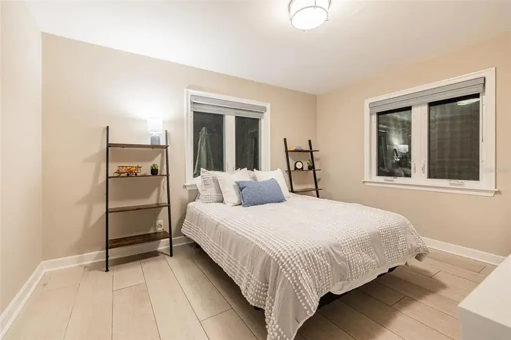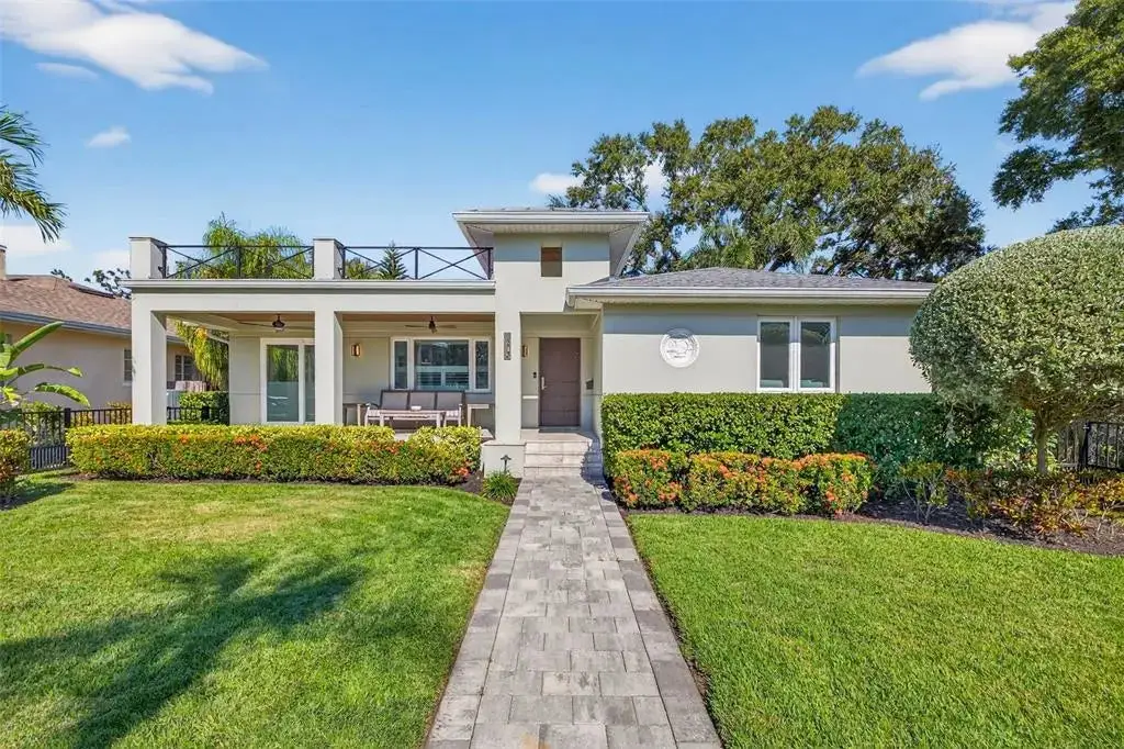 Under contract-accepting backup offers. Discover a beautifully redesigned Mid-Century Modern home in the heart of the historic and highly coveted Old Northeast—one of the most sought-after neighborhoods in St. Petersburg and in the entire country. Known for its brick-lined streets, historic architecture, and unmatched walkability, Old Northeast offers a lifestyle that blends charm, community, and convenience like nowhere else. Just two blocks from the waterfront parks, you’ll enjoy daily access to tennis courts, a community pool, volleyball, shaded green spaces, and the scenic waterfront sidewalk that guides you straight into our vibrant downtown St. Pete. Coffee shops, award-winning restaurants, art galleries, the St. Pete Pier, and year-round events are all moments from your door. The Vinoy Golf Club is only minutes away, adding yet another luxury amenity to this exceptional location. Step inside to a thoughtfully redesigned open-concept layout that honors Mid-Century lines while embracing modern living. The split floor plan offers privacy, functionality, and seamless flow. The spacious kitchen features a center island with breakfast bar, stainless steel appliances, and overlooks the formal dining area—perfect for entertaining. Hurricane-rated windows and sliding doors fill the home with natural light and open to a serene backyard with room to add a pool. The alley-access garage and oversized parking pad provide convenient parking for multiple vehicles. The private primary suite includes a walk-in closet with custom shelving and a beautifully updated en suite bath with double vanity and designer walk-in shower. Two additional bedrooms are spacious and offer custom closets. Additional features include an indoor laundry room, inviting front porch, updated plumbing and electrical, whole-house generator, and—best of all—no flood insurance required. This home is in a non flood zone and sustained NO DAMAGE or water intrusion from recent storms. This is your opportunity to live in one of St. Pete’s premier neighborhoods—where the best of coastal living, culture, and community meet. Welcome to Old Northeast living at its finest.
