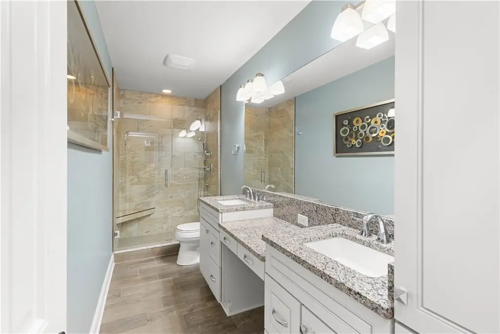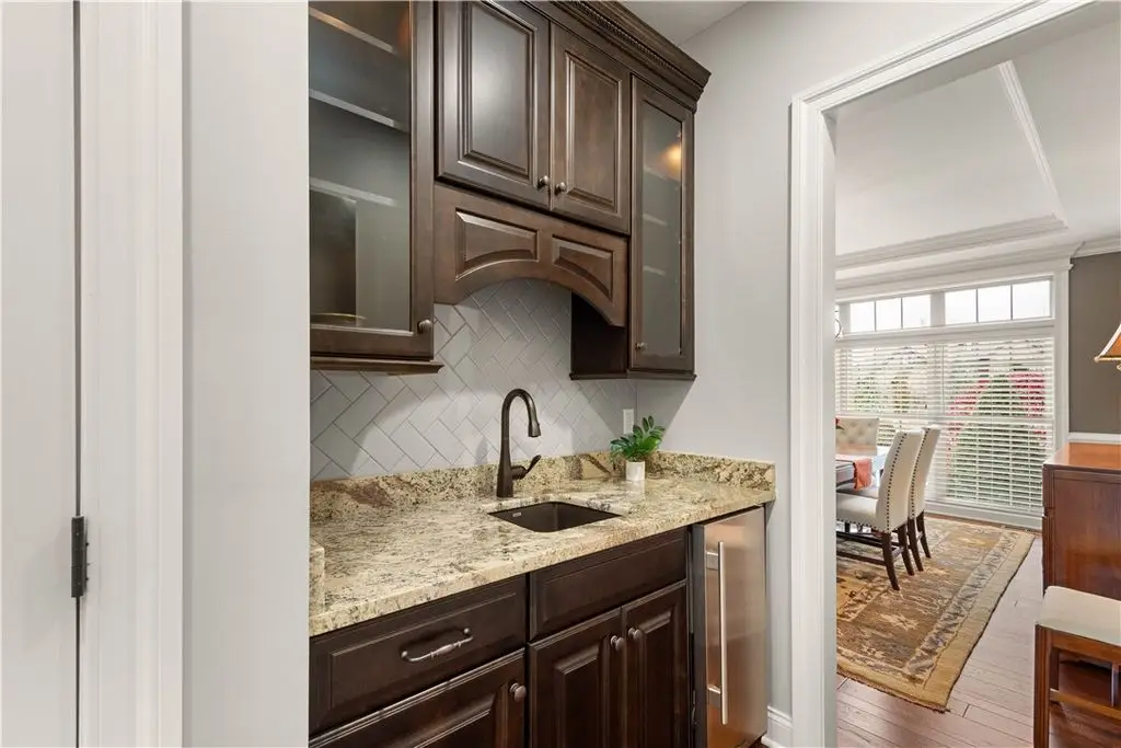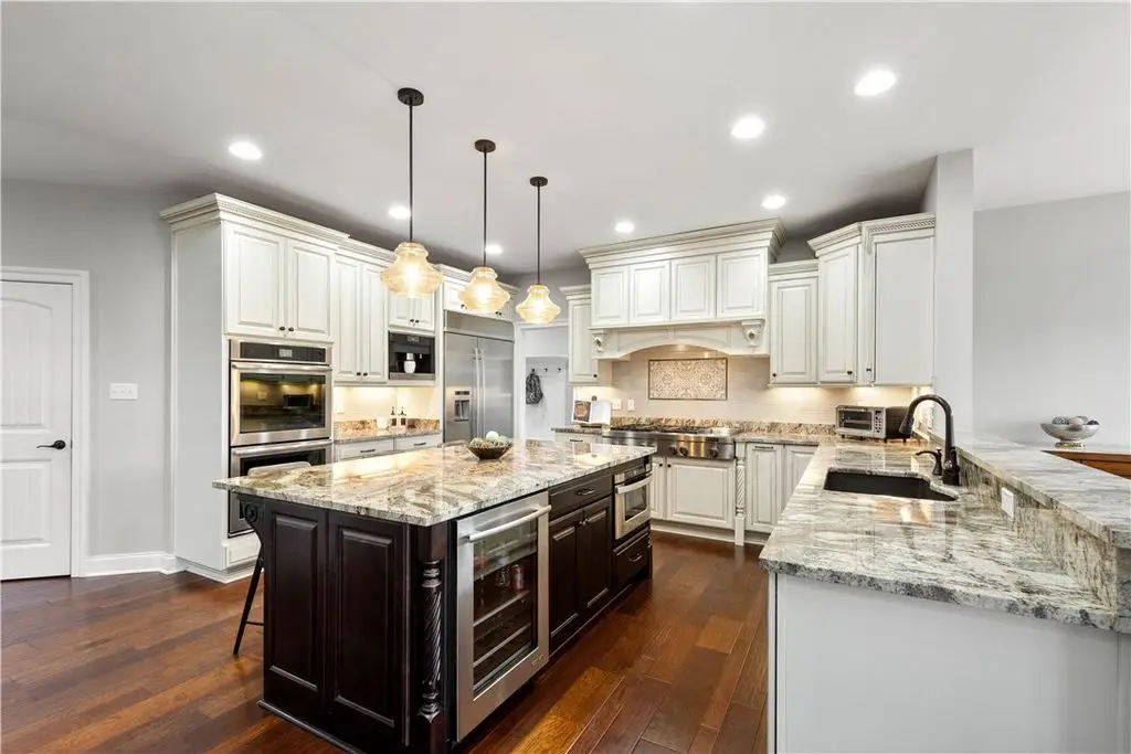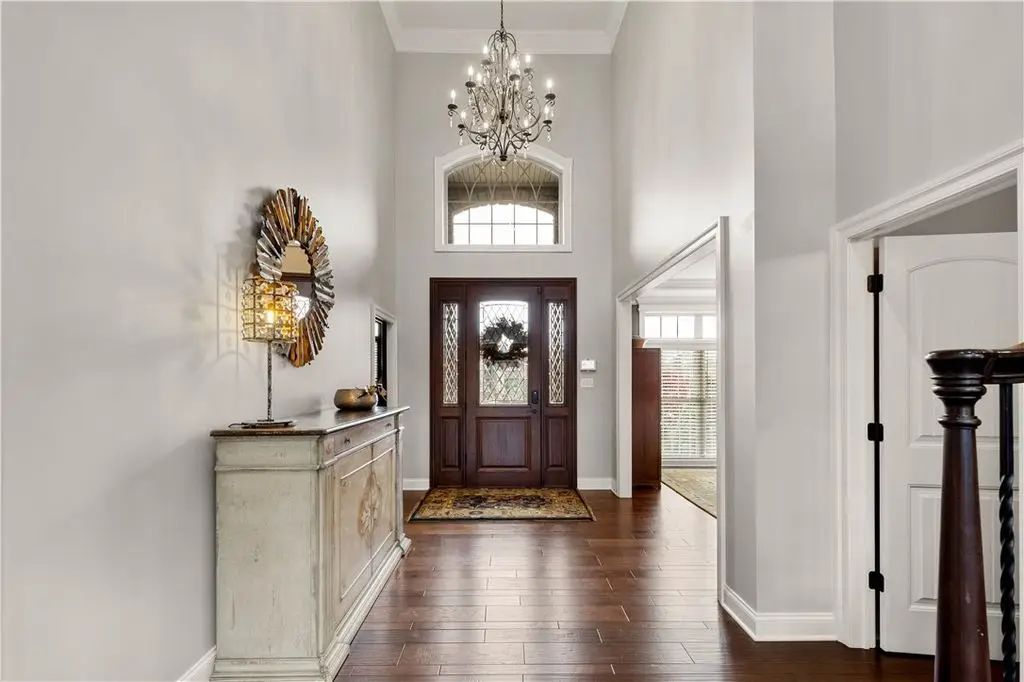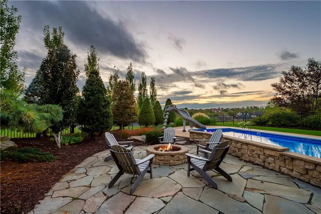 Custom built elevated luxury that invokes feeling instantly at home while simultaneously offering a vacation lifestyle year round! 2 story great room with floor to ceiling windows, dramatic stone fireplace & coffered ceiling open to chef's kitchen w/ massive island, luxury appliances including a built-in Miele espresso machine, walk-in pantry & large breakfast room. Host holiday meals in the formal dining w/ butler pantry. The dedicated office with vaulted ceilings & built-ins. A mudroom leads to a laundry room & oversized, heated 3 car garage. The main level spa-like primary suite is your oasis. Upstairs you'll find 2 bedrooms that share a Jack n Jill, an ensuite bedroom & 5th bedroom best used as a playroom, teen study/lounge. Finished lower level game room with bar, gym, 6th bedroom & full bath. Relax outdoors in either the expansive deck offering covered & open air space, under the covered patio with outdoor kitchen, inside the heated saltwater pool or around the stone fire pit.