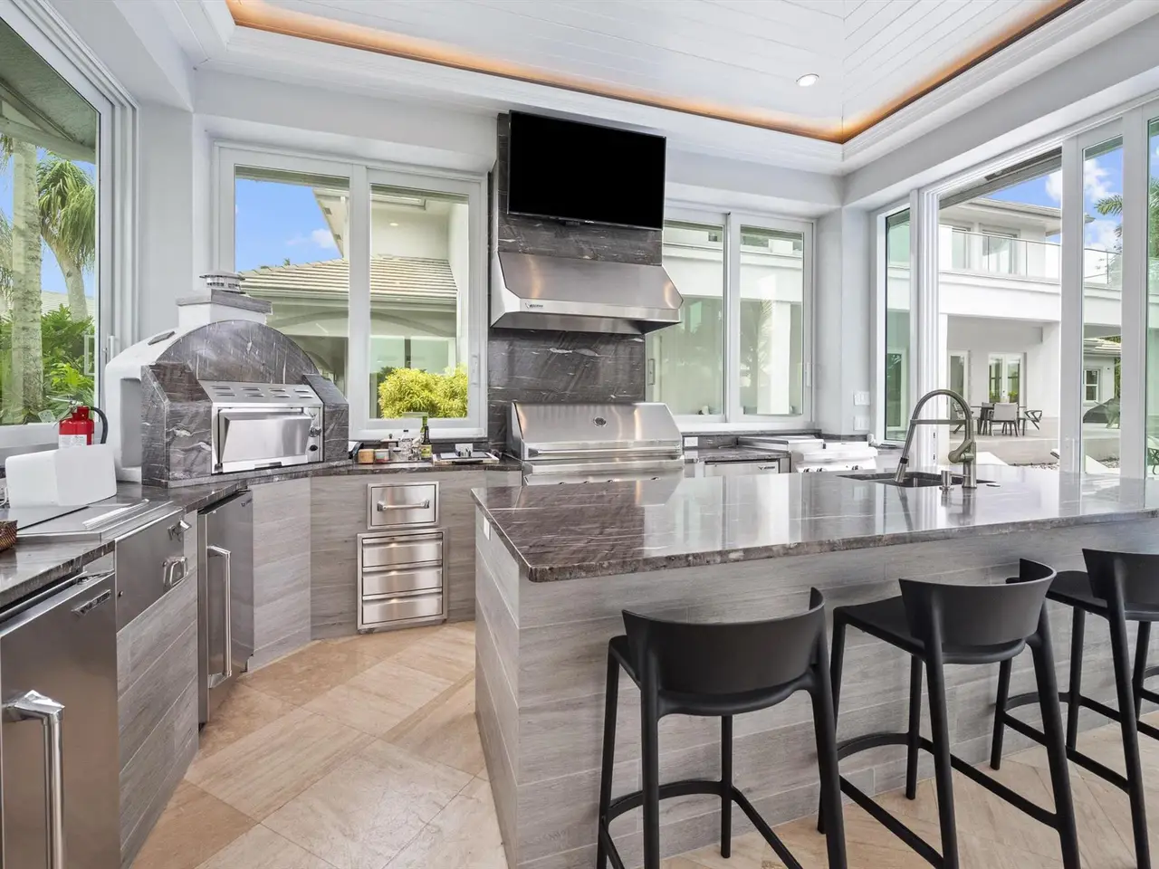 Welcome to Aero Club, an exclusive aviation community boasting its own private runway. This custom-built residence features four bedrooms and six baths (five full and one half), spanning approximately 6,935 sq ft of luxurious living space. Perfectly designed for pilot comfort and entertaining, it sits on the only Runway double-lot (2.05 acres) available for sale and is ready for you to move in.Step outside to discover the pool and inviting beach seating area, a cozy gas fire pit, spa, and sauna. The outdoor living space is enhanced by a climate controlled panoramic view summer kitchen, loaded with high-end BBQ and kitchen appliances, plus a dining area by the pool for effortless al fresco entertaining. Inside, you'll find a remodeled kitchen featuring double refrigerators and freezers, an induction cooktop, and a range hood ideal for culinary enthusiasts. For wine lovers, a sophisticated wine cellar adds an elegant touch to gatherings. Enjoy movie nights in the state-of-the-art home theater, designed for an immersive viewing experience. The property also includes two additional structures: A spacious modern hangar (73' x 69'; 5, 037 sq ft) fully air-conditioned and finished with polished concrete epoxy floors, capable of accommodating multiple aircraft, including the largest jet allowed in the Aero Club. Attached to the hangar is a 1-bedroom, 1-bath guest house with a full kitchen and living area perfect for pilots or visitors. Outside the hangar, a large concrete ramp and a helipad lead to a third structure: a 51' x 53' Hangar Port. Envision parking your airplane under this hangar port and walking into a 2, 120 sq ft under-air space housing an athlete's gym, a conference room and executive office with a half bath, and a 4-car collector's garage. This estate blends luxury, functionality, and endless possibilities. Don't miss the opportunity to own this remarkable property. Schedule a viewing today!