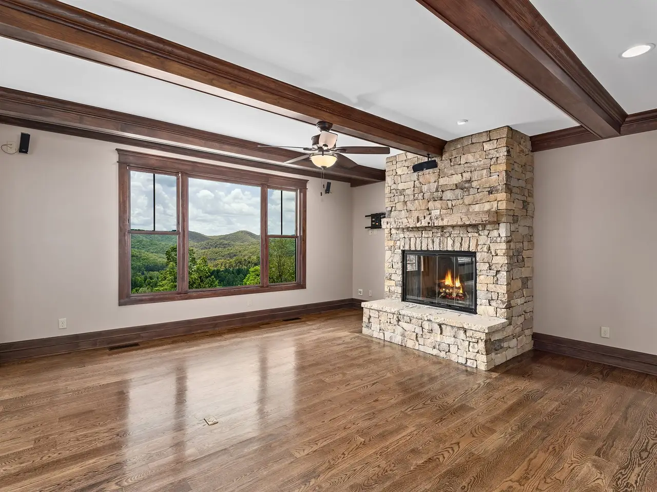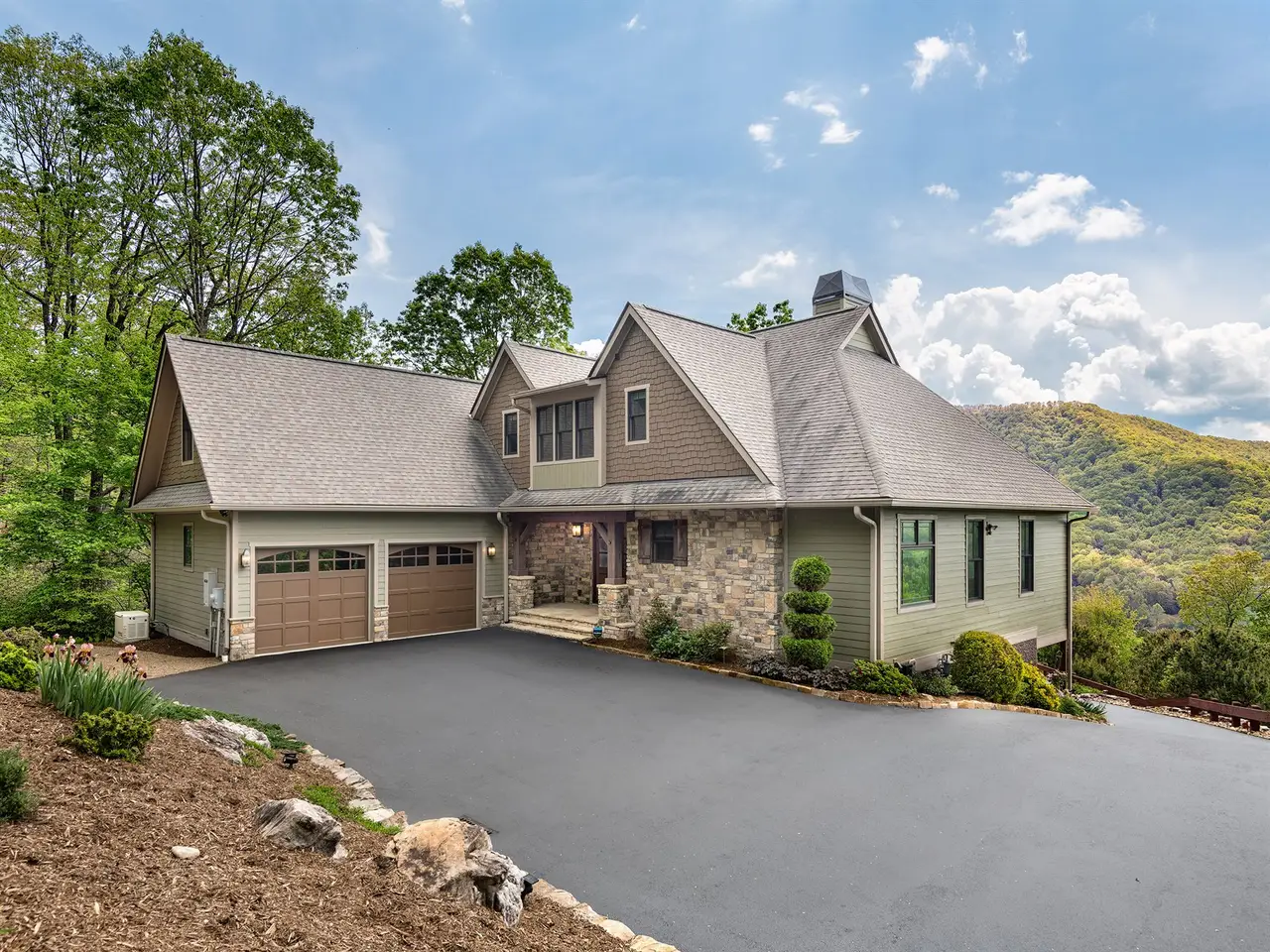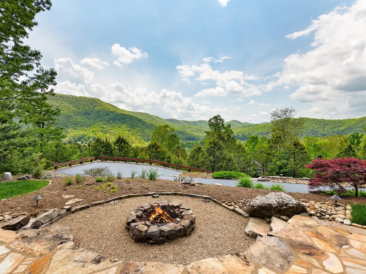 Experience refined mountain living in this stunning 4-bedroom, 4.5-bath estate nestled on 1.78 private acres in an exclusive gated community. With 4,100 square feet of thoughtfully designed space, this home offers the perfect blend of luxury, comfort, and natural beauty. Step into a sun-drenched, southern-facing great room featuring a striking fireplace and jaw-dropping mountain views. The chef's kitchen is a dream come true?complete with a gas cooktop, double oven, ample counter space, and beautiful cabinet, all flowing seamlessly into open-concept living and dining areas with rich wood flooring throughout. Enjoy peaceful mornings on the screened porch, quiet evenings on the expansive back deck, or gather around the custom fire pit under the stars. Professionally landscaped grounds provide year-round beauty and privacy.
