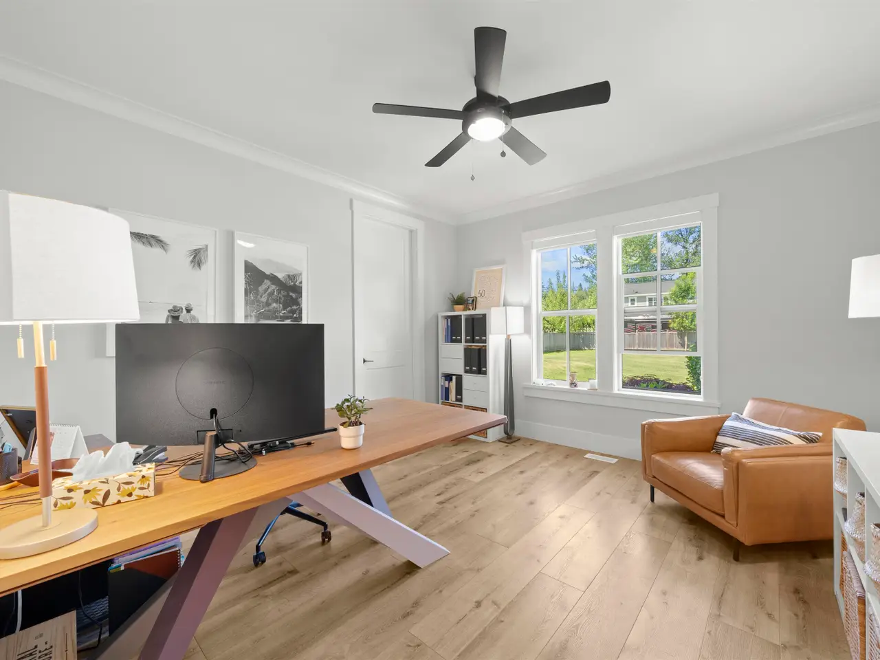 Crafted by Hanava Homes, this impeccably maintained rancher with loft rests on a spacious 0.79-acre lot, offering 3,897 sq. ft. of thoughtfully designed living space. Gated and private, the property features a triple car garage, RV parking, plenty of room for all your toys, and easy highway access. Inside, you'll find 5+ bedrooms, a flexible rec room, and vaulted ceilings, all centered around an open-concept layout that flows effortlessly from the living room to the dining area and kitchen- perfect for both daily living and entertaining. Whether you're enjoying your morning coffee on the covered front porch or dining on the back patio, peace and privacy surround you at every turn. Lovingly maintained by it's owners, this home offers the perfect blend of comfort, style, and space to grow.