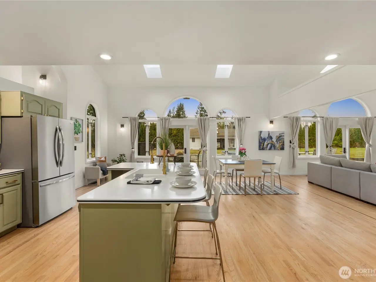 This one-of-a-kind gated Lake Stevens retreat spans nearly 5 acres of park-like grounds with the comforts of country living, offering elegance, privacy, & recreation. The grand 4,366 sq. ft. main residence radiates sophistication, complemented by a 800 sq. ft. guest house. Designed for relaxation & entertainment, the estate boasts a heated pool, hot tub, & sports court. A Russian fireplace efficiently radiates warmth throughout, while the easterly front porch captures morning sun. The expansive workshop suits car enthusiasts, RV storage, or hobbies. Additional features include RV hookups, an EV charger, 800+ arborvitae hedges, a permanent greenhouse, & a peek-a-boo view of Mt. Pilchuck, all near Lake Cassidy, Centennial Trial, & Highway 9