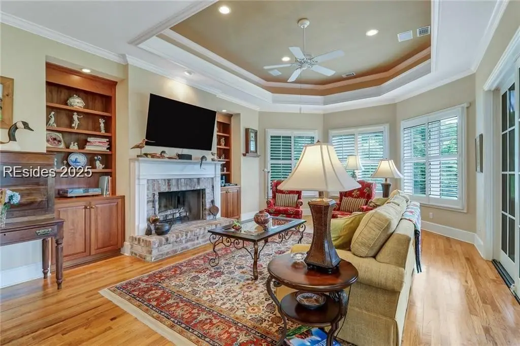 Custom Belfair home on Cumberland Drive with lagoon to golf course view – hole 13 E. This 4 bedroom, 4 1/2 bath home has been meticulously maintained and upgraded throughout. All bedrooms are ensuite. Incredible screen porch views are perfect for entertaining friends or for an early morning cup of coffee – or watching the occasional eagle dive bombing for a fish. There is great storage throughout the home. Conditioned wine room, spray foam insulation, two fireplaces, three car plus garage with epoxy floor, new roof, well for irrigation/water savings. This home is ready for you to start enjoying life in Belfair and the Low Country right away.