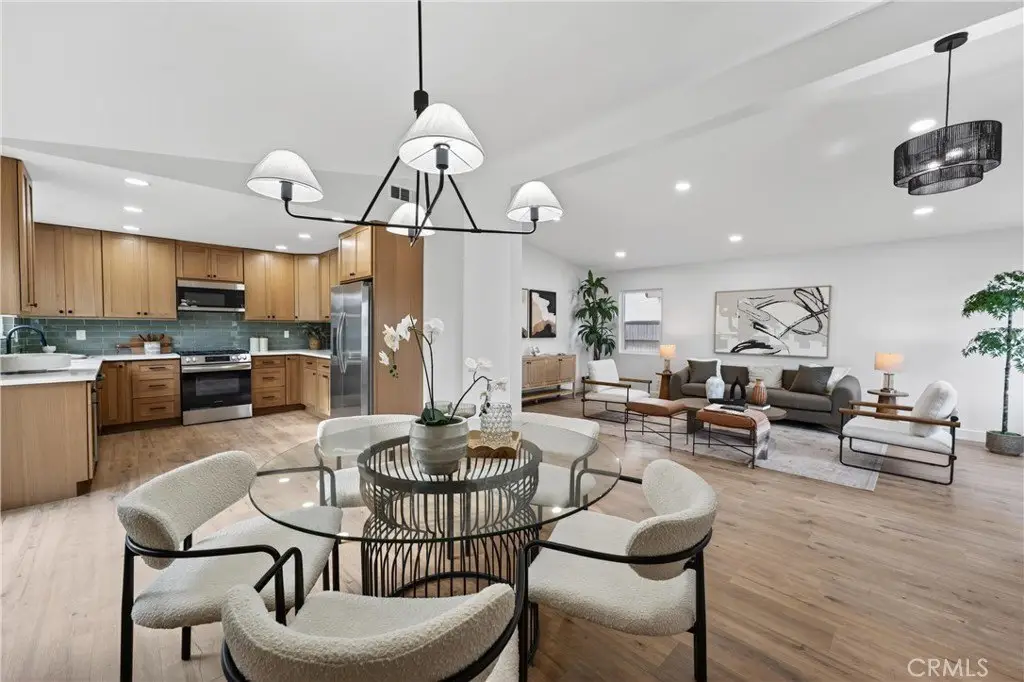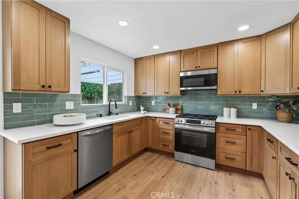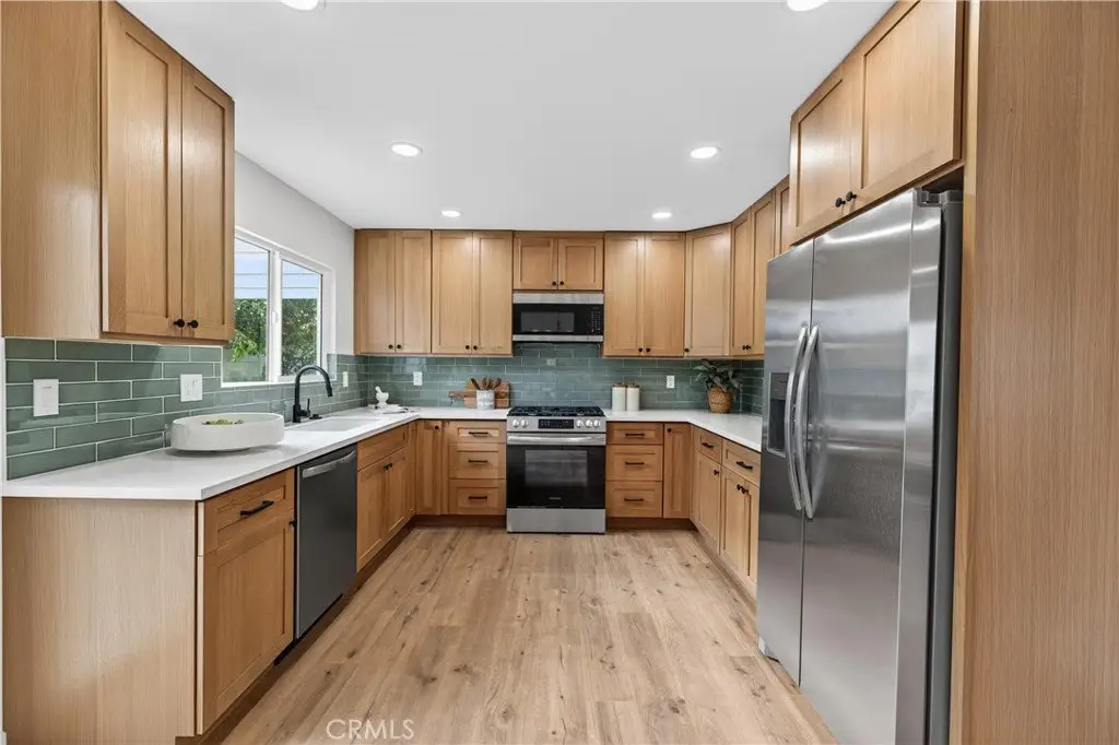 Tucked away on a quiet street in the heart of West Torrance, this fully reimagined Mid-Century Modern home blends timeless design with upscale contemporary finishes to create a sophisticated family retreat. Inside, the open-concept layout is bathed in natural light, highlighted by vaulted ceilings and clean architectural lines. Wide-plank luxury wood flooring flows throughout, leading to the chef’s kitchen with quartz countertops, custom cabinetry, an oversized sink, and brand-new stainless steel appliances. Both bathrooms exude spa-like elegance, featuring modern fixtures and designer touches. Down the hall, four spacious bedrooms provide comfort and versatility, including a serene primary suite with a dual-sink vanity and oversized frameless shower. Step outside to your private backyard oasis—complete with a grassy lawn, mature fruit trees, and a patio ideal for al fresco dining and entertaining. Perfectly positioned, this home is just a short walk to Victor Elementary and West Torrance High, two blocks from Victor Park and Henderson Library, and just over a mile to Redondo Pier and the beach. In one of Torrance’s most desirable neighborhoods, this home truly offers it all—style, function, and location.