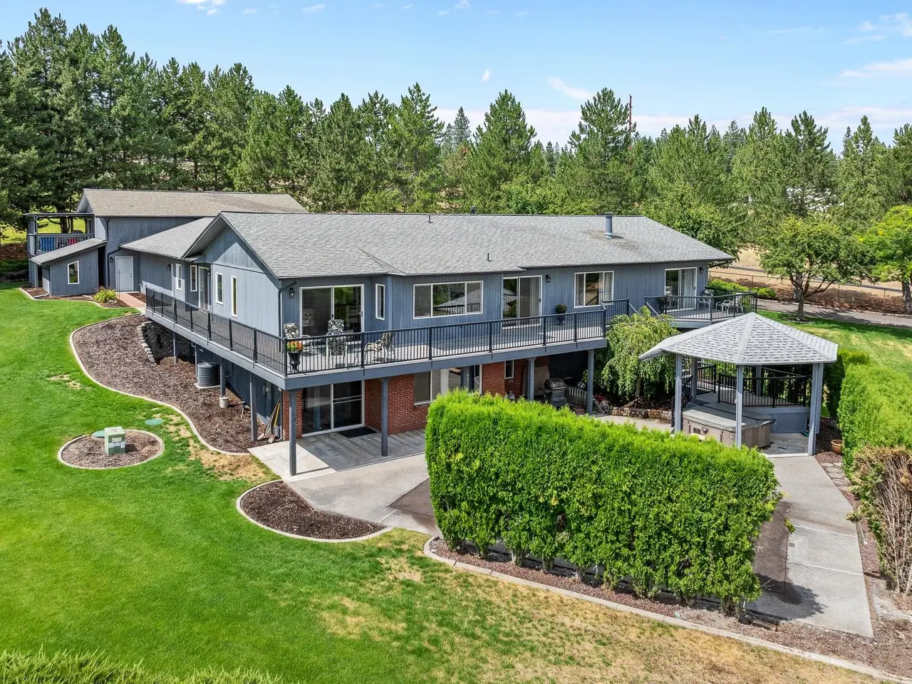Enjoy peaceful living & breathtaking views in this beautifully maintained rancher set on 5 private acres with sweeping mountain and city vistas. Main level features an open layout with rich wood floors, large windows, & wraparound deck--perfect for entertaining or relaxing. Thoughtfully designed for everyday ease, home offers all essential living spaces on the main floor, incl. laundry hookups, a finished lower level that adds more room to spread out. Ideal for multi-generational living, guest quarters, or extended stays, the property features: A 60x90 shop with radiant-heated concrete floors, five 12' wide x 13' tall doors, floor drains, & back shed with air compressor--perfect for car enthusiasts. Incl. 2,000+ sq ft of finished living space with 2 bed/2 bath, laundry kitchen/dining/living area & rec room. Attached RV garage with 13' tall doors and a 1 bed/1 bath ADU complete with kitchen and living room. Mins. from town, this one-of-a-kind property offers the perfect blend of space, comfort & convenience.