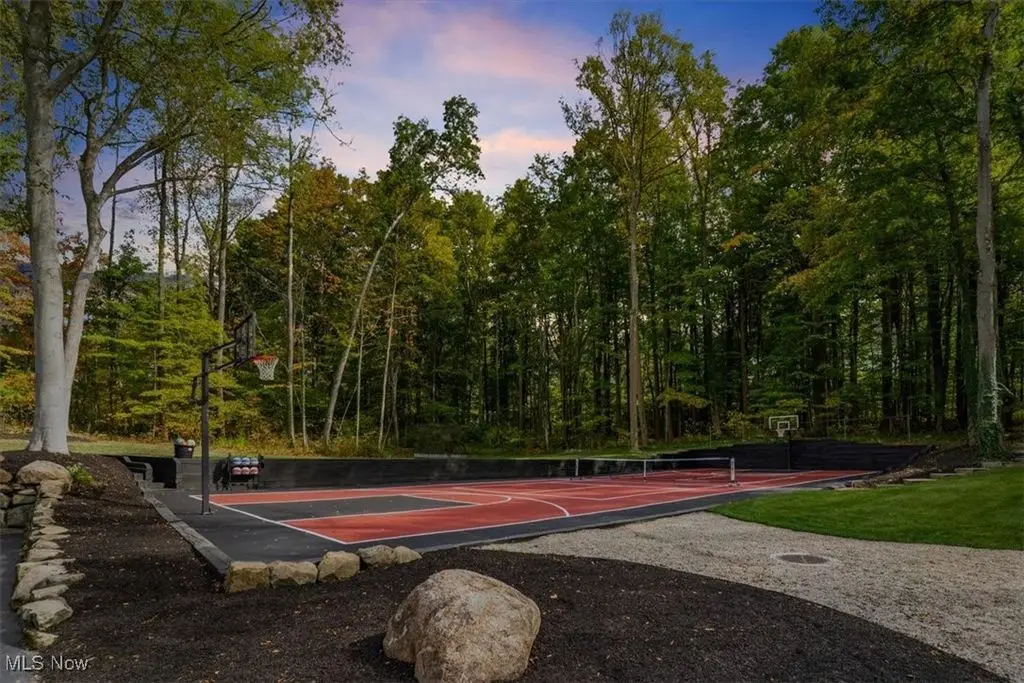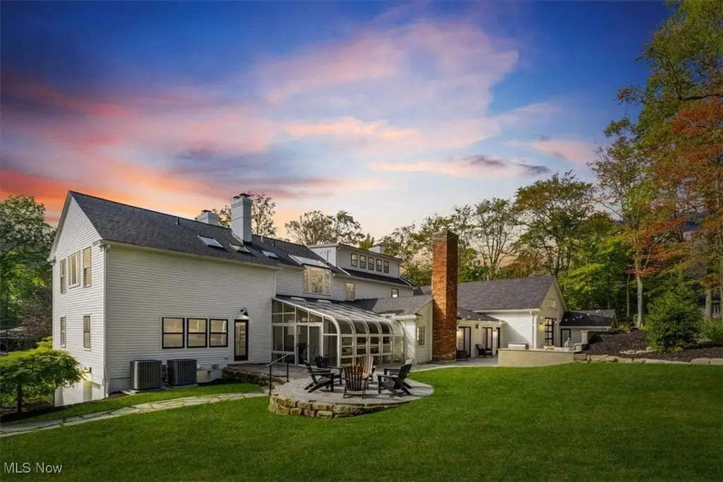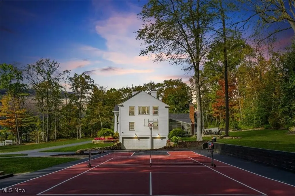 Featured in the 2025 Hudson Home & Garden Show, this timeless Colonial offers 8,000 finished sq. ft. on nearly two acres framed by mature trees, Japanese maples, and original barn-stone walls. A sweeping circular drive and pillared front porch set the tone: classic stature refreshed for modern living. Inside, hardwood floors run throughout the first and second levels. Entertaining flows easily between the formal dining room, large living room with custom Venetian plaster fireplace, paneled oversized den-study, and main-level guest suite with private en-suite. At the heart of the home, a cathedral-trussed kitchen opens to a hearth room, scullery, and sun-lit solarium. Upstairs, three bedrooms join a spectacular owner's suite designed as a private retreat. Herringbone floors and soaring 18-foot cathedral ceilings with original coffered details create a sense of grandeur, while a floor-to-ceiling stone fireplace brings warmth and intimacy. Expansive custom moldings frame the space, and the spa-inspired bath features an oversized wet room with multiple shower heads, soaking tub, dual vanities, and generous walk-in dressing areas. A sitting alcove and walls of windows complete the suite, making it as functional as it is breathtaking. A third-floor lounge provides the perfect hideaway, while five fireplaces throughout the home create atmosphere in every season. The lower level is built for function: an oversized drop zone with custom club-style lockers, an 8-foot shoe closet, second laundry with dog wash, and a full fitness room. The showpiece: a 2,000 sq. ft. indoor heated saltwater pool pavilion with exposed beams and wood-clad ceilings. A 12-foot glass door opens to a private courtyard with hot tub, linear fireplace lounge, grilling station, and bluestone patio with fire pit. Outside, enjoy a sports court with pickleball and full-court basketball, plus garage space for six vehicles. The mature landscape balances privacy with presence, completing a rare Hudson offering.