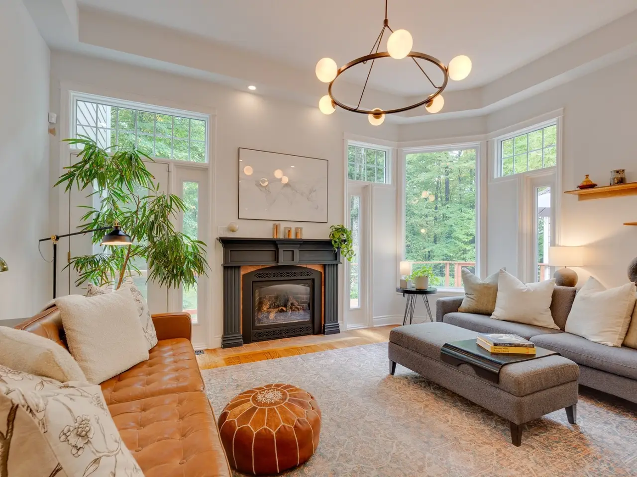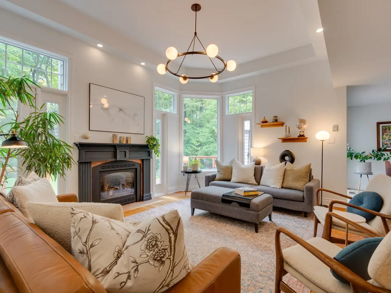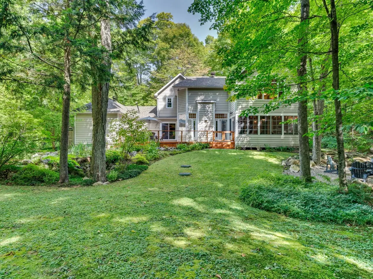 In the heart of Old Chelsea, this timeless craftsman-style home sits on a private two-acre wooded estate, just a 3-minute stroll from cafes, boutiques and galleries--and literally steps from Gatineau Park. Offering 3+1 bedrooms, deep porches and a screened-in veranda with pine ceilings, it blends comfort and character. Inside, a dining room with spectacular fenestration frames the landscape, complemented by open living spaces, oak floors and refined details. Outdoors, a pond with waterfall, firepit and a spa pavilion inspired by Nordic tradition create a retreat-like atmosphere. A rare opportunity in one of Chelsea's most coveted addresses.