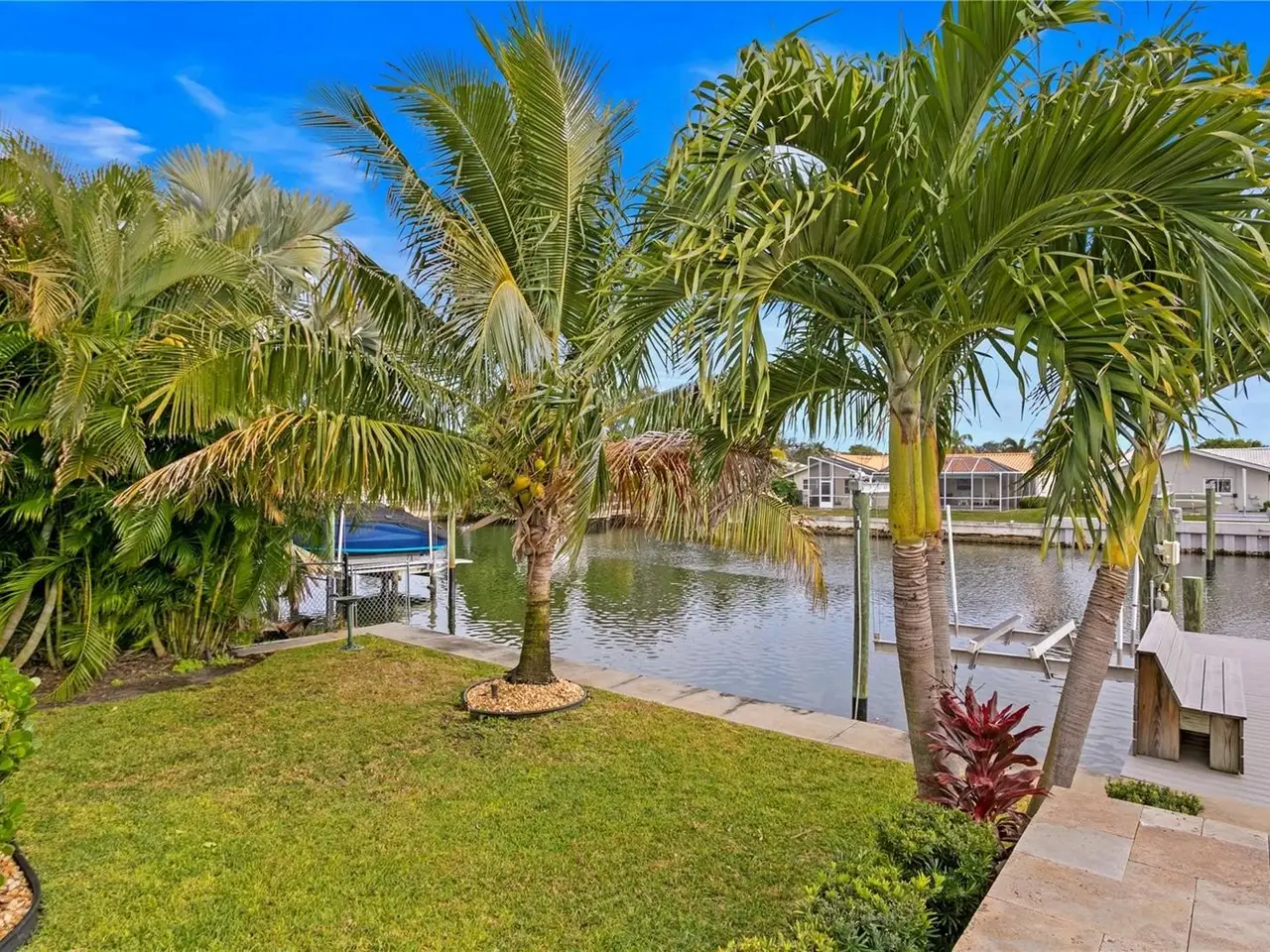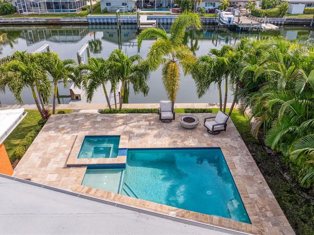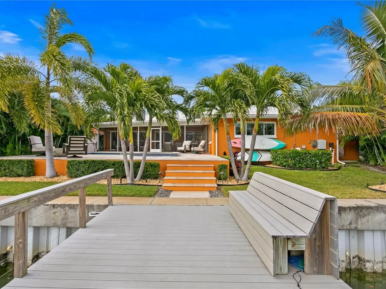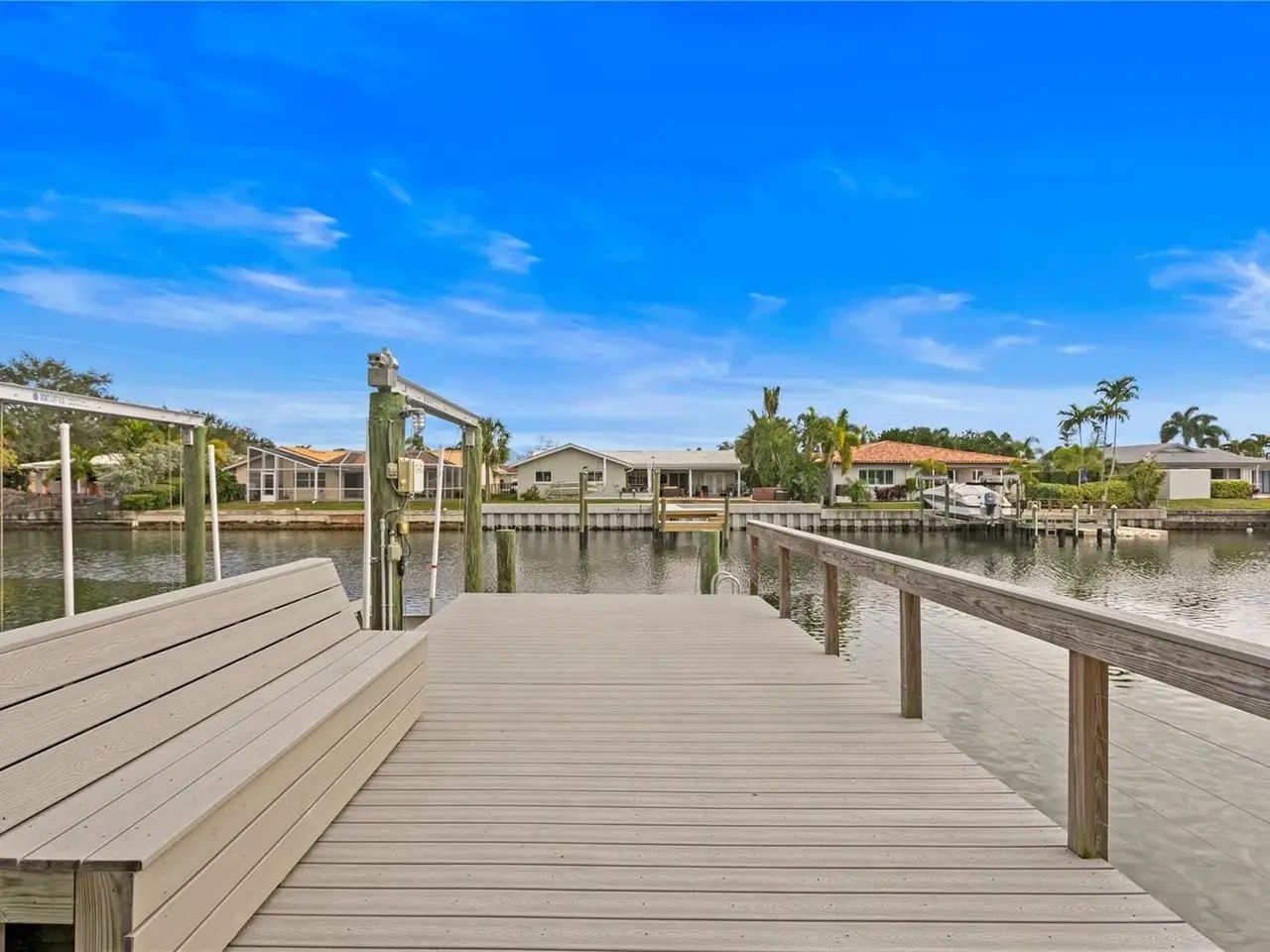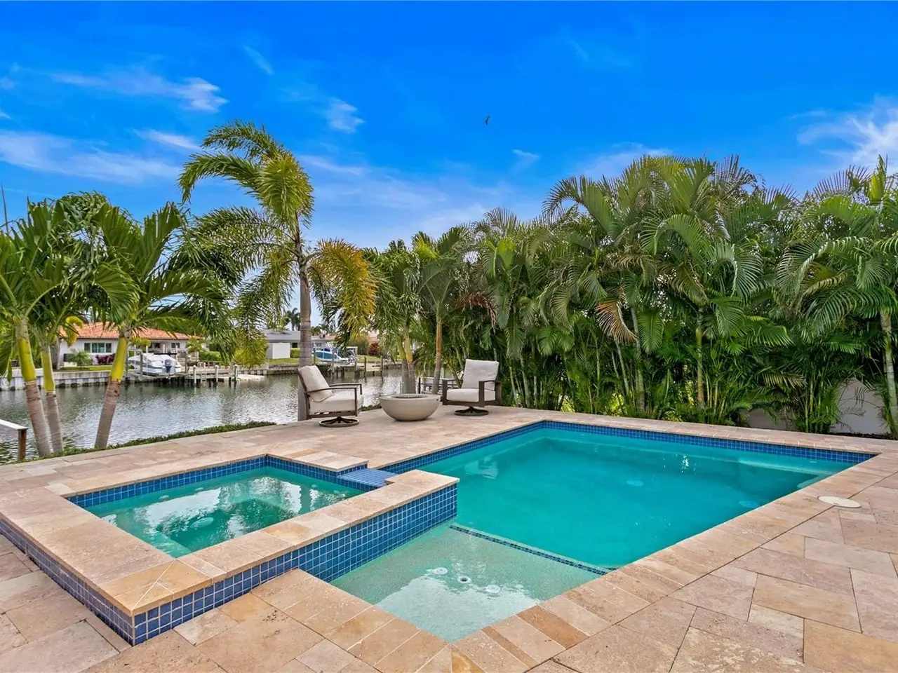 Don’t miss your opportunity to own this stunning home in the highly sought-after waterfront community of Venetian Isles! This beautiful 4-bedroom, 3-bath residence offers the perfect blend of luxury, comfort, and modern coastal living. Step inside to an expansive open-concept layout where the family room, kitchen, and dining area flow seamlessly into a screened lanai and beautifully landscaped backyard—perfect for effortless indoor-outdoor entertaining. The home welcomes you with a spacious foyer or a convenient mudroom entrance from the two-car garage. Throughout the living spaces, wood-look ceramic tile creates a warm, elegant ambiance. At the heart of the home, the chef’s dream kitchen features a large U-shaped eat-in island with marble countertops and backsplash, high-end Café series stainless steel appliances, and stylish custom cabinetry. The interior laundry room is as functional as it is beautiful, complete with Whirlpool Cabrio washer and dryer, built-in cabinetry, utility sink, and marble tile accents. Thoughtfully designed for privacy, the home offers a split bedroom layout. The first guest bedroom enjoys a beautifully appointed full bath, while two additional bedrooms in a separate wing share a spa-like bathroom with Danze fixtures and designer finishes. The private master suite is a true retreat, showcasing a luxurious marble bathroom and a generous walk-in closet. Enjoy true Florida living with hurricane-rated sliding glass doors that fully pocket back, connecting your main living spaces to the screened lanai and creating a seamless indoor-outdoor experience. Whether you're relaxing by the heated saltwater pool and spa, or enjoying tranquil canal views from the cozy firepit corner, this backyard oasis has it all. Boaters will appreciate the composite dock with electric, water, a 10,000 lb. boat lift, and updated seawall (2017). The lush landscaping provides ample privacy and is enhanced by elegant outdoor lighting for evening ambiance. Best of all, this home has experienced no water damage from any hurricanes—a testament to its strong construction and elevated location. Homes like this in Venetian Isles don’t come around often—schedule your private showing today!