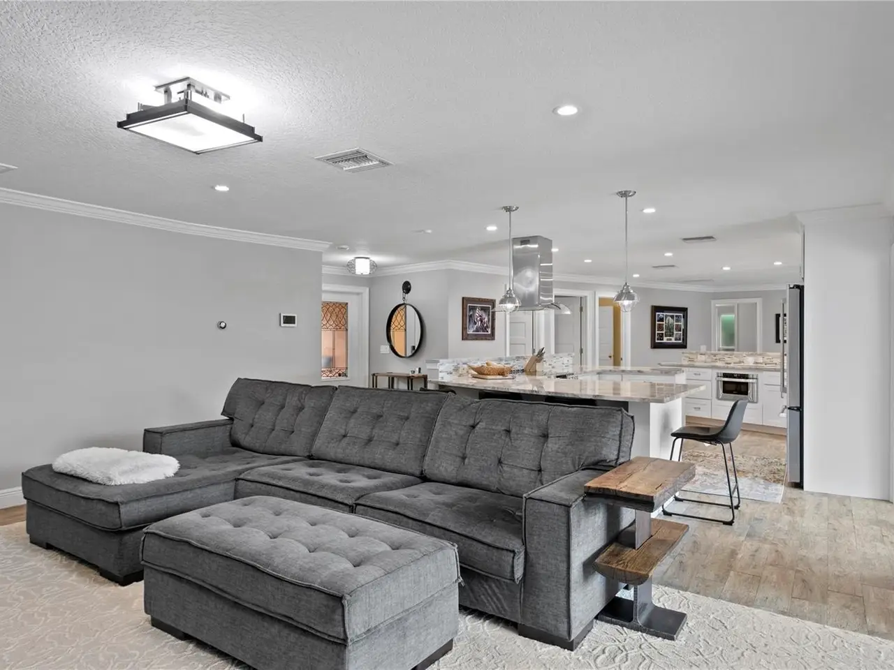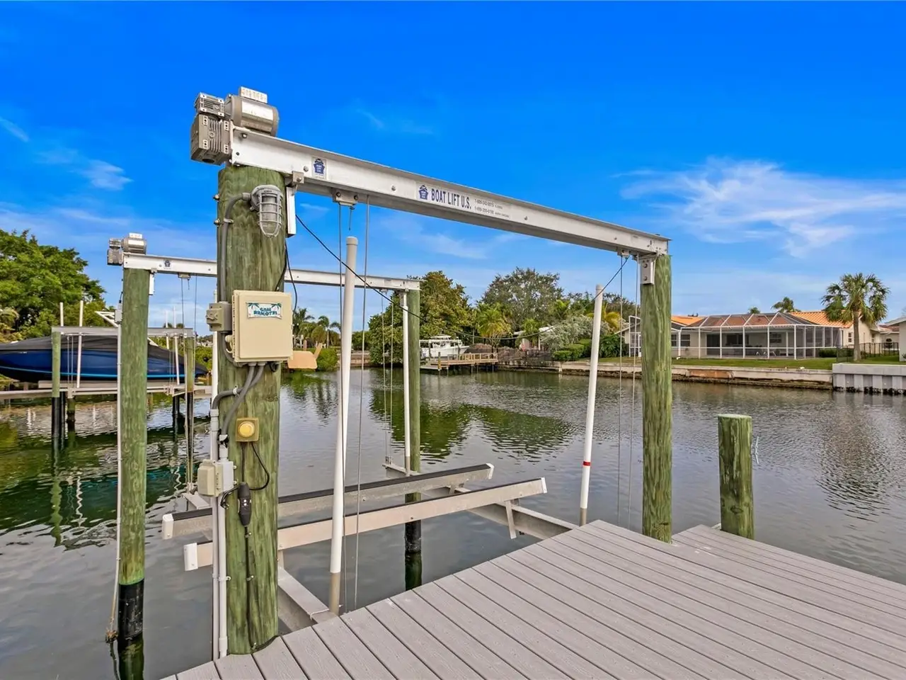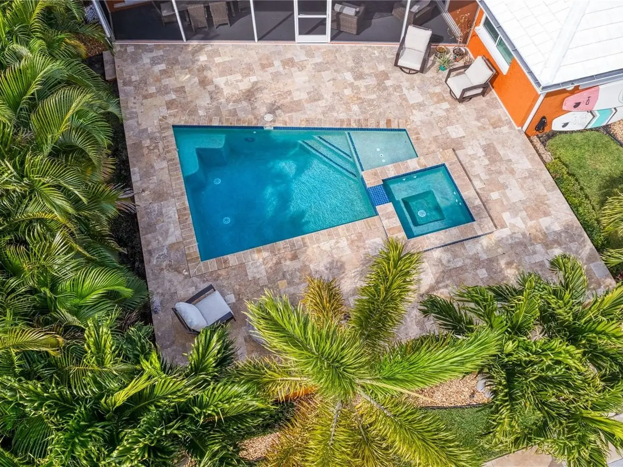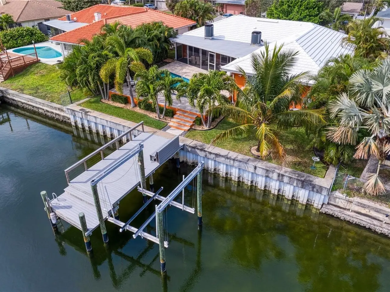 Don’t miss your opportunity to own this stunning home in the highly sought-after waterfront community of Venetian Isles! This beautiful 4-bedroom, 3-bath residence offers the perfect blend of luxury, comfort, and modern coastal living. Step inside to an expansive open-concept layout where the family room, kitchen, and dining area flow seamlessly into a screened lanai and beautifully landscaped backyard—perfect for effortless indoor-outdoor entertaining. The home welcomes you with a spacious foyer or a convenient mudroom entrance from the two-car garage. Throughout the living spaces, wood-look ceramic tile creates a warm, elegant ambiance. At the heart of the home, the chef’s dream kitchen features a large U-shaped eat-in island with marble countertops and backsplash, high-end Café series stainless steel appliances, and stylish custom cabinetry. The interior laundry room is as functional as it is beautiful, complete with Whirlpool Cabrio washer and dryer, built-in cabinetry, utility sink, and marble tile accents. Thoughtfully designed for privacy, the home offers a split bedroom layout. The first guest bedroom enjoys a beautifully appointed full bath, while two additional bedrooms in a separate wing share a spa-like bathroom with Danze fixtures and designer finishes. The private master suite is a true retreat, showcasing a luxurious marble bathroom and a generous walk-in closet. Enjoy true Florida living with hurricane-rated sliding glass doors that fully pocket back, connecting your main living spaces to the screened lanai and creating a seamless indoor-outdoor experience. Whether you're relaxing by the heated saltwater pool and spa, or enjoying tranquil canal views from the cozy firepit corner, this backyard oasis has it all. Boaters will appreciate the composite dock with electric, water, a 10,000 lb. boat lift, and updated seawall (2017). The lush landscaping provides ample privacy and is enhanced by elegant outdoor lighting for evening ambiance. Best of all, this home has experienced no water damage from any hurricanes—a testament to its strong construction and elevated location. Homes like this in Venetian Isles don’t come around often—schedule your private showing today!