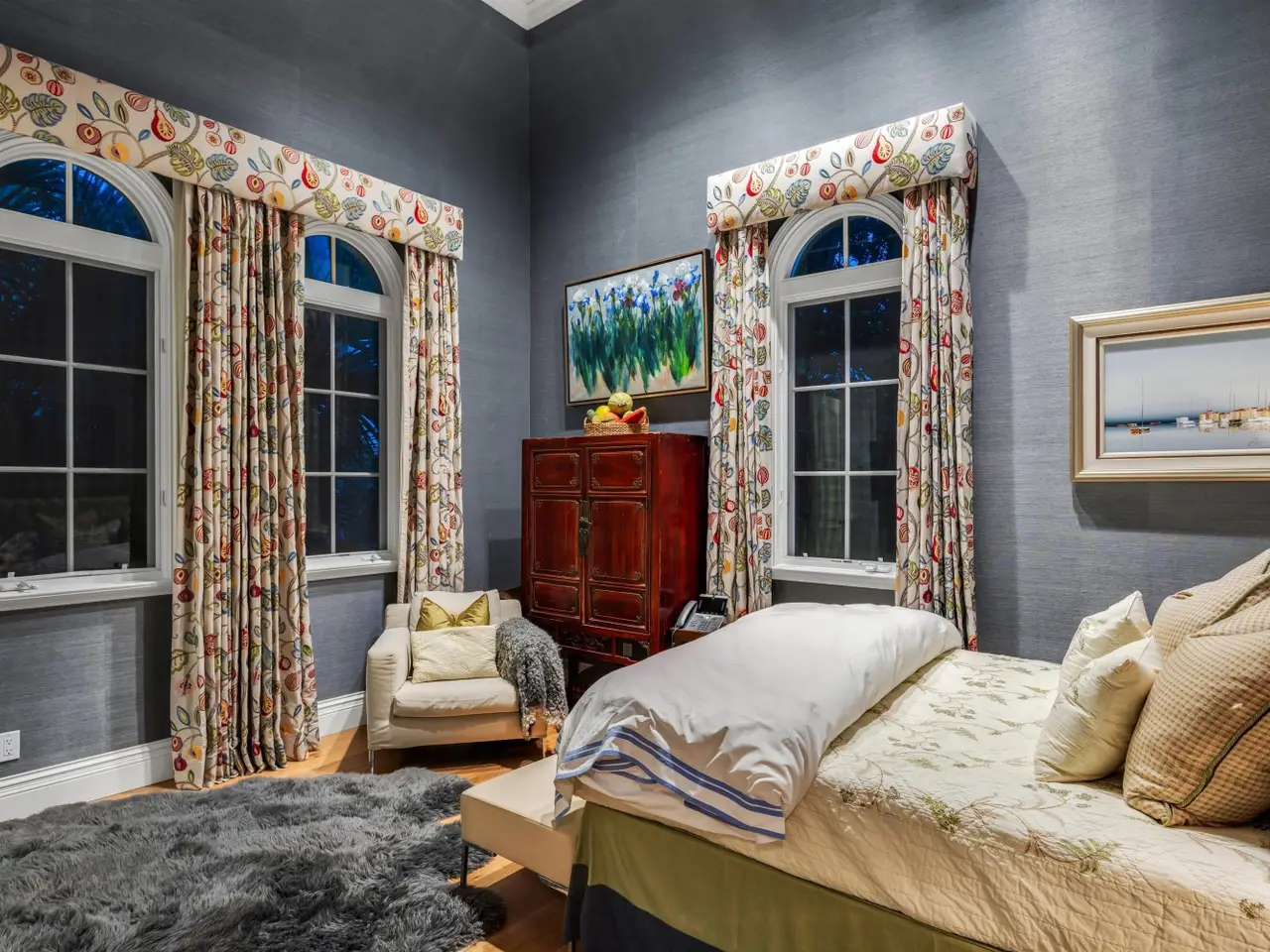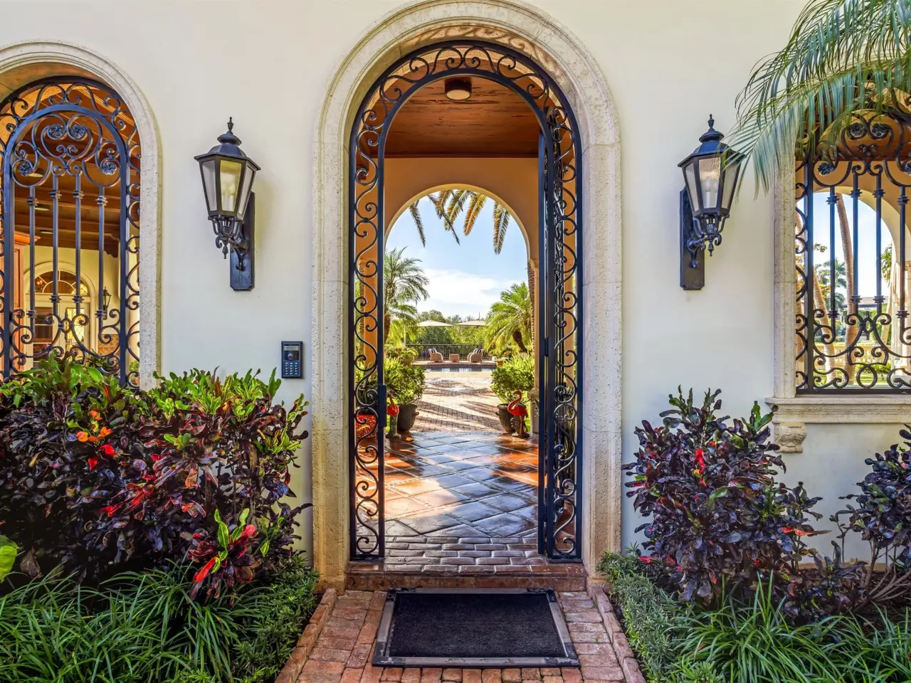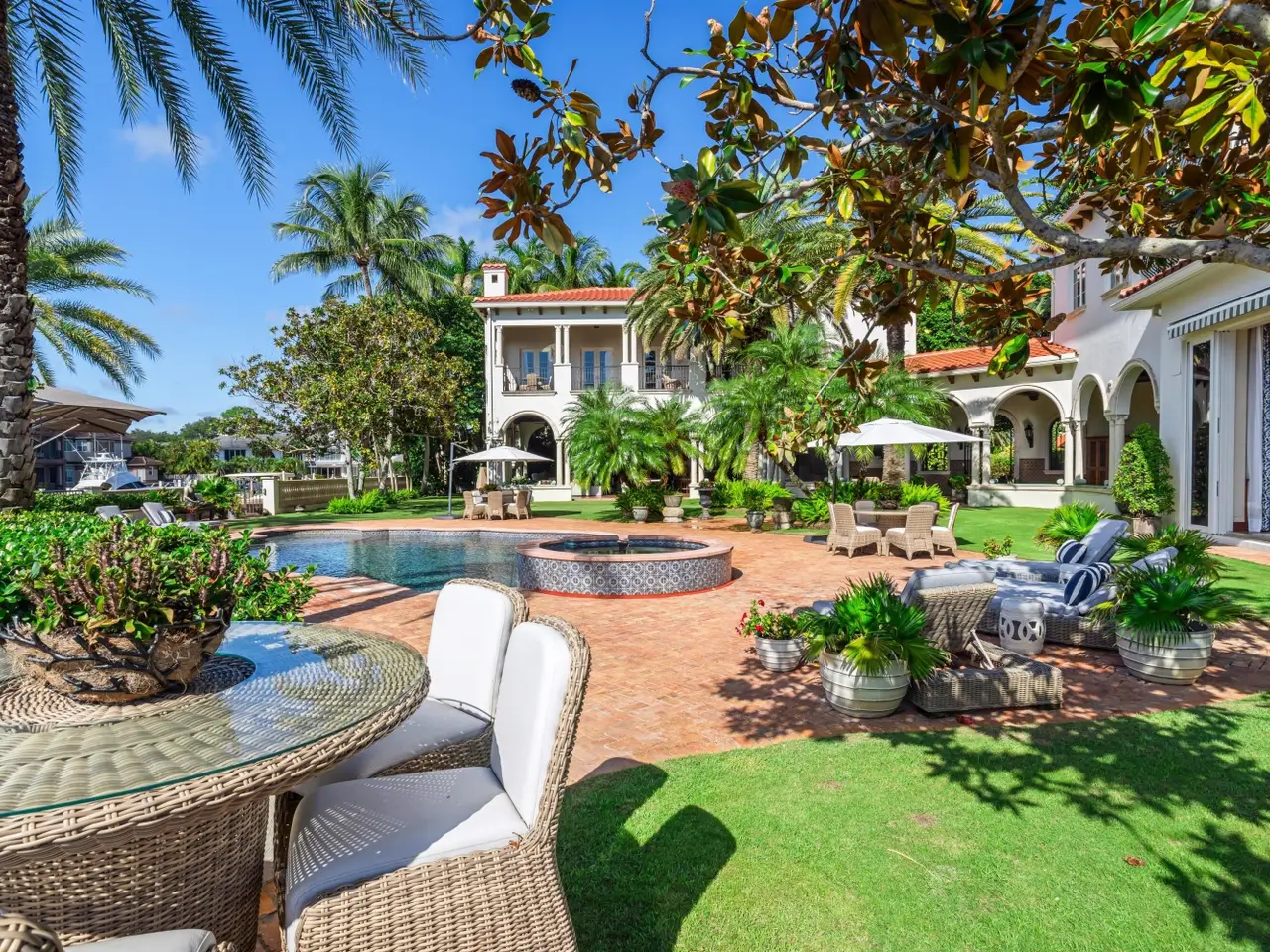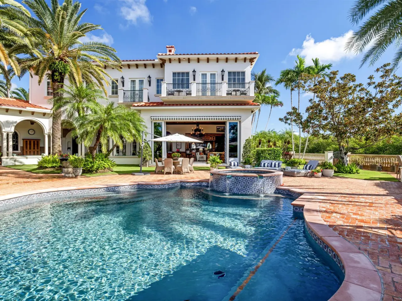 Palatial Palm Beach-inspired Sanctuary masterpiece originally built by Dan Swanson of Addison Development, with stately main house and separate guest/carriage house on 2 trophy southeast point lots surrounded by 350 +/- feet of secluded shoreline for multi-yacht dockage. Enter glamorous interiors featuring bespoke updates from a grand-scale foyer, formal living and dining rooms, newly updated Gourmet Island kitchen, adjacent English Club Room with pub and indulgent Primary quarters with dual spa-like baths and waterfront views.