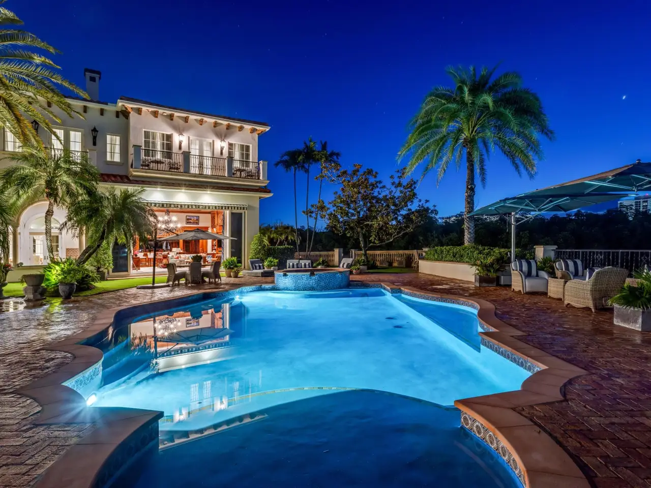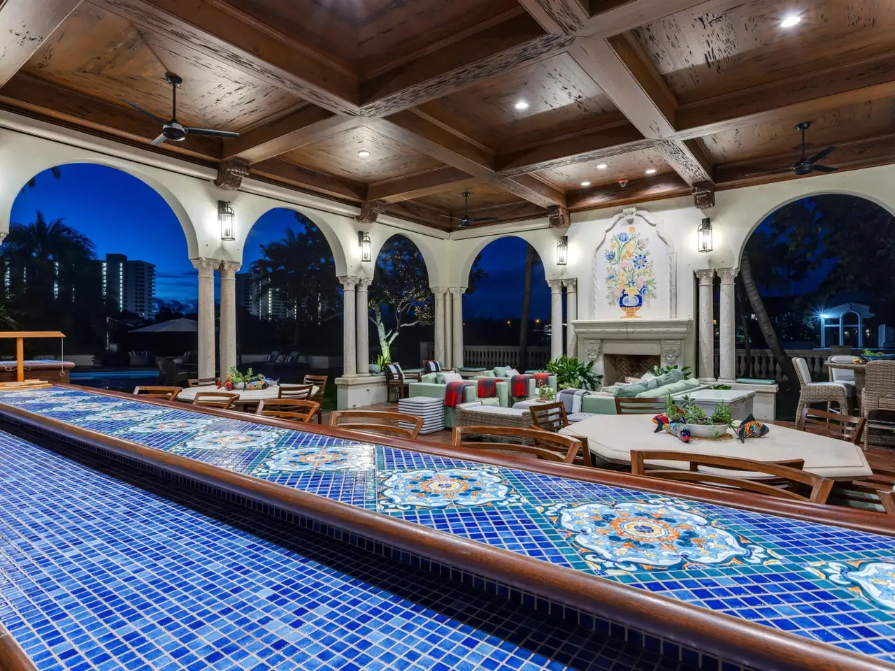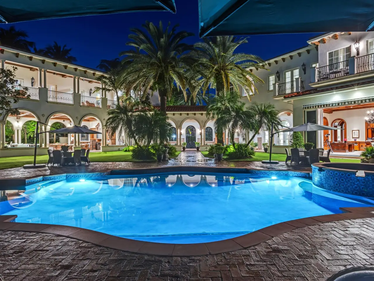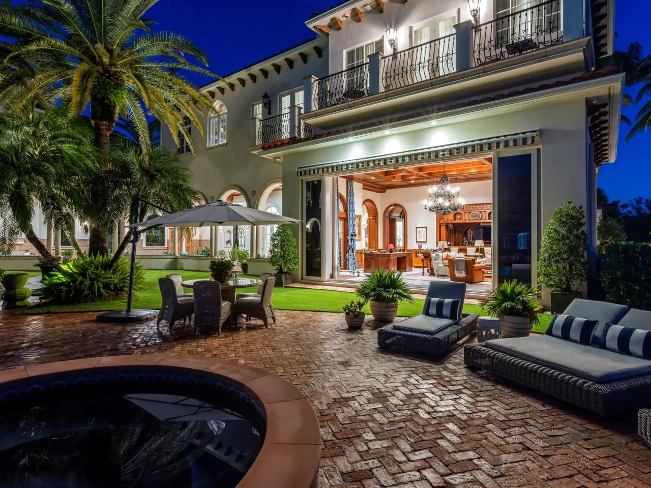 Palatial Palm Beach-inspired Sanctuary masterpiece originally built by Dan Swanson of Addison Development, with stately main house and separate guest/carriage house on 2 trophy southeast point lots surrounded by 350 +/- feet of secluded shoreline for multi-yacht dockage. Enter glamorous interiors featuring bespoke updates from a grand-scale foyer, formal living and dining rooms, newly updated Gourmet Island kitchen, adjacent English Club Room with pub and indulgent Primary quarters with dual spa-like baths and waterfront views.