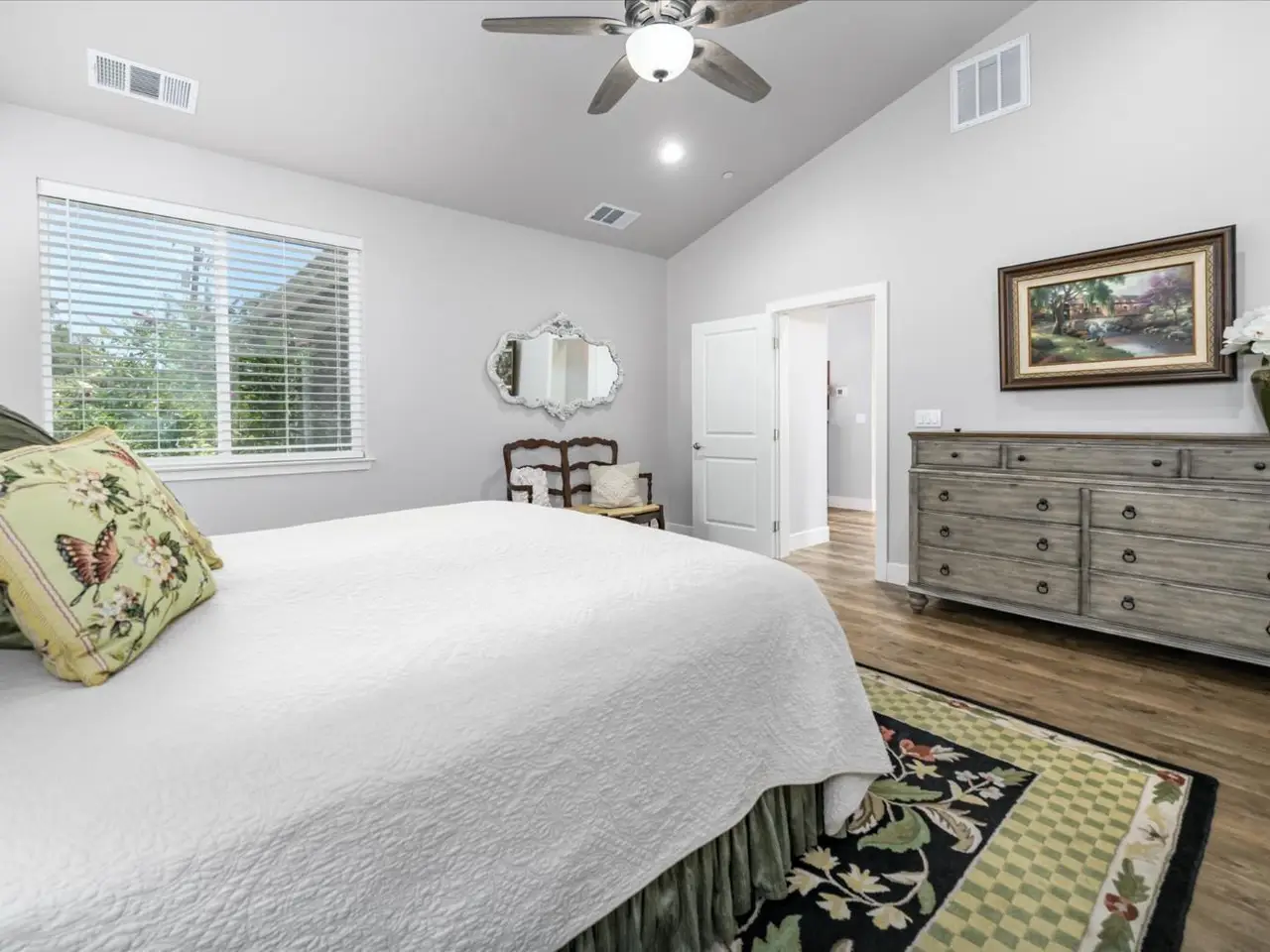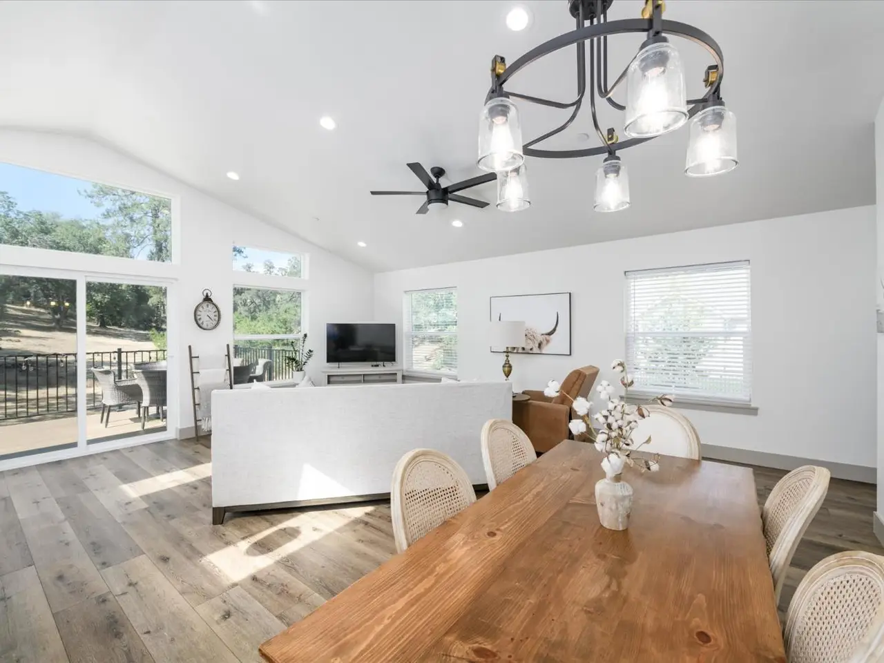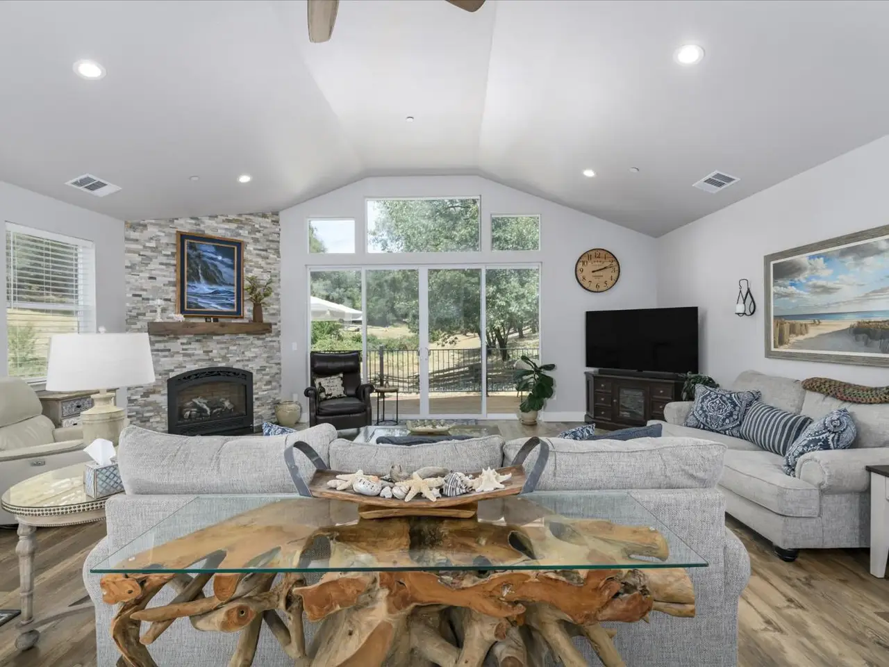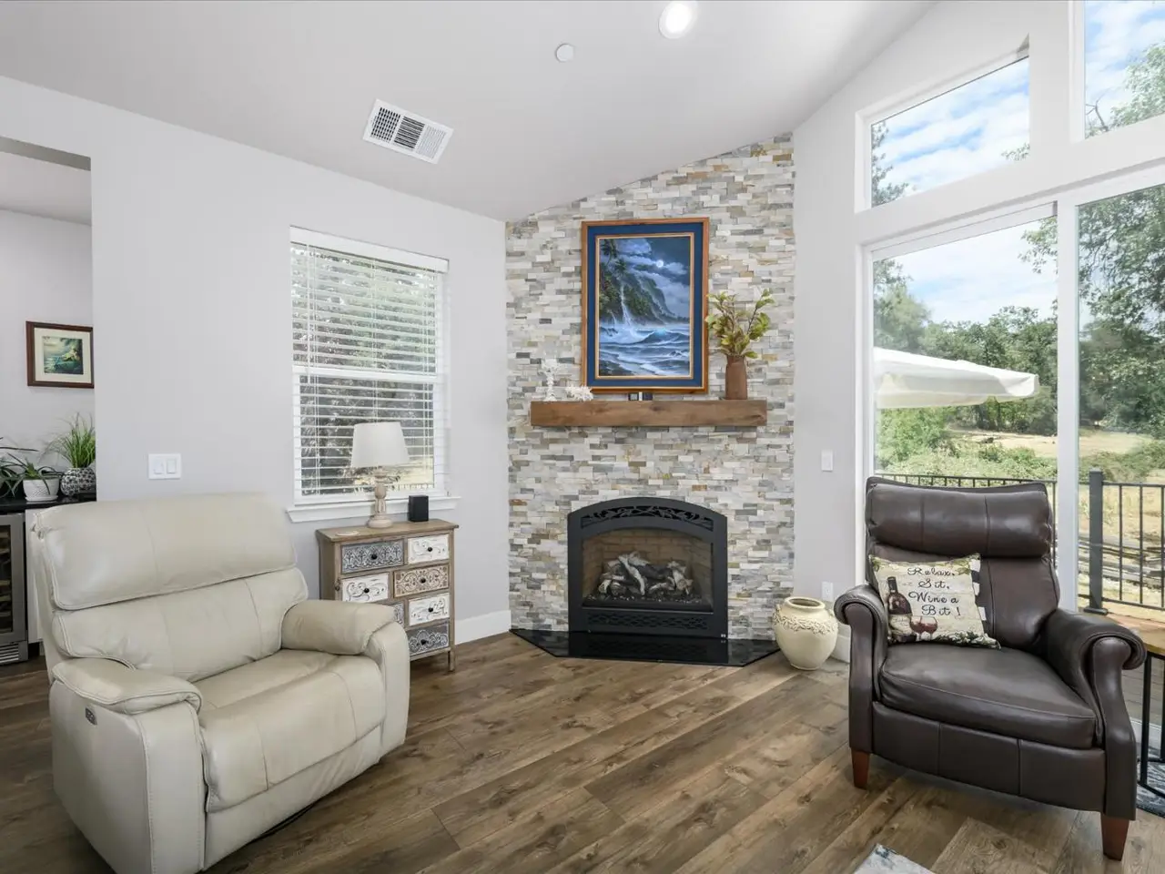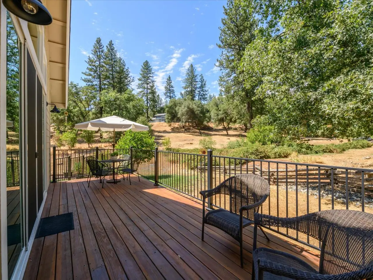 Luxury meets livability in this stunning 2022 custom built single-story home in Placerville's desirable Sleepy Hollow Ct. Set on nearly an acre, this elegant estate offers 3 beds, 2 baths, cathedral ceilings, and oversized windows that frame views of a seasonal stream. The chef's kitchen impresses with quartz counters, custom white cabinetry with stunning blue accents, stainless appliances, wine refrigerator and a large pantry. The private primary suite features a spa-like bath with soaking tub and oversized shower. Energy-efficient with approx. 5kW owned solar and a Generac generator! There's RV parking with 50 amp power & sewer hookup as well. The finished garage includes 9'x9' doors for taller vehicles. Enjoy outdoor living on the covered patio or expansive deck. The detached ADU offers exceptional quality with 2 beds, 1.5 baths, designer finishes, 3.8kW owned solar, mini-splits, an oversized 2-car garage, carport, and RV setup. With a total of approximately 3333 SF living space, that is only $315 a square foot! Minutes to town, yet feels like your own private retreat.