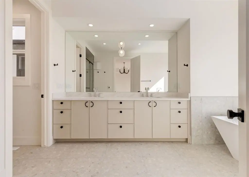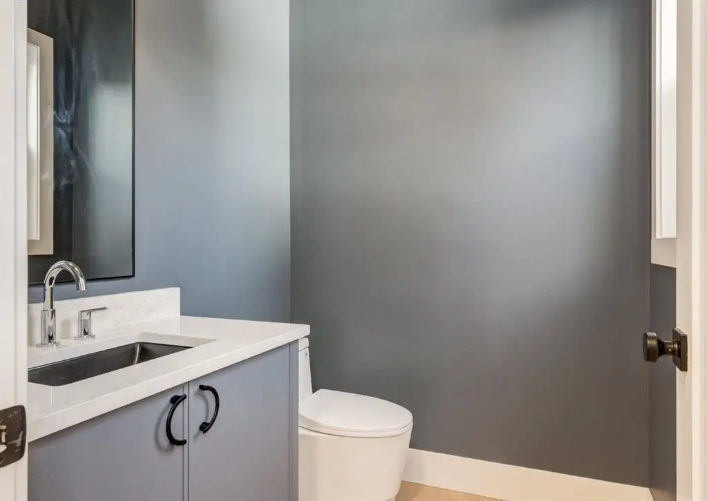 Spectacular custom built home situated on a WIDE 30+ foot lot in the heart of Winston Heights with over 3750 SF of living space. This stunning new build combines thoughtful design, high-end finishes, and a sun-filled south-facing backyard. The open-concept main floor showcases engineered hardwood, a chef-inspired kitchen with curved island and hood fan, striking quartz countertops, designer tile backsplash, 30” commercial gas range plus an additional wall oven with built-in microwave, 65” of refrigeration, a walk-in pantry, and custom locally made cabinetry with undercabinet and toe-kick lighting. The full-width family room is anchored by an inviting gas fireplace, and large windows frame views of the backyard. Upstairs you’ll find three bedrooms—each with a walk-in closet—plus a bright bonus room, convenient laundry with sink, and hardwood throughout. The primary suite is designed for relaxation, featuring a spa-inspired ensuite with heated floors, freestanding tub, oversized shower with bench, large format tiles, and dual vanities. The fully finished basement offers a spacious rec room with wet bar, guest bedroom with walk-in closet, dedicated gym, guest bath, and is roughed-in for hydronic floor heating. The oversized ATTACHED double garage impresses with 14’1” ceilings, insulation (ceiling is spray foamed), drywall, gas heater, and aggregate concrete driveway. Enjoy Calgary’s sunny days in the landscaped backyard featuring lush grass, and a full-width Dura Deck with glass railings. Move-in ready and backed by new home warranty, this home blends luxury, functionality, and peace of mind — walk to The Winston Golf Club, Lina’s Italian Market, Co-op, local school, and so much more. Floor plans and a 3D tour are readily available, providing a glimpse into this stylish home!
