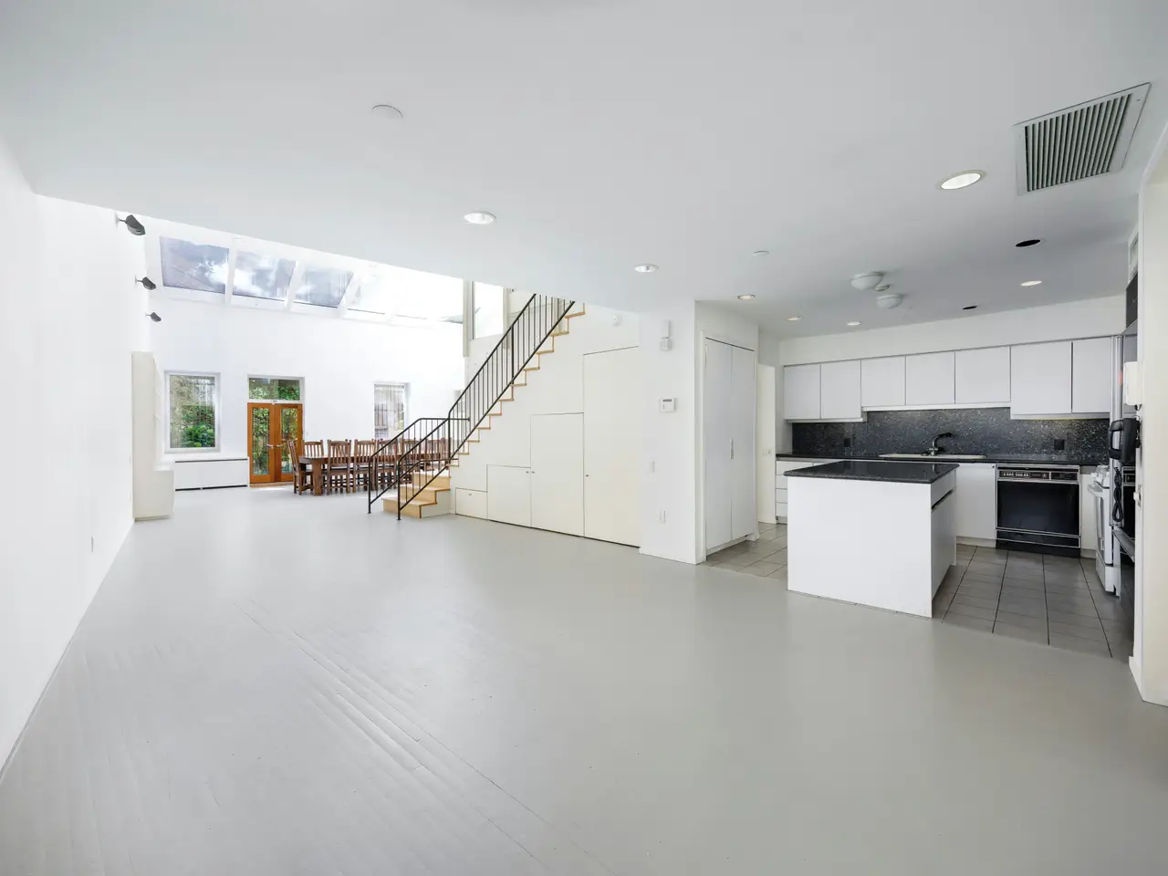 With 29 feet of frontage, including a curb cut, this fabulous 9,000 square foot home features double height ceilings, six outdoor spaces, a private covered parking spot, and an elevator that services the basement to roof deck. Step in off of charming Downing Street to an "open air" garage, that could be used as a garage, a front garden or party space too, with storage. Beyond the garage is the ground floor duplex that could be a perfect guest apartment, art studio, or company headquarters OR it can be combined with the rest of the house into one magnificent single family home. (If part of a single family home the ground floor would make an amazing kitchen/great room open to the back garden.) Features of this lower duplex include three bedrooms and three bathrooms and ceiling heights of over 16 feet in the main space with light streaming in from skylights. This dramatic great room has plenty of space for both a living and dining area, as well as direct access to the tranquil garden. Also on this floor is the large chef's kitchen, as well as a bonus room that has an en-suite bathroom and washer/dryer. The mezzanine level features three oversized bedrooms and two bathrooms. Currently, the main part of the townhouse begins on the second floor, which provides almost unlimited entertainment space with an 80 foot long great room with two terraces and a powder room. The adjacent, open kitchen boasts a 4 burner Garland stove with griddle, 48" Miele refrigerator/freezer, two sinks, two dishwashers, and a Gaggenau hot plate. Up a stunning, curved architectural staircase is the 3rd floor, which currently has two bedrooms, two bathrooms and a large office/den area with three built-in desks and tons of storage that is open to the great room below. Both bedrooms have en-suite bathrooms, built-in desks and the larger bedroom has access to a private terrace. The fourth floor is dedicated to the primary suite and boasts a wrap-around terrace with tall mature plantings and a wooden fence for privacy . The primary bedroom features custom built-ins and opens up to a nearly 30 foot long outdoor space with a pergola and plenty of seating space. The custom primary bath has a double vanity, deep soaking tub, separate shower, and water closet with a bidet. There is also a cedar walk-in closet and a sitting room/lounge with a fireplace, wet bar and additional storage that also has access to the terrace. The gorgeous roof deck, accessible from the elevator , boasts fantastic open skyline views, including the Empire State Building and Hudson Yards. The deck includes multiple seating areas, a pergola, and mature landscaping including birch trees. This unique home also includes a basement with additional storage and laundry. The house is currently configured as two condominium units, and is delivered vacant.