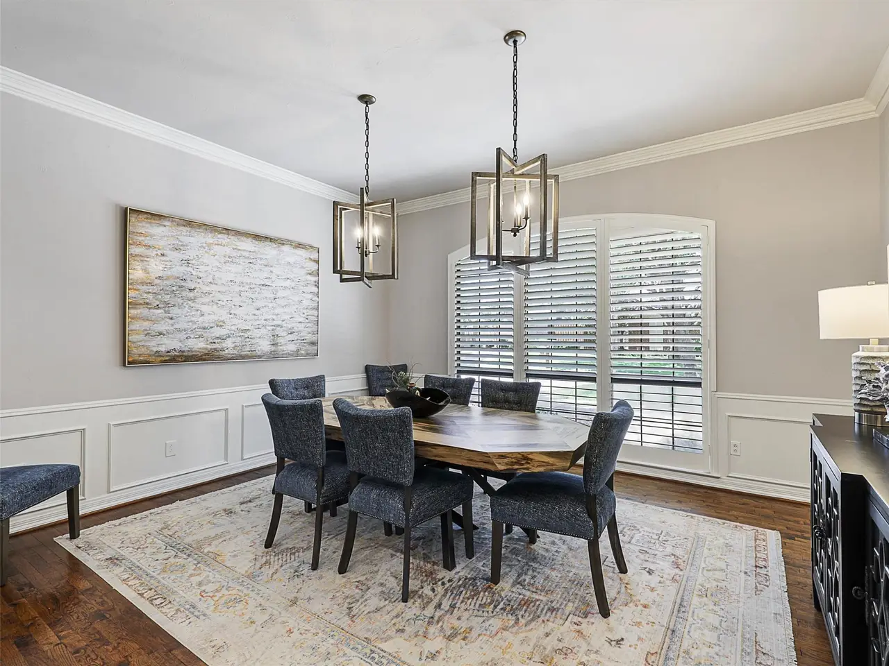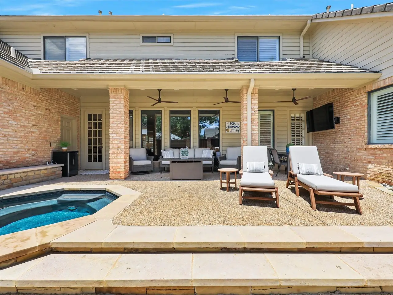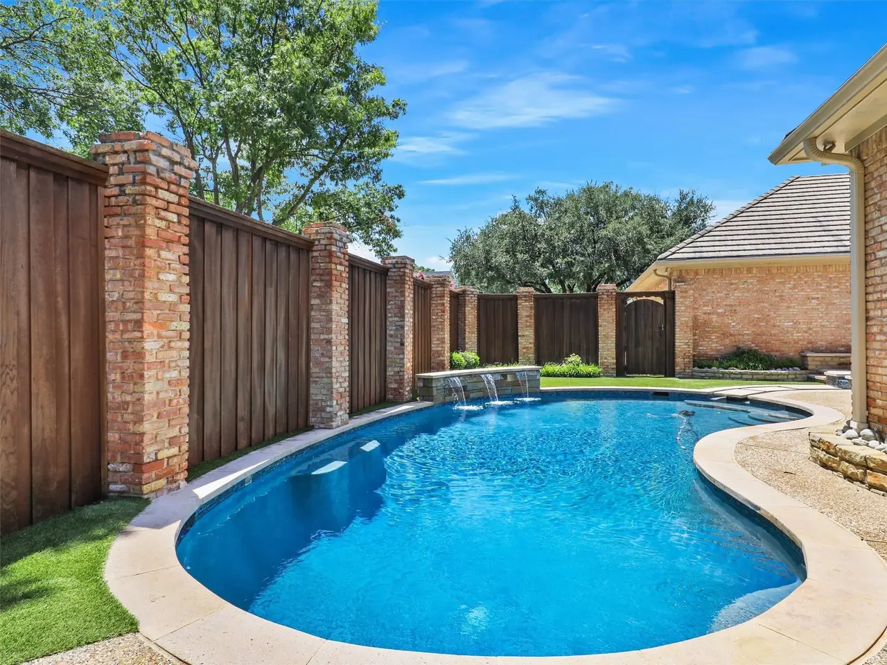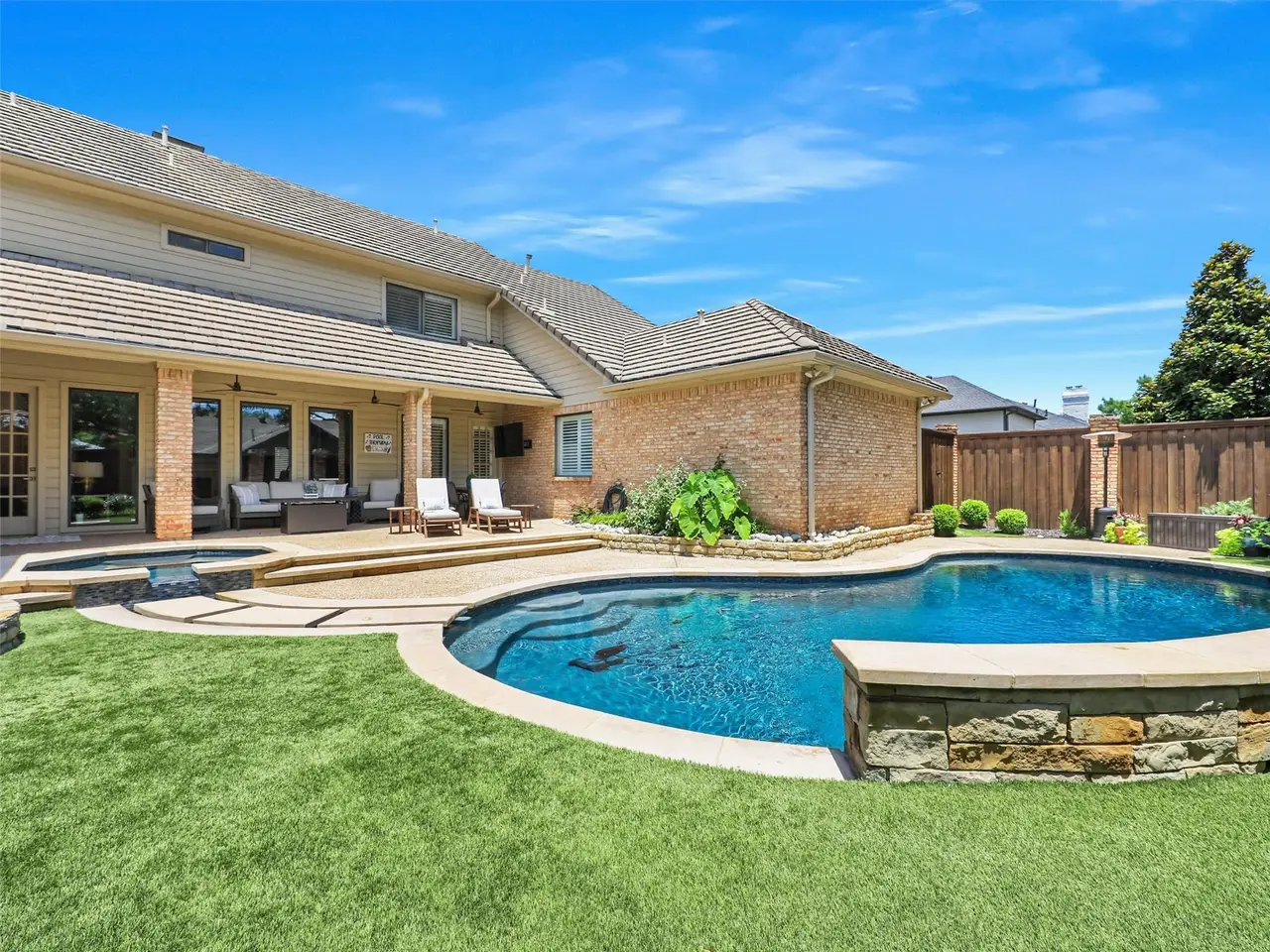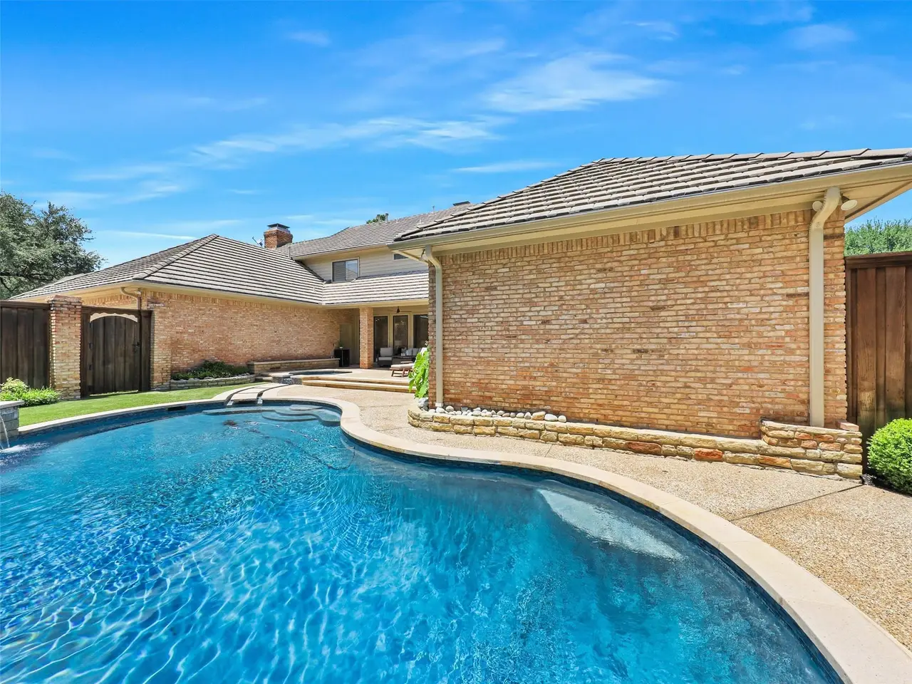 Step into timeless elegance in the heart of Bent Tree North 2. Nestled on a beautifully landscaped lot, this exquisite custom home seamlessly blends modern updates with classic charm. Rich hardwood floors and a soft, inviting color palette carry you through the first floor, where the formal dining room delights with updated lighting and sunlit plantation-shuttered windows perfect for intimate dinners or lively gatherings. The formal living room is the epitome of grace, anchored by a stately brick fireplace and framed by expansive windows. Entertain in style with a built-in wet bar, complete with wine fridge and ice maker.The family room offers rustic charm with a stone fireplace and wood-beamed ceiling, creating the perfect setting for cozy evenings. The gourmet kitchen is designed for culinary inspiration, features bespoke cabinetry, leathered quartzite countertops, a Bertazzoni gas range, Subzero refrigerator-freezer, stainless steel dw, and a walk-in pantry. Adjoining breakfast area boasts a well-appointed butlers pantry with a stylish coffee bar nook. Generous downstairs study offers built-ins for books, and can easily double as a welcoming guest suite with a full, updated bathroom just steps away.Oversized primary suite is a tranquil retreat, with a peaceful sitting area bathed in natural light and a private bonus room ideal for a home gym or quiet sanctuary. Luxurious en suite bathroom is a spa-like haven with dual vanities, sleek Carrera marble, a frameless glass shower, a deep soaking tub, and two separate water closets and custom walk-in closets. Upstairs, discover three spacious bedrooms, each thoughtfully designed with plush carpeting, soft tones, and plantation shutters. Two fully updated bathrooms with designer finishes ensure comfort and style for family or guests. Outside, your private backyard oasis awaits. A sparkling pool and bubbling spa are nestled in lush, tranquil landscapingan idyllic escape for morning coffee or sunset cocktails.