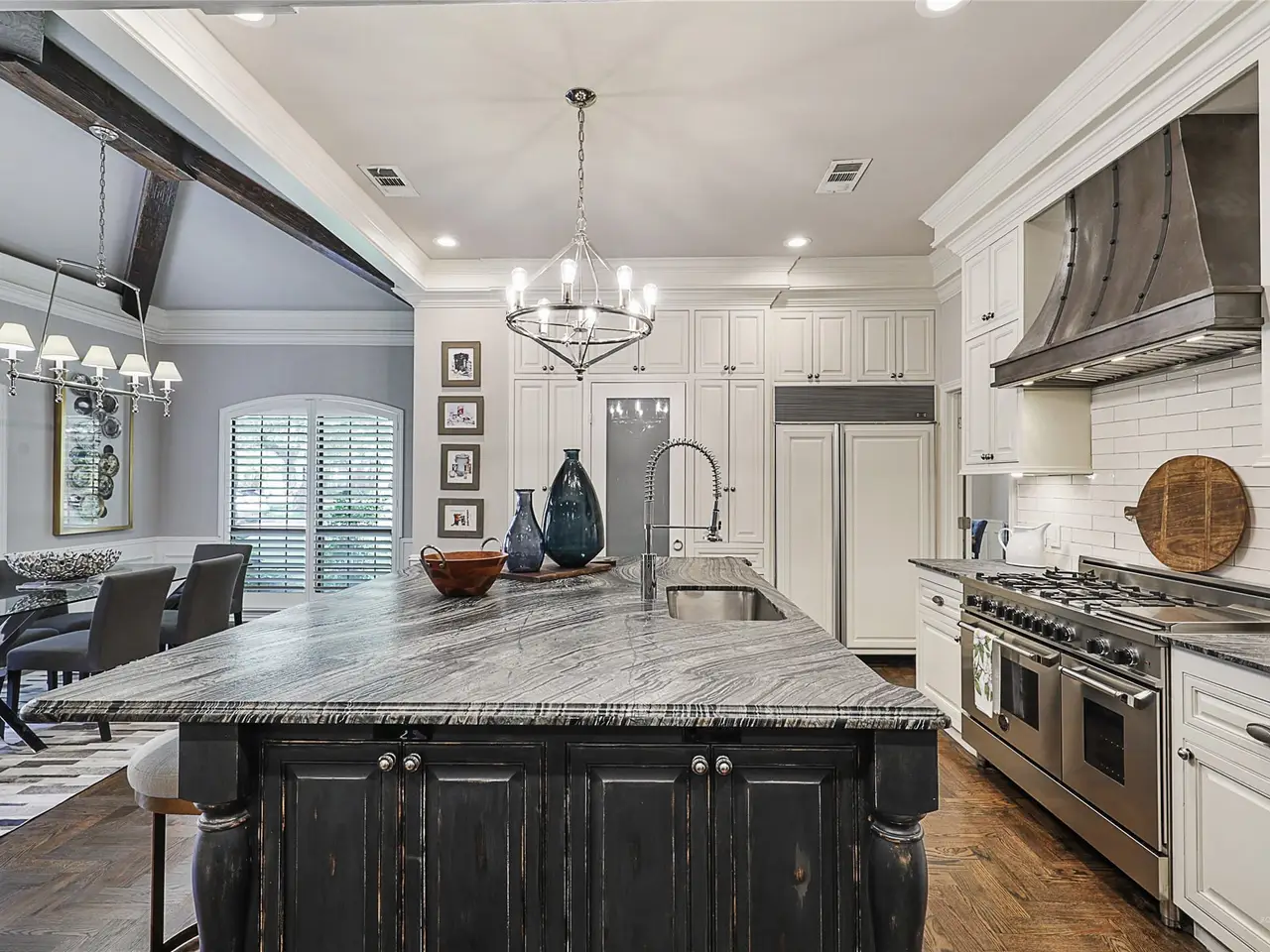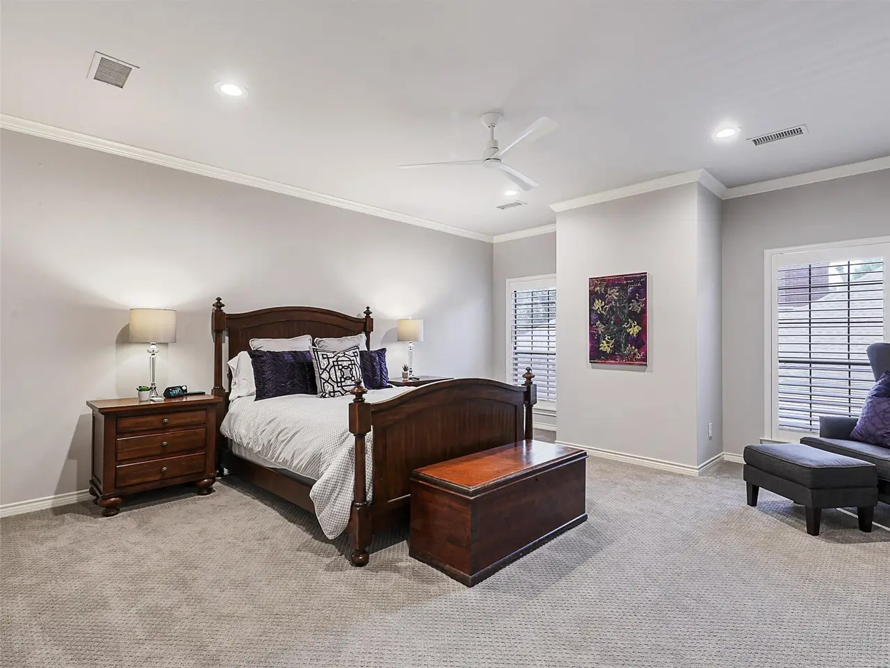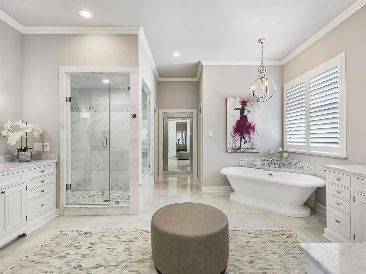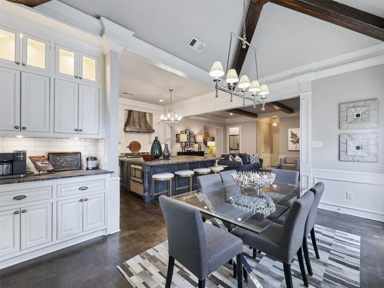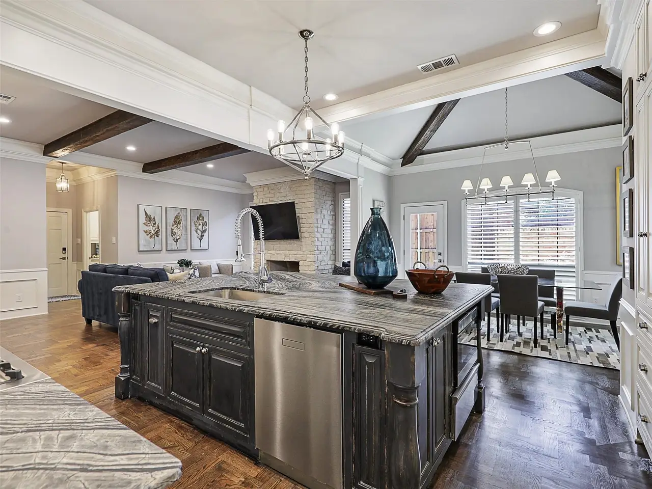 Step into timeless elegance in the heart of Bent Tree North 2. Nestled on a beautifully landscaped lot, this exquisite custom home seamlessly blends modern updates with classic charm. Rich hardwood floors and a soft, inviting color palette carry you through the first floor, where the formal dining room delights with updated lighting and sunlit plantation-shuttered windows perfect for intimate dinners or lively gatherings. The formal living room is the epitome of grace, anchored by a stately brick fireplace and framed by expansive windows. Entertain in style with a built-in wet bar, complete with wine fridge and ice maker.The family room offers rustic charm with a stone fireplace and wood-beamed ceiling, creating the perfect setting for cozy evenings. The gourmet kitchen is designed for culinary inspiration, features bespoke cabinetry, leathered quartzite countertops, a Bertazzoni gas range, Subzero refrigerator-freezer, stainless steel dw, and a walk-in pantry. Adjoining breakfast area boasts a well-appointed butlers pantry with a stylish coffee bar nook. Generous downstairs study offers built-ins for books, and can easily double as a welcoming guest suite with a full, updated bathroom just steps away.Oversized primary suite is a tranquil retreat, with a peaceful sitting area bathed in natural light and a private bonus room ideal for a home gym or quiet sanctuary. Luxurious en suite bathroom is a spa-like haven with dual vanities, sleek Carrera marble, a frameless glass shower, a deep soaking tub, and two separate water closets and custom walk-in closets. Upstairs, discover three spacious bedrooms, each thoughtfully designed with plush carpeting, soft tones, and plantation shutters. Two fully updated bathrooms with designer finishes ensure comfort and style for family or guests. Outside, your private backyard oasis awaits. A sparkling pool and bubbling spa are nestled in lush, tranquil landscapingan idyllic escape for morning coffee or sunset cocktails.