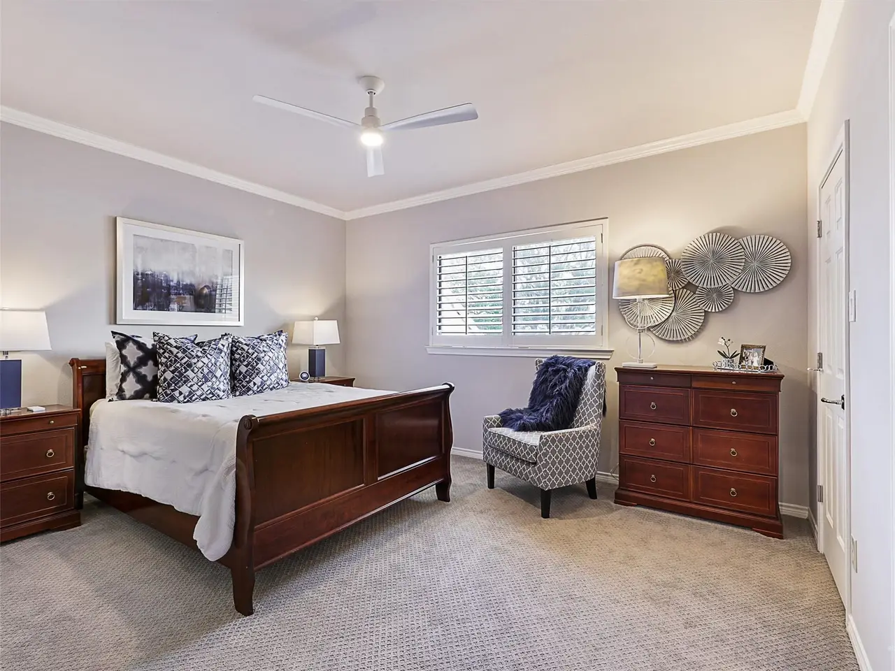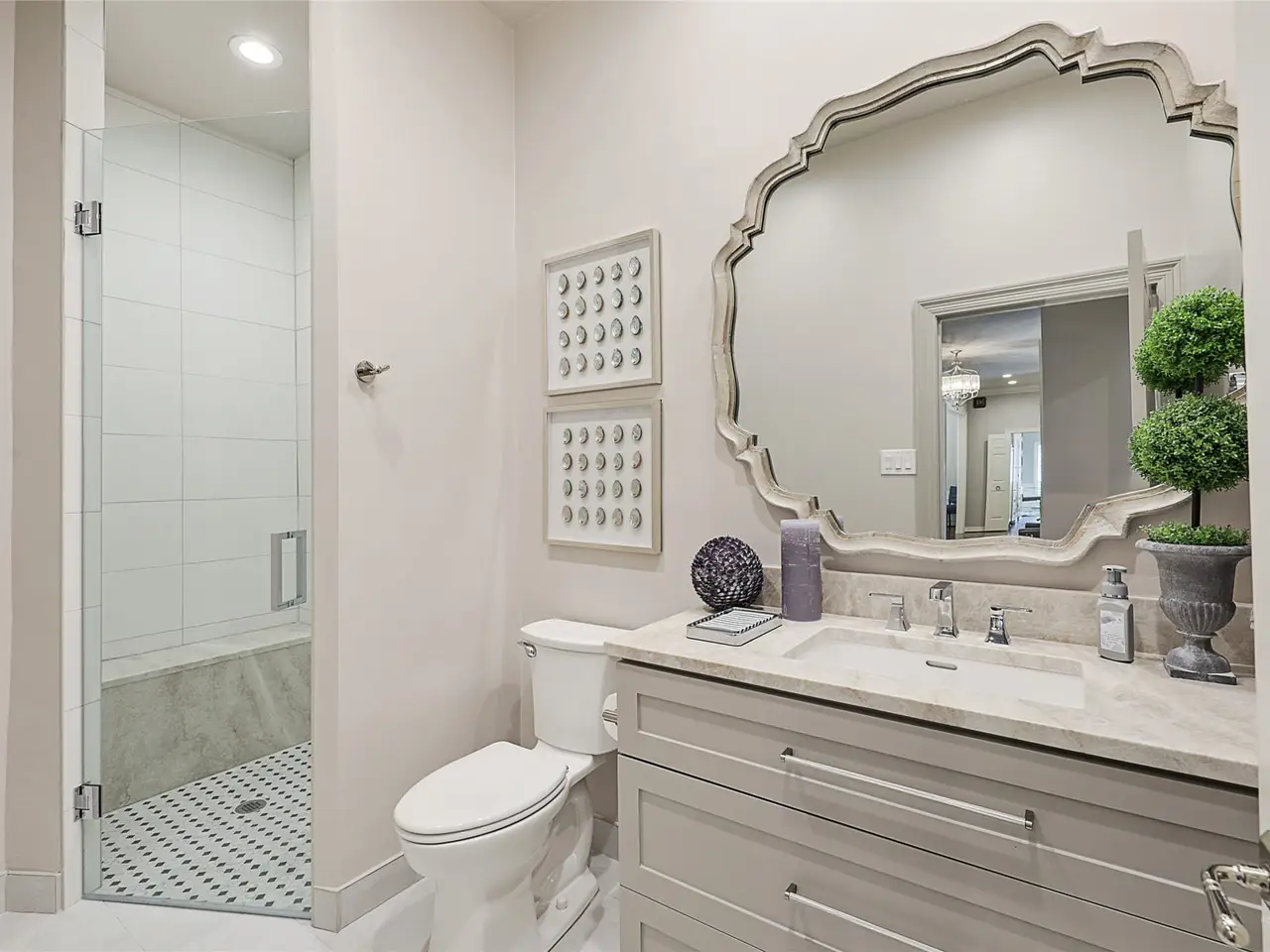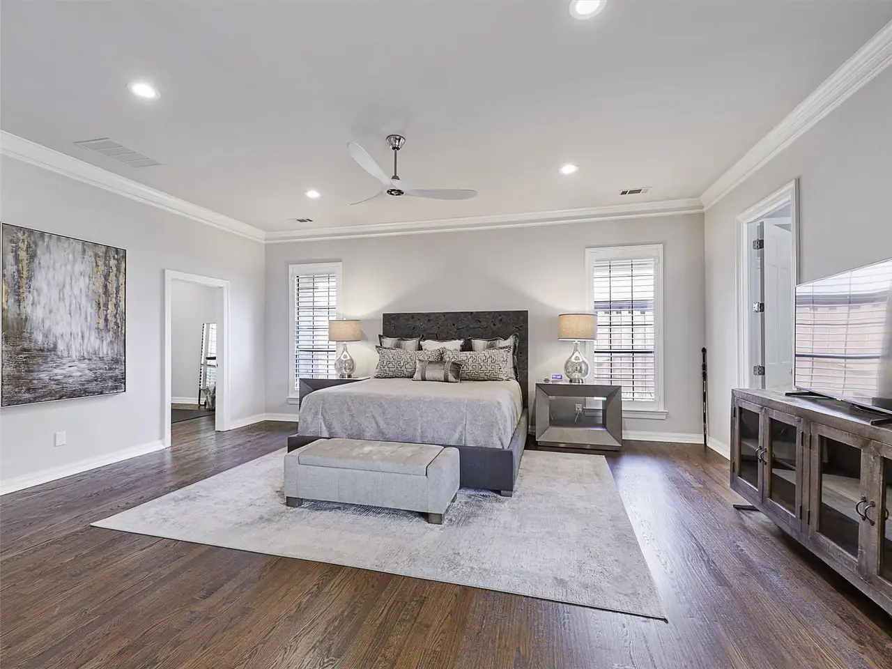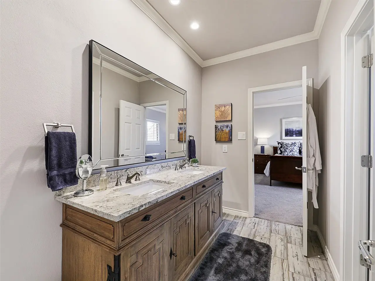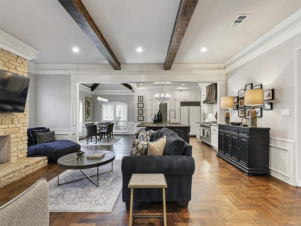 Step into timeless elegance in the heart of Bent Tree North 2. Nestled on a beautifully landscaped lot, this exquisite custom home seamlessly blends modern updates with classic charm. Rich hardwood floors and a soft, inviting color palette carry you through the first floor, where the formal dining room delights with updated lighting and sunlit plantation-shuttered windows perfect for intimate dinners or lively gatherings. The formal living room is the epitome of grace, anchored by a stately brick fireplace and framed by expansive windows. Entertain in style with a built-in wet bar, complete with wine fridge and ice maker.The family room offers rustic charm with a stone fireplace and wood-beamed ceiling, creating the perfect setting for cozy evenings. The gourmet kitchen is designed for culinary inspiration, features bespoke cabinetry, leathered quartzite countertops, a Bertazzoni gas range, Subzero refrigerator-freezer, stainless steel dw, and a walk-in pantry. Adjoining breakfast area boasts a well-appointed butlers pantry with a stylish coffee bar nook. Generous downstairs study offers built-ins for books, and can easily double as a welcoming guest suite with a full, updated bathroom just steps away.Oversized primary suite is a tranquil retreat, with a peaceful sitting area bathed in natural light and a private bonus room ideal for a home gym or quiet sanctuary. Luxurious en suite bathroom is a spa-like haven with dual vanities, sleek Carrera marble, a frameless glass shower, a deep soaking tub, and two separate water closets and custom walk-in closets. Upstairs, discover three spacious bedrooms, each thoughtfully designed with plush carpeting, soft tones, and plantation shutters. Two fully updated bathrooms with designer finishes ensure comfort and style for family or guests. Outside, your private backyard oasis awaits. A sparkling pool and bubbling spa are nestled in lush, tranquil landscapingan idyllic escape for morning coffee or sunset cocktails.