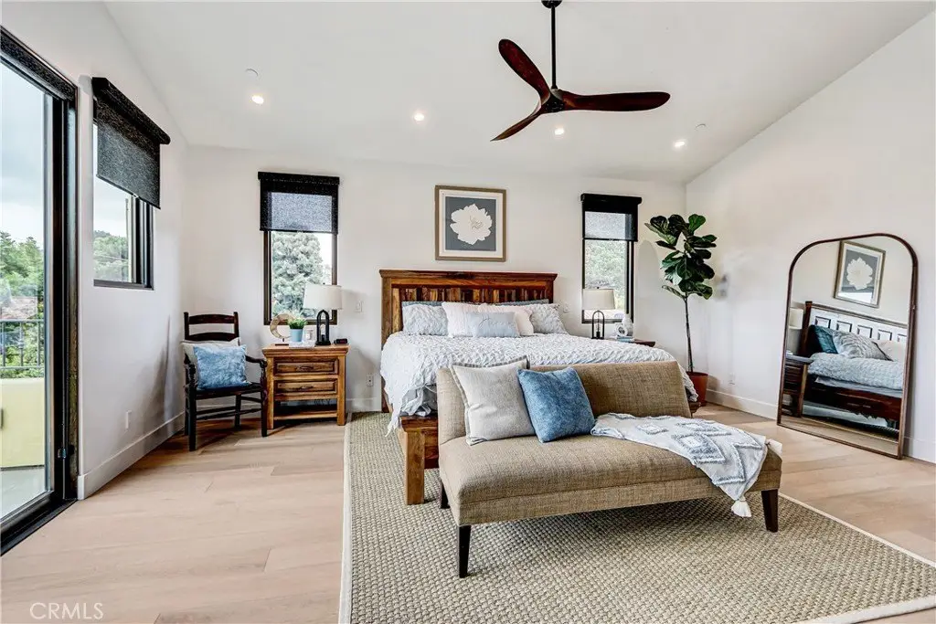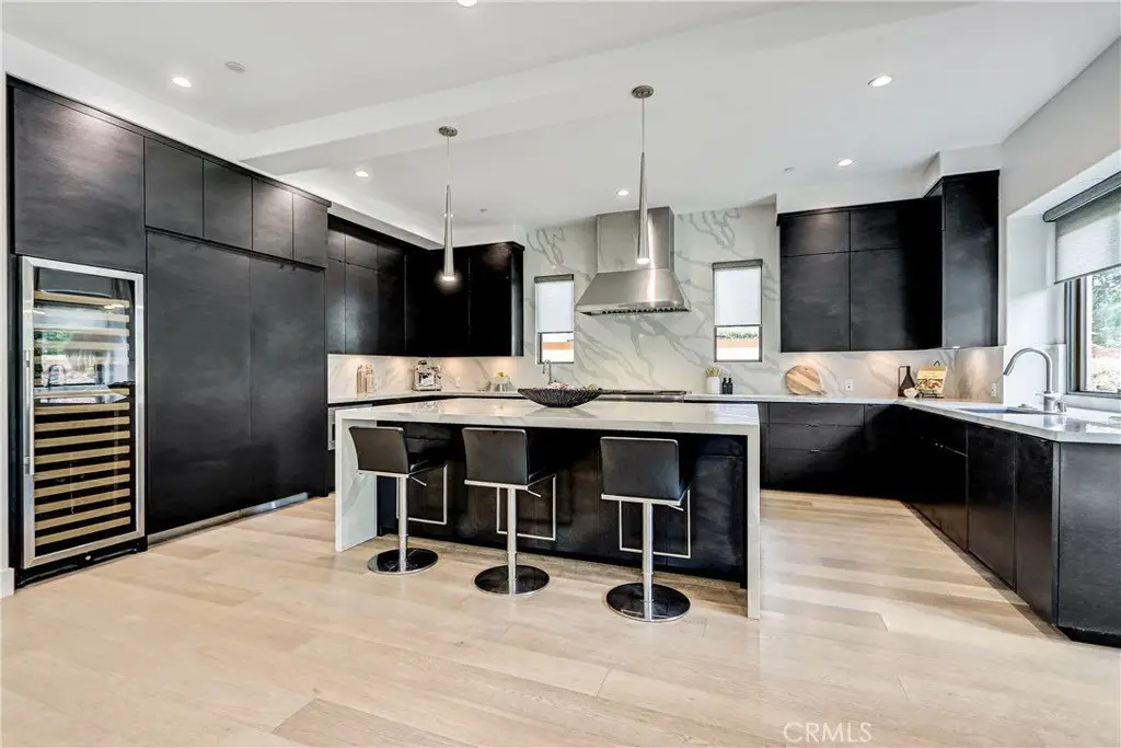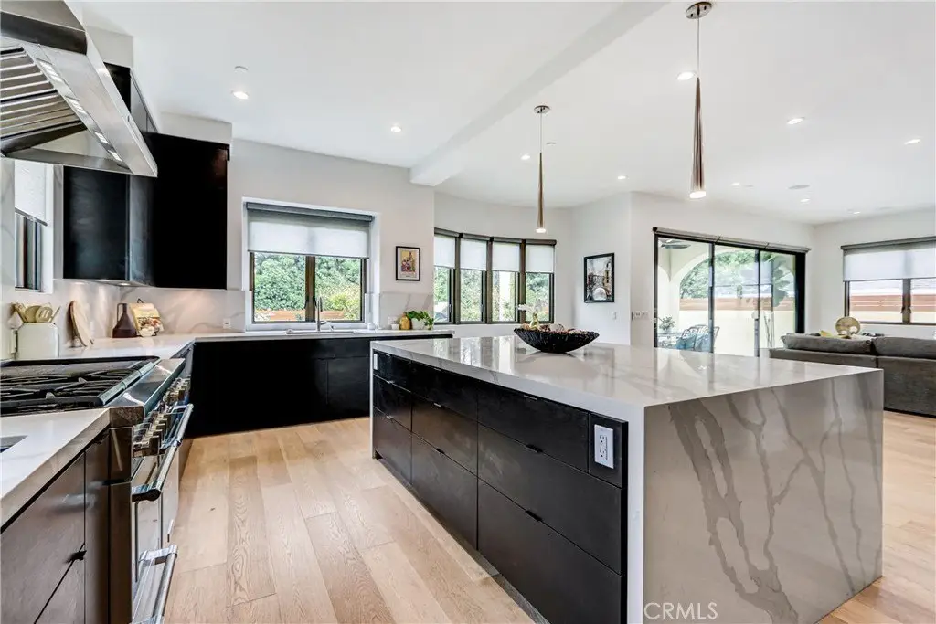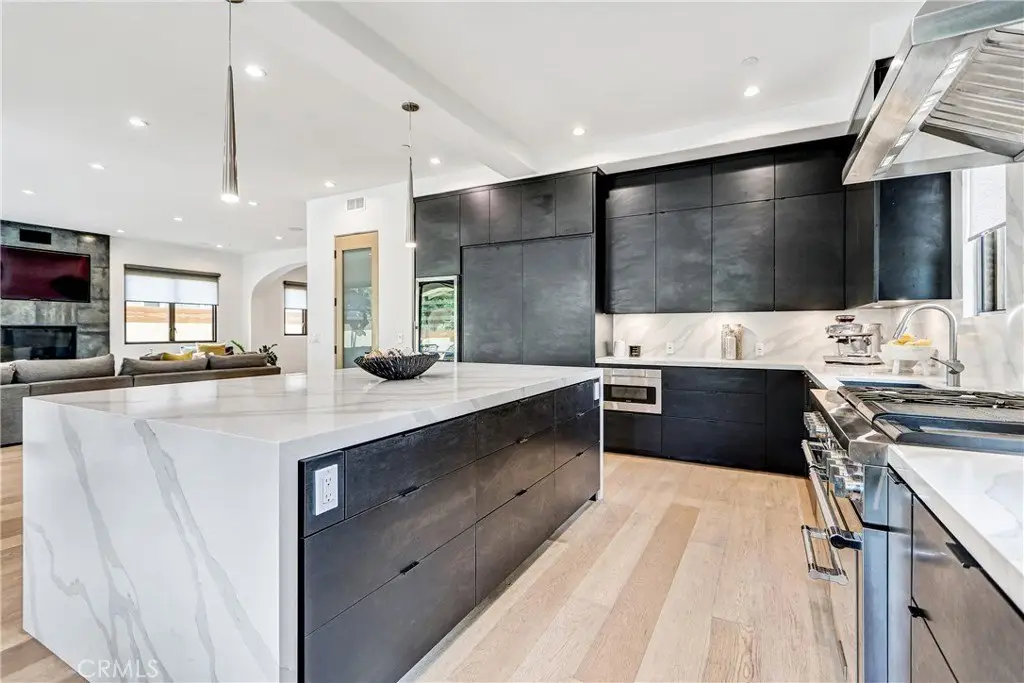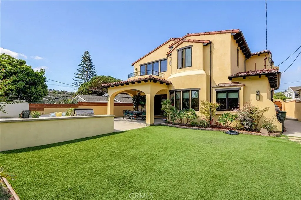 Welcome to this exceptional custom estate in the heart of the Lower Hollywood Riviera, built from the ground up in 2020. Offering 5 bedrooms, 4 bathrooms, and 3,750 sq. ft. of refined living space, this residence blends modern Italian and Montecito-inspired architecture with warmth and elegance. The chef’s kitchen is a showpiece with Thermador appliances, an oversized quartz island, wine refrigerator, and custom finishes that make entertaining effortless. Dramatic vaulted ceilings, skylights, engineered white oak floors, and architectural curves create a timeless aesthetic. The open-concept design flows seamlessly into inviting living spaces, accented by three fireplaces and a handcrafted Alder wood front door. Expansive Fleetwood doors lead to a private backyard retreat featuring a covered patio with built-in heaters, surround sound, ceiling fans, Lynx grill, custom brick oven, and gas fire pit with built-in seating. Unwind in the spa-like Jacuzzi or rinse off in the outdoor shower. With low-maintenance turf, fruit trees, and ample space for gatherings, this home is designed for year-round enjoyment. Additional highlights include a 3-car garage with EV-ready outlets, tank-less water heaters, and a security system. All of this is just a short stroll to the beach, Riviera Village shops, dining, and El Retiro Park. A true Riviera gem that perfectly balances luxury, comfort, and the coastal lifestyle.