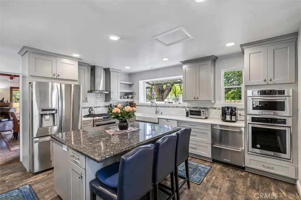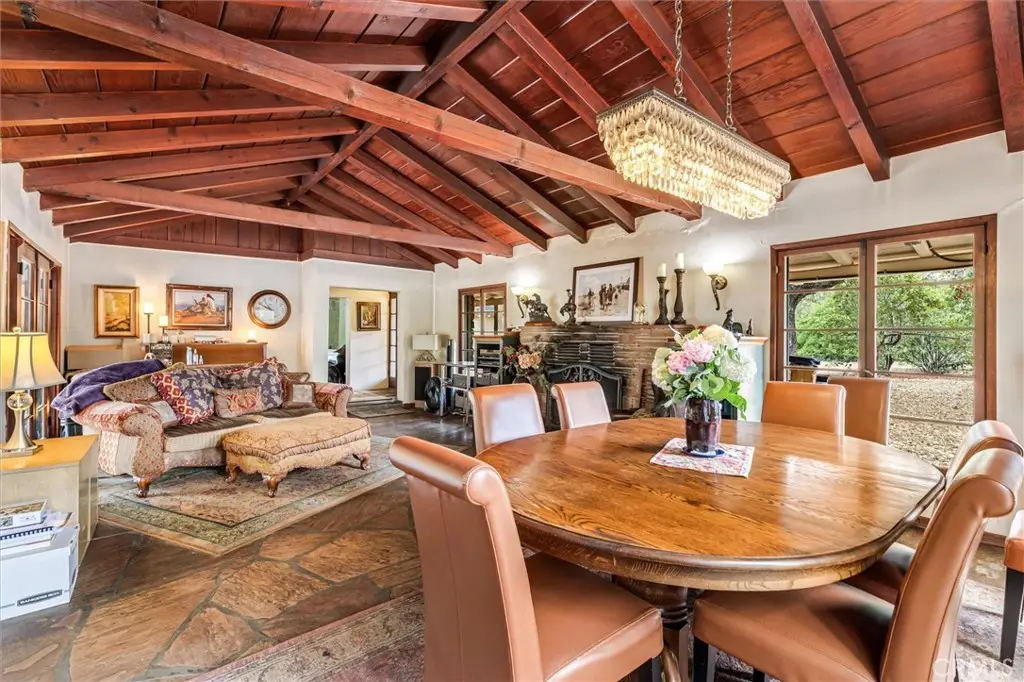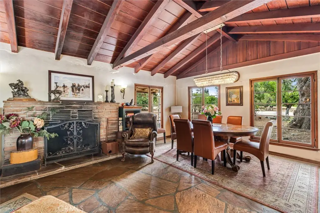 Magnificent one-of-a-kind property in the heart of Yorba Linda ~ First time on the market in over 50 years ~ Charming 5 bedroom adobe pool home situated on 3.7 acres (approx.) of citrus trees and secluded grounds ~ Superb craftsmanship in this home featuring stone floors, wood beamed ceilings, wood framed French doors and windows and vintage stone fireplace ~ The original home was built in 1946 (per title) and has been remodeled and additional living space was added in 2001 (approx). Remodeled kitchen features a spacious island, greenhouse window, apron sink, 5 burner gas stove with range hood, self-closing custom cabinetry, granite and quartz counters and a wine frig. ~ Distinctive living room and dining room with unique architecture and views of the surrounding land ~ Primary bedroom with stone fireplace, beamed ceilings, wood flooring and casual seating area ~ Spacious remodeled primary bathroom with an oversized shower and huge walk in closet ~ Additional 2 bedrooms are ample in size and share a hall bathroom ~ Upstairs features a bonus room, 2 additional bedrooms and a bathroom ~ Tranquil pool and spa surrounded by the majestic surrounding grounds ~ 2 car detached garage with 1/2 bath ~ Covered front and rear patios to relax and enjoy the tranquility and serenity of the vast wide open spaces and stately trees that brings country living to you ! This is a spectacular property and there is nothing else like it in Yorba Linda.