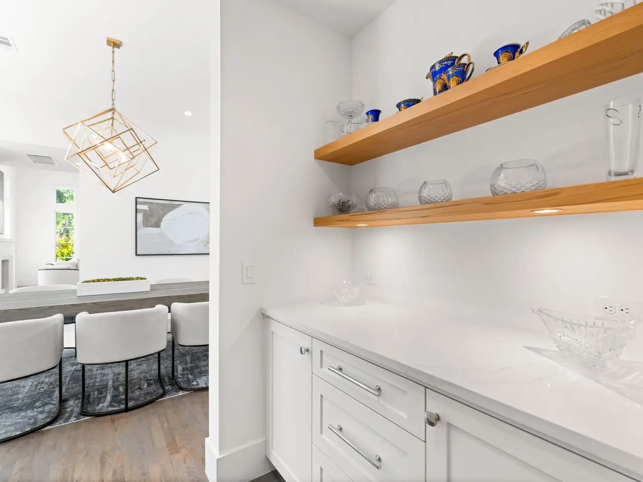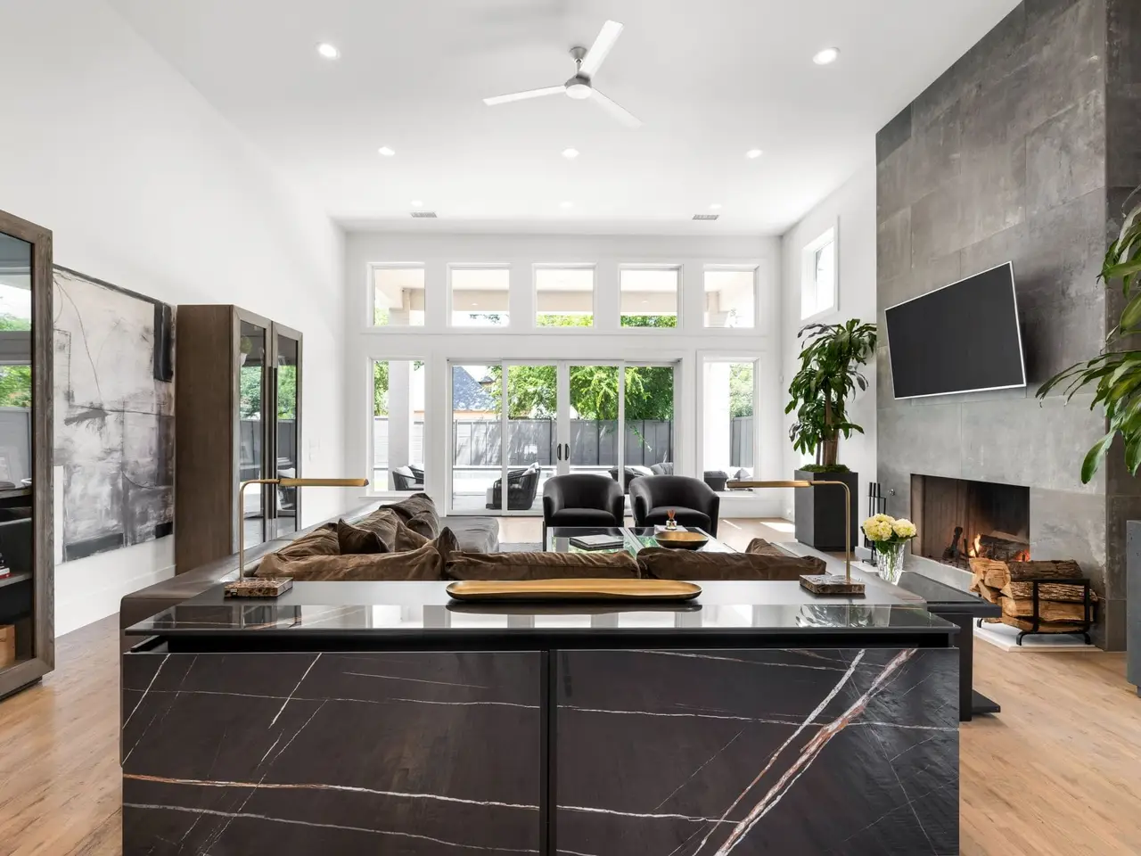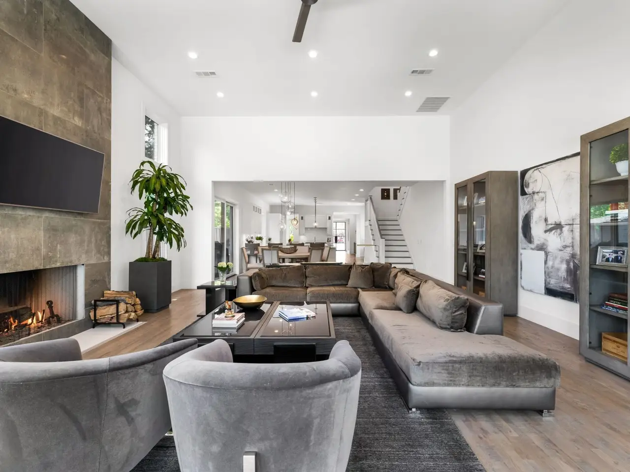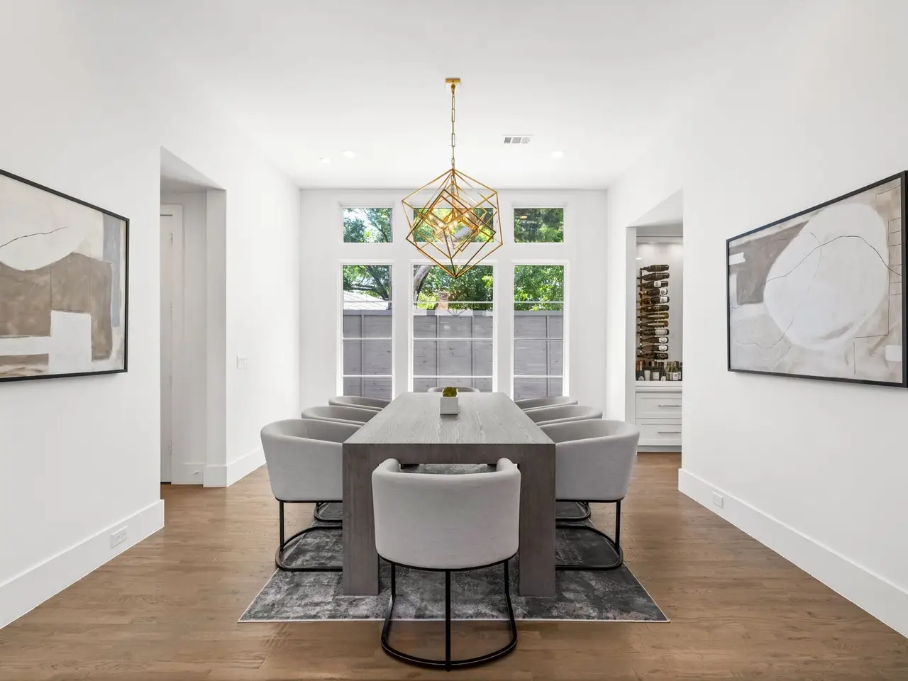 Immaculate and move-in ready, this one-owner 2016 custom home by Justin Jeffrey Homes offers 6,103 square feet of refined living in coveted Preston Club Estates. Behind a motorized entry gate and gated front courtyard, discover a sophisticated 5-bedroom, 7 bath contemporary masterpiece where design and functionality meet at every turn. A custom glass iron front door opens to expansive living spaces featuring two gas fireplaces, a separate office with glass French doors, and designer lighting and hardware throughout. The chefs kitchen is fully equipped with a 48 Wolf range, Gaggenau stainless steel refrigerator, two Bosch dishwashers, quartz countertops, under-cabinet lighting, and a walk-in pantry ideal for both entertaining and everyday living. A stylish butlers pantry and a dramatic glass-enclosed, backlit wine wall with built-in wine fridge complete the heart of the home. The primary suite overlooks the resort-style backyard and includes a spa-inspired bath with soaking tub, large glass-surround shower, and an oversized custom closet with a bonus storage closet. Two full laundry rooms offer added convenience. Outside, a private backyard retreat awaits with a 2022 PebbleTec pool, tanning ledge, and spa, surrounded by lush landscaping. This contemporary residence is the perfect balance of clean lines, thoughtful design, and modern luxury.