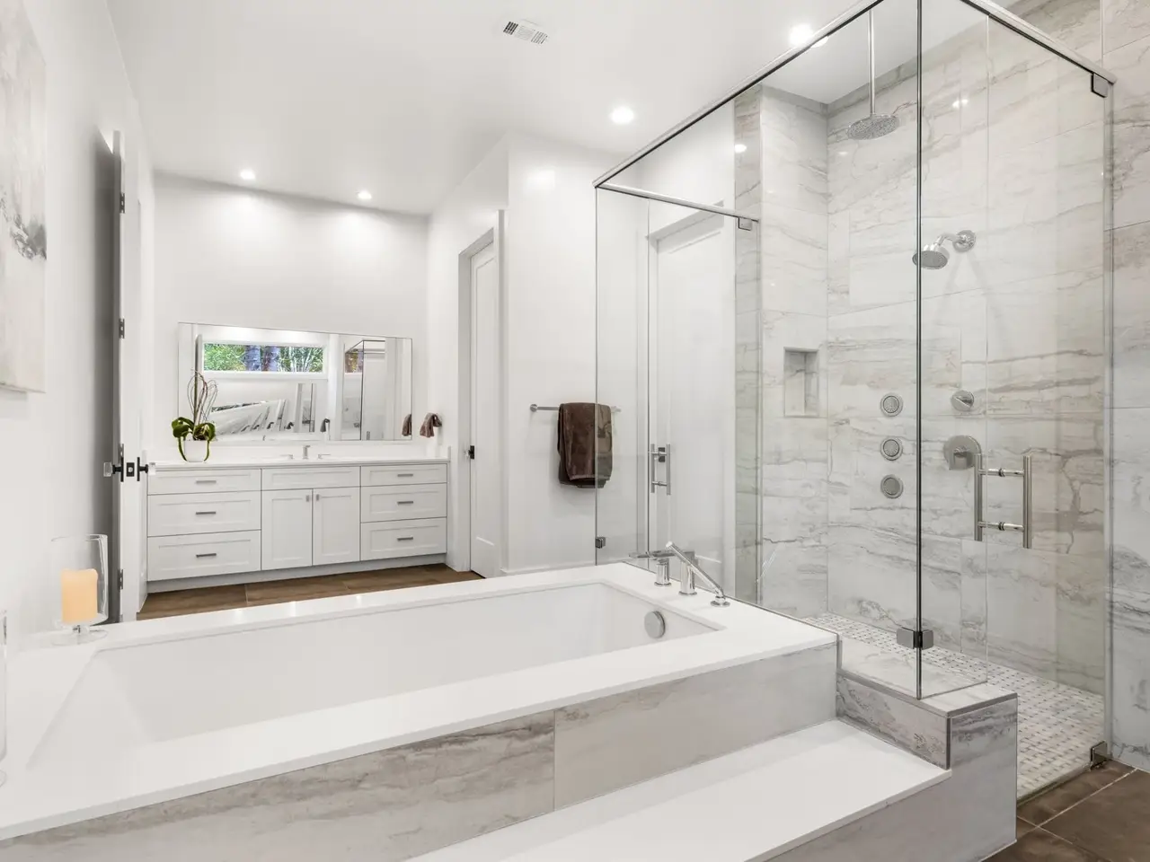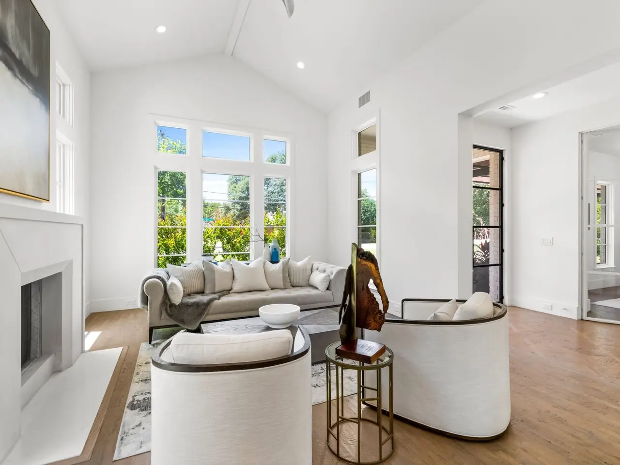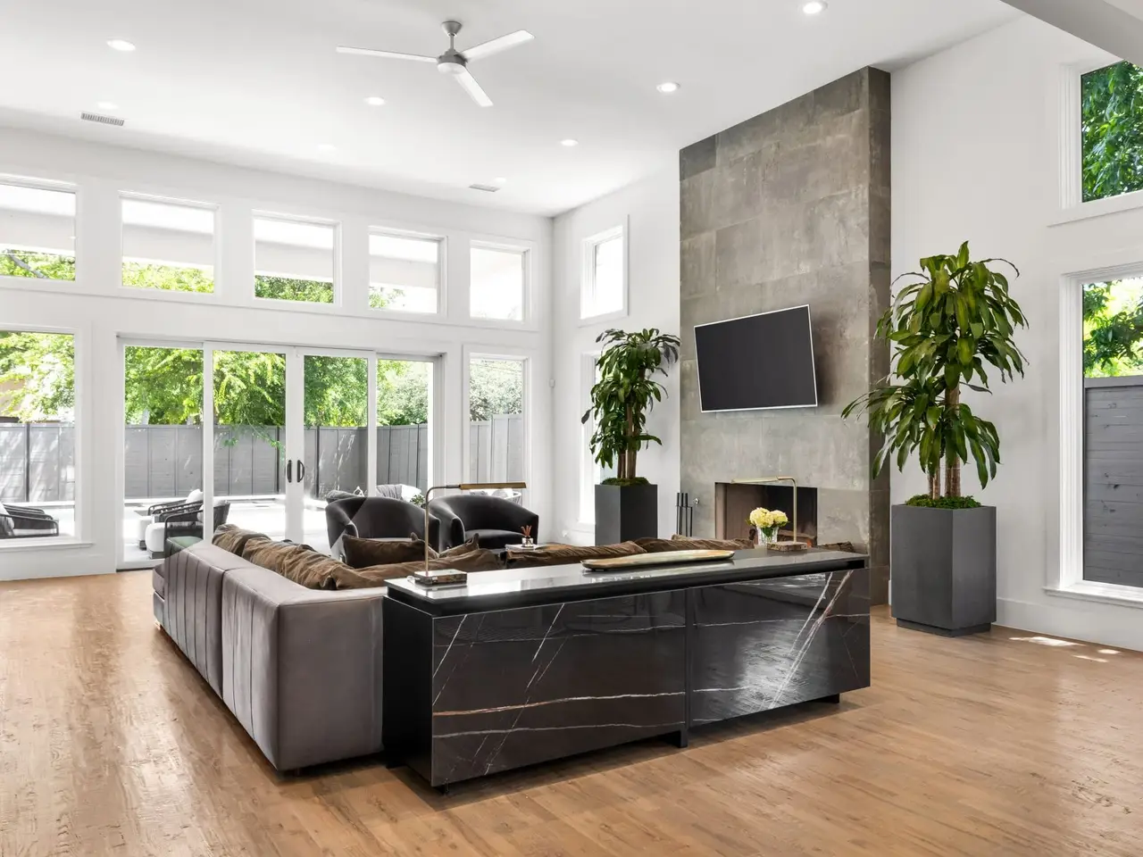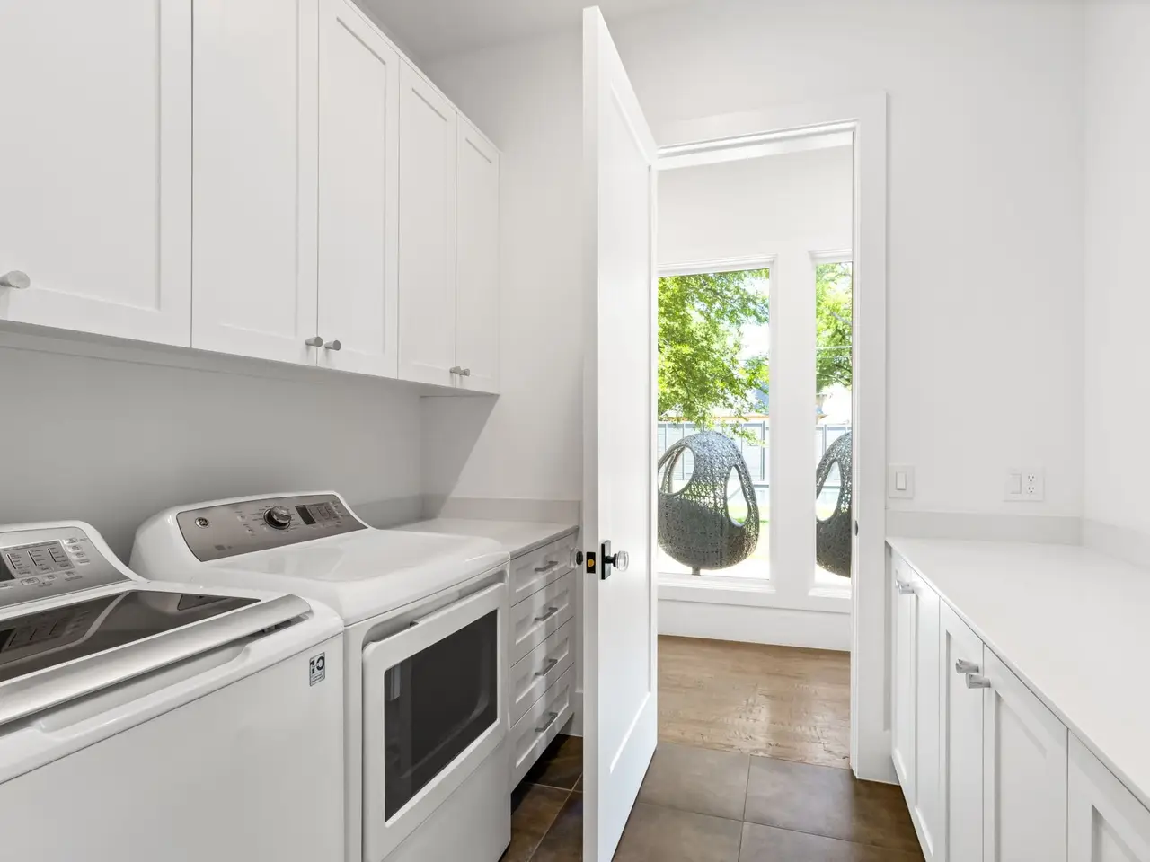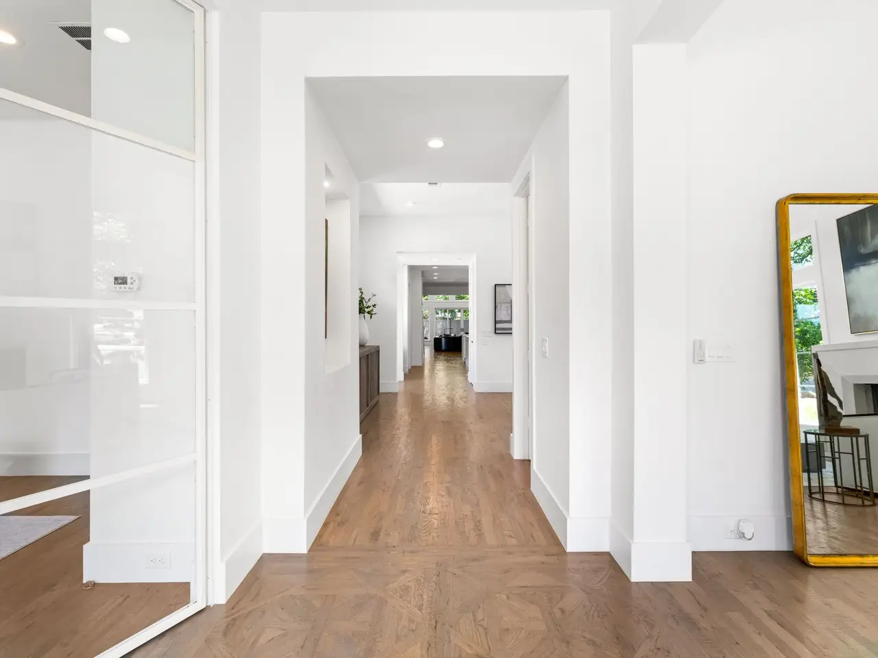 Immaculate and move-in ready, this one-owner 2016 custom home by Justin Jeffrey Homes offers 6,103 square feet of refined living in coveted Preston Club Estates. Behind a motorized entry gate and gated front courtyard, discover a sophisticated 5-bedroom, 7 bath contemporary masterpiece where design and functionality meet at every turn. A custom glass iron front door opens to expansive living spaces featuring two gas fireplaces, a separate office with glass French doors, and designer lighting and hardware throughout. The chefs kitchen is fully equipped with a 48 Wolf range, Gaggenau stainless steel refrigerator, two Bosch dishwashers, quartz countertops, under-cabinet lighting, and a walk-in pantry ideal for both entertaining and everyday living. A stylish butlers pantry and a dramatic glass-enclosed, backlit wine wall with built-in wine fridge complete the heart of the home. The primary suite overlooks the resort-style backyard and includes a spa-inspired bath with soaking tub, large glass-surround shower, and an oversized custom closet with a bonus storage closet. Two full laundry rooms offer added convenience. Outside, a private backyard retreat awaits with a 2022 PebbleTec pool, tanning ledge, and spa, surrounded by lush landscaping. This contemporary residence is the perfect balance of clean lines, thoughtful design, and modern luxury.