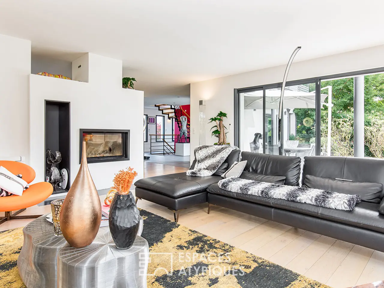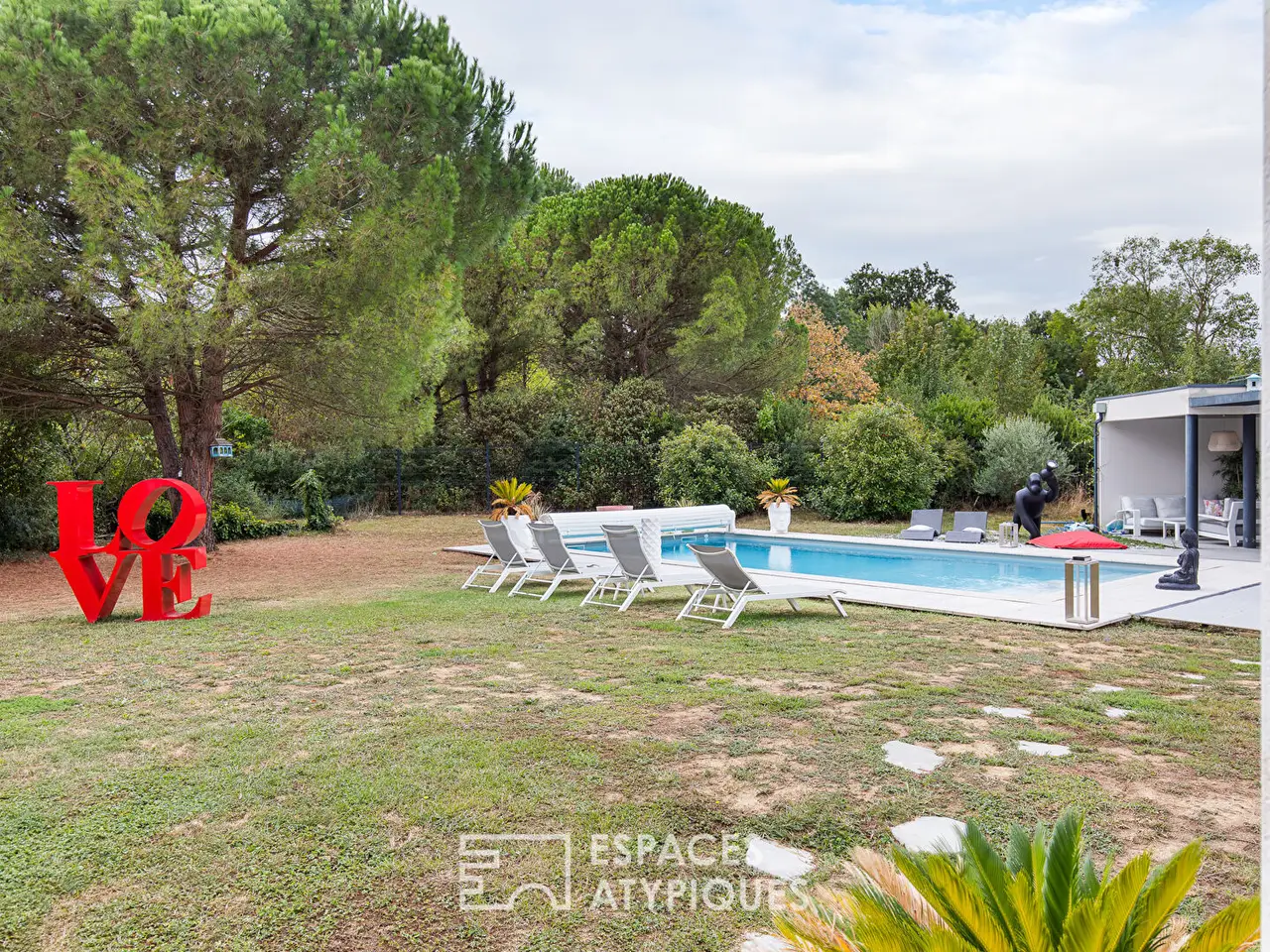 Maison contemporaine a l'Isle-jourdain Located in the town of Isle Jourdain, this contemporary house of 300sqm, spread over three levels, is the perfect illustration of contemporary architecture that is both aesthetic and functional. From the entrance, the lines of the winding staircase are highlighted by the brightness of the ground floor. The living room, the dining room, and the open kitchen are intelligently turned towards the outside thanks to large bay windows. This level also accommodates a spacious bedroom with its private bathroom. The upper floor opens onto an office space dominated by a glass roof. The sleeping area leads to the two bedrooms, each with its own bathroom and access to the terrace with a clear view of the landscaped garden. The master bedroom, equipped with a bathroom with a private dressing room, completes this level. The lower floor, fully furnished, leads to the laundry area and garage and can accommodate a relaxation area (games room, cinema room, music room) as well as a place dedicated to professional activity. The 3000sqm garden and its heated swimming pool offer the space necessary to make this house a place to live where modern comfort is combined both outside and inside. Energy class: B / Climate class: C Estimated average amount of annual energy expenditure for standard use, established based on energy prices for the year 2021: between EUR1,833 and EUR2,100 Information on the risks to which this property is exposed are available on the Georisks website http://www.georisks.gouv.fr REF. 936ET Additional information * 5 rooms * 4 bedrooms * 4 bathrooms * 1 floor in the building * Outdoor space : 3000 SQM * Property tax : 3 907 €