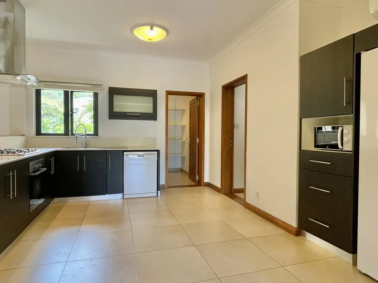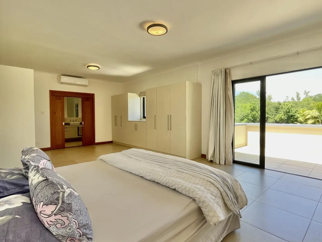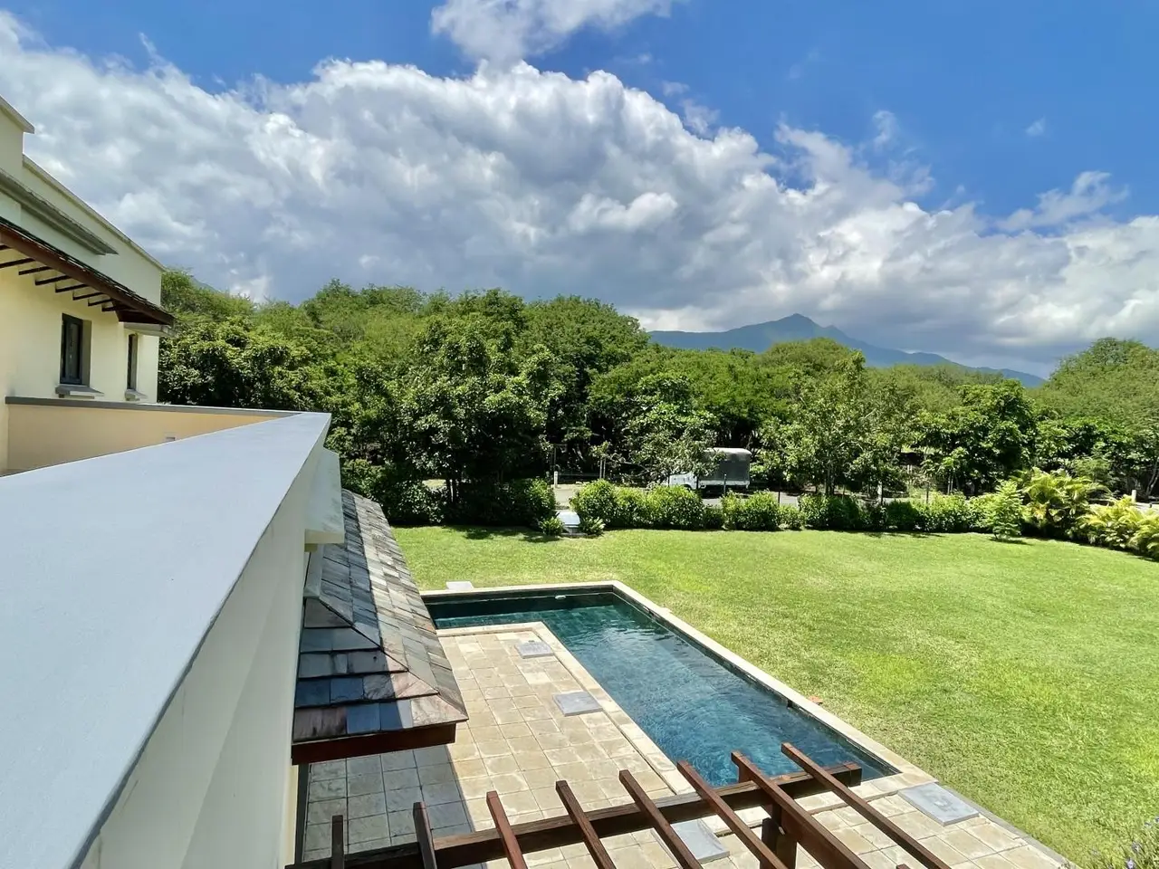This 5-bedroom, double-storey , villa is ideal for anyone looking for a large unfurnished home in a gated estate in Black River, Mauritius, surrounded by mountains and lush vegetation. Neighbouring the Black River Gorges, the estate offers a wonderful lifestyle, where residents can enjoy a secure and natural environment, whilst being in close proximity to the sought-after amenities of Black River (La Balise Marina, Ruisseau Creole Shopping mall, La Preneuse Beach, Cap Tamarin…). All bedrooms are en-suite, with closet space and air-conditioning. 2 bedrooms are found on the ground floor, and the remaining 3 are on the first floor, of which two open onto a spacious balcony overlooking the garden and mountains in the background. A large living area, with open-plan kitchen, is found on the ground floor, leading directly onto the covered verandah and dining room. The kitchen is semi-attached to a scullery/laundry, which is also accessible from the garage. The 3300 m2 property is equipped with an electric gate + intercom, double garage, pool and automatic irrigation throughout the garden. MAURITIAN RESIDENCE PERMIT APPLICABLE UPON PURCHASE.