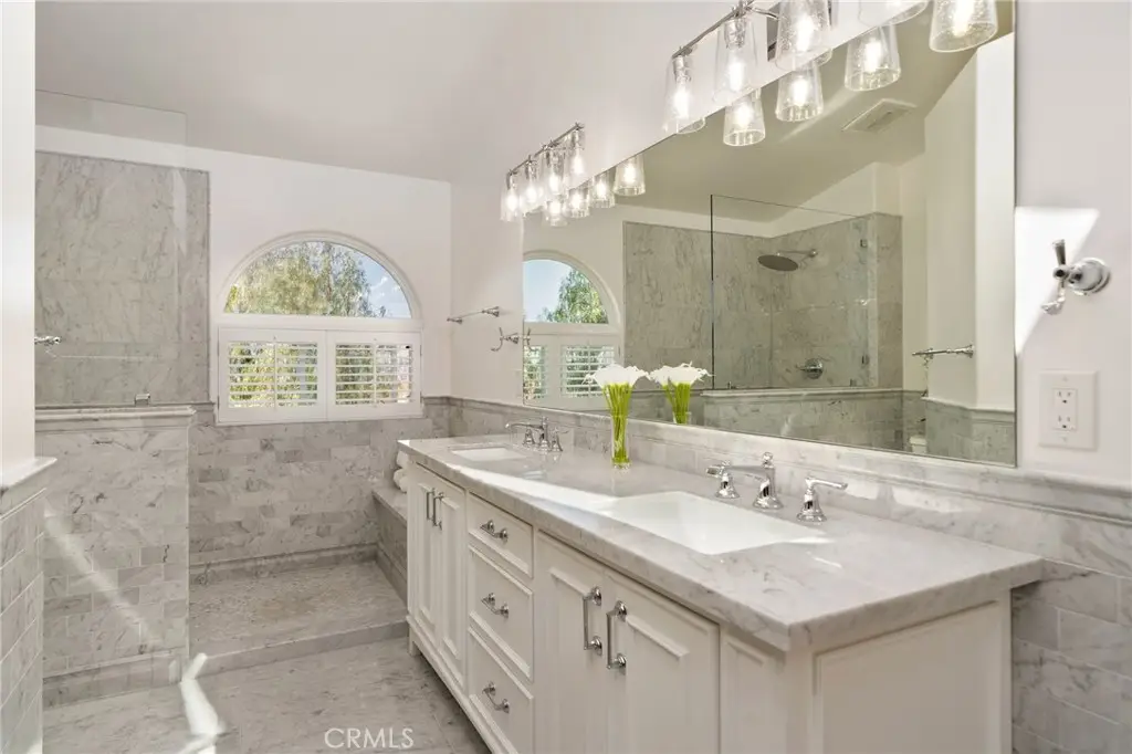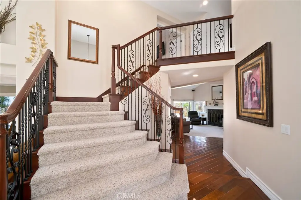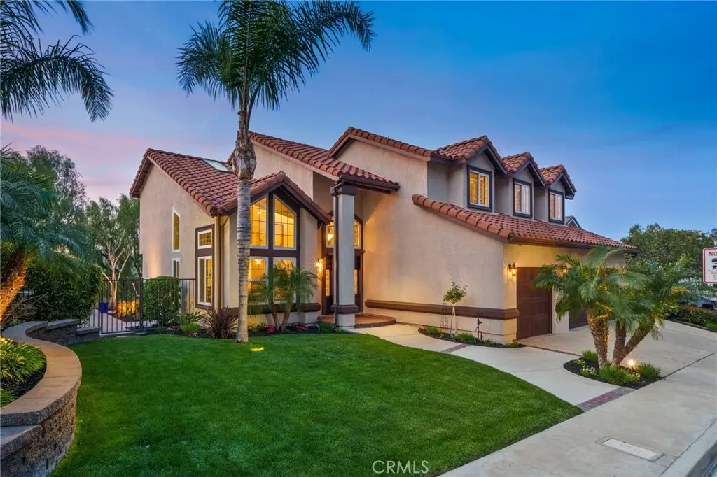 Stunning Anaheim Hills Home with Panoramic Views! Nestled in the heart of Anaheim Hills on a peaceful cul-de-sac, 8085 E Kendra Ct offers breathtaking city light and snow-capped mountain views. This beautifully upgraded 4-bedroom, 2.5-bath home spans approximately 2,200 sq. ft. and features a 3-car garage with epoxy floors and built-in cabinetry. Step inside to find elegant wood flooring and an upgraded iron staircase, setting the tone for this sophisticated residence. To the right, the inviting family room boasts a cozy fireplace, Bowers & Wilkins surround sound system, and a sliding glass door that leads to the backyard--offering an incredible indoor-outdoor living experience. Electronic equipment is neatly stored in a pullout cabinet for a sleek, clutter-free look. The remodeled kitchen is a chef's dream, featuring recessed lighting, stainless steel appliances, granite countertops, a stylish tile backsplash, and a reverse osmosis system. A breakfast nook and slider provide easy access to the backyard, perfect for morning coffee with a view. The formal dining room, conveniently adjacent to the kitchen and you have another slider to the backyard. The spacious formal living room adds to the home's charm.The main floor also includes a remodeled half bath and an inside laundry room for convenience. Upstairs, the luxurious primary suite is a private retreat, complete with a ceiling fan, a sliding door leading to a Trex deck with stunning views, and a walk-in cedar-lined closet. The remodeled primary bath features dual sinks, a carrara marble shower with matching walls, brizo faucets and fixtures and a skylight with dual-pane glass and an automatic shade. The secondary bedrooms offer LVP floors, ceiling fans, cedar-lined closets, and window shutters. The remodeled hall bath features dual sinks and a porous marble shower with matching walls.Exceptional Outdoor Living designed for relaxation and entertaining, the backyard boasts professional landscaping by Seth Pompey, landscape lighting, a built-in BBQ with a fridge, a covered patio extending from the upper deck, and an above-ground spa with an outdoor shower. Additional Features Recently painted exterior, New garage doors & rain gutters. High-energy efficient roof with dual-layer paper, reflective membrane. Whole-home soft water and filtration system, 9 security cameras on the house & 12 on the street This meticulously maintained home offers the perfect blend of comfort, luxury, and breathtaking scenery.