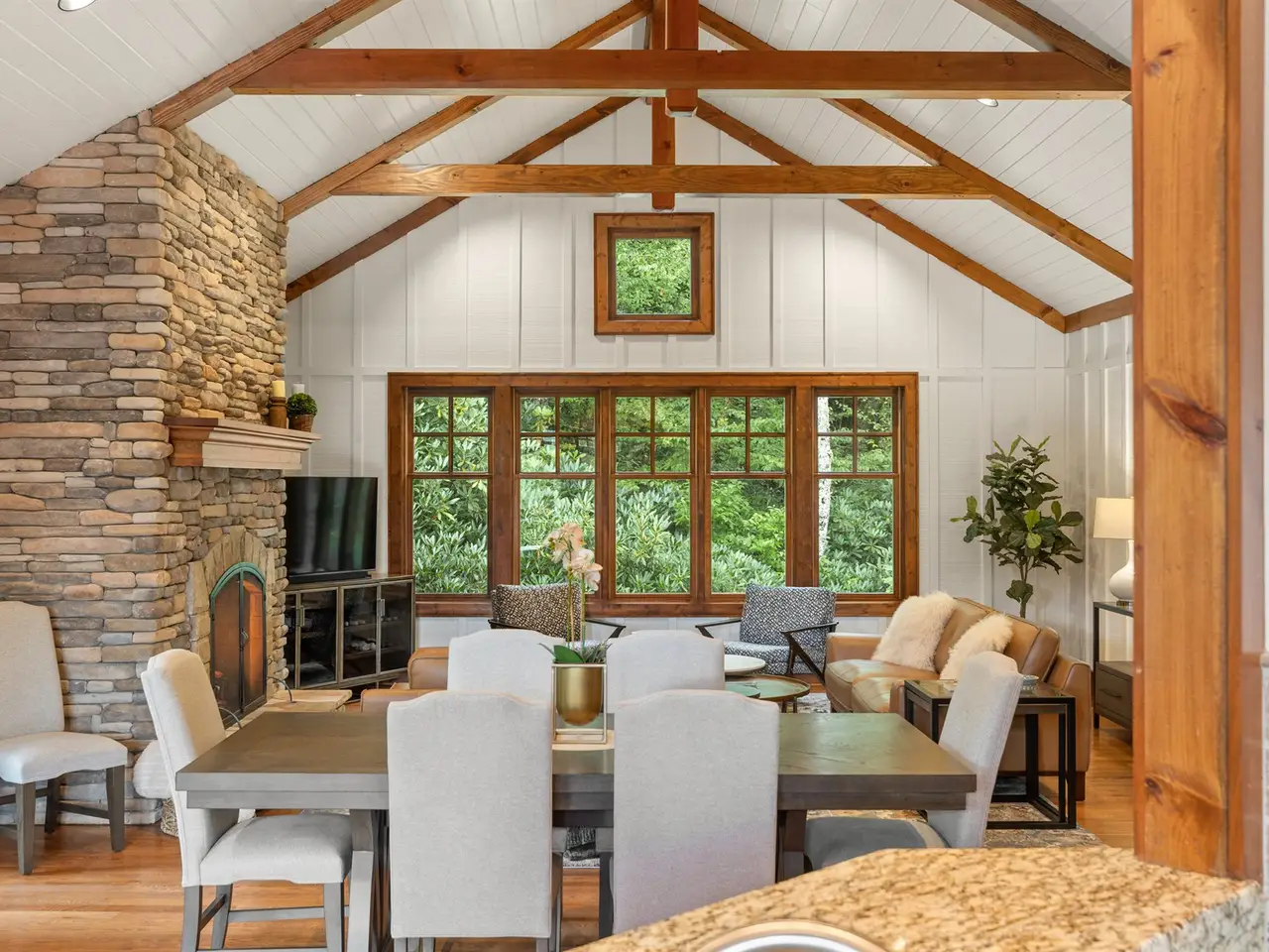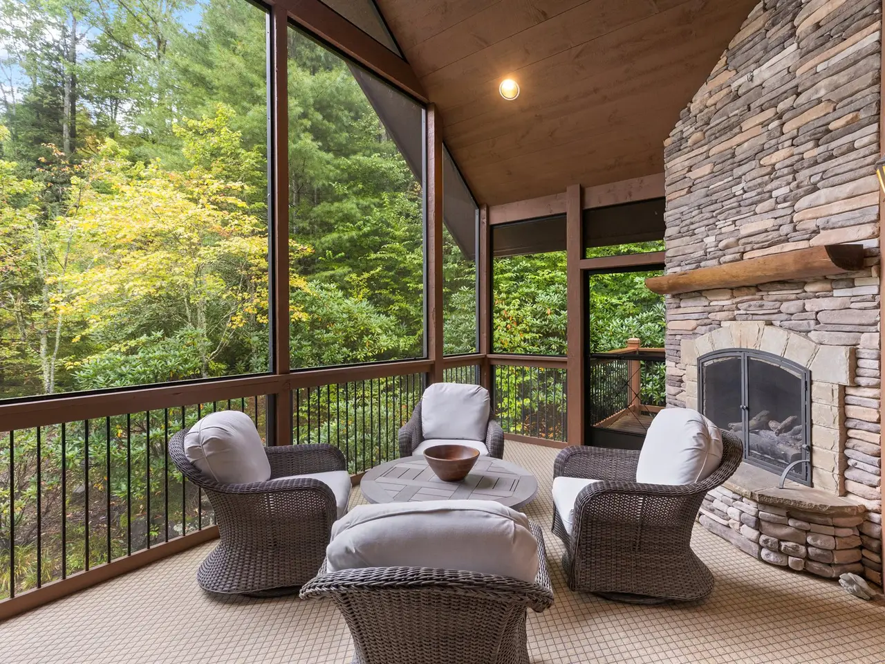 Effortless lock-and-leave luxury awaits at The Birches of Wildcat Cliffs in fabulous Wildcat Cliffs Country Club. This beautifully appointed 3BR/3BA upper-level condominium offers soaring ceilings, abundant natural light, two fireplaces and the convenience of elevator access. The spacious primary suite features a private retreat with a walk-in closet and a tiled bath with both shower and soaking tub options. Designed for comfort and entertaining, the open-concept living and dining areas showcase beamed ceilings, a welcoming fireplace, and seamless flow to the fabulous screened porch complete with its own fireplace for year-round enjoyment of the tranquil mountain setting. Two additional guest suites, a full laundry room, a one-car carport, and golf cart parking in the new community golf cart barn provide both functionality and convenience. Sold turnkey (with only a few exceptions), this residence has been thoughtfully updated with new carpet (Fall 2023), a well-equipped kitchen, high-quality bedding and mattresses, modern TVs, and stylish furnishings just two years old. Located on one of the most sought-after streets in Wildcat Cliffs, residents enjoy an active, welcoming community. Simply hop in your golf cart to visit the clubhouse, driving range, or croquet lawn. With membership appurtenant to the property, owners benefit from exceptional amenities and a vibrant social scene?all while savoring the ease of mountain living at its finest.
