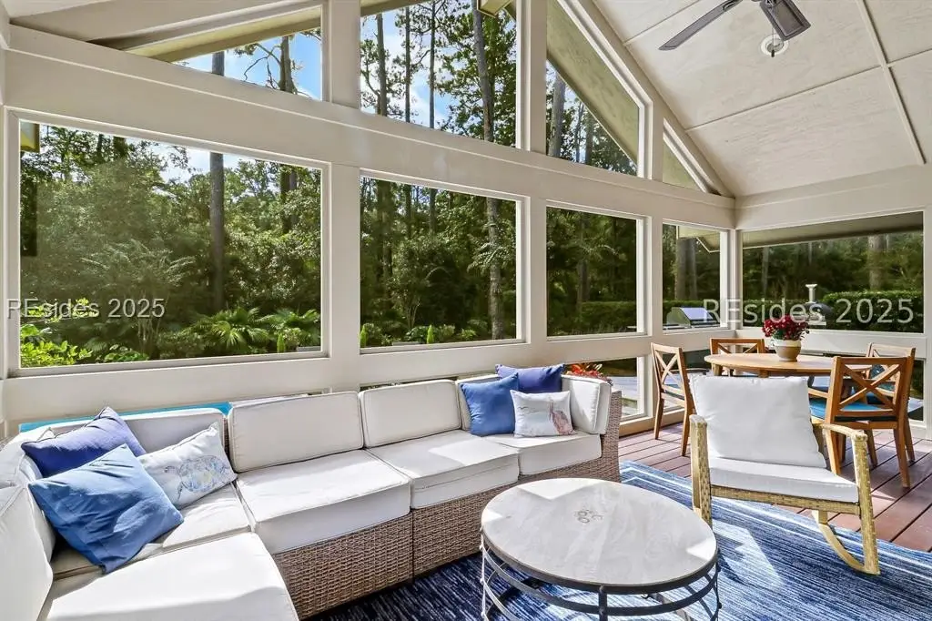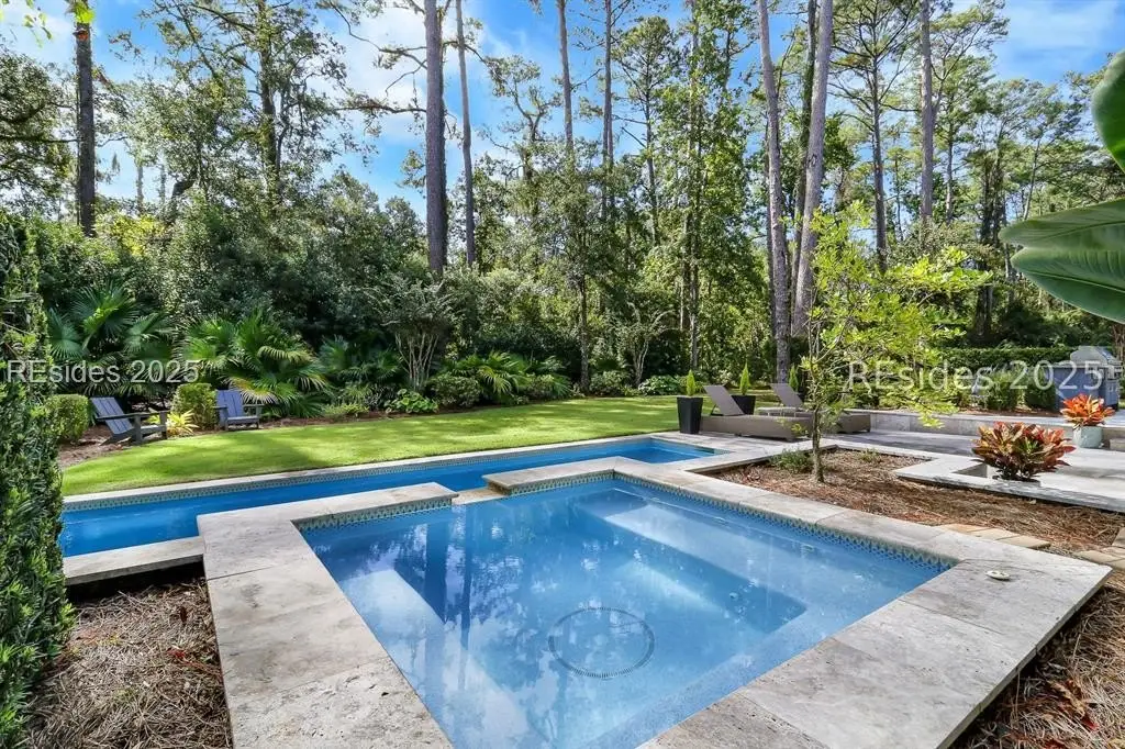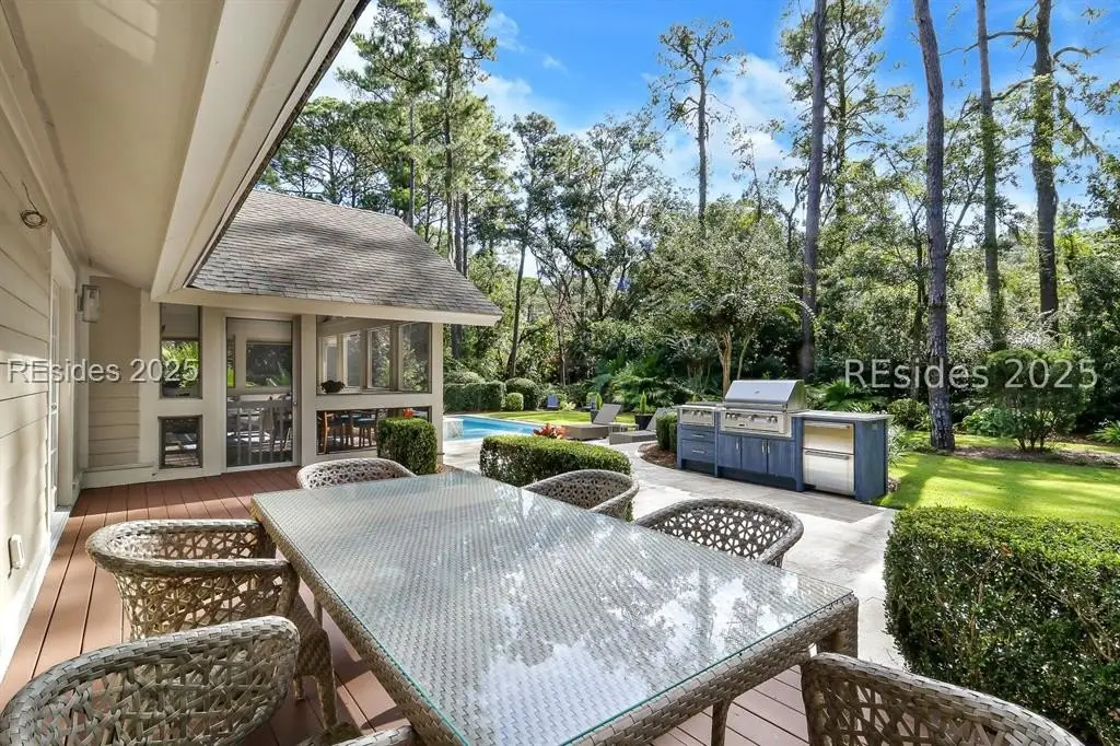 Discover coastal charm and refined craftsmanship in this beautifully reimagined 4BR/3BA home in the sought-after Club Course neighborhood of Sea Pines. Rebuilt and expanded in 2012 by Twelve Oaks Construction, this home combines Lowcountry architecture with modern luxury and the ease of all one level living.The open-concept kitchen, completely redesigned by the current owner, is a showstopper featuring all new touchstone soft-close cabinetry, quartzite countertops, and the crème de la crème appliances to include a Wolf 6-burner gas range with oven, Sub-Zero refrigerator with freezer drawers Sub-Zero wine column, and back kitchen offers additional quartzite counters, Wolf steam oven, Wolf microwave drawer, and Sub-Zero beverage center. The kitchen opens to the beautiful Great Room with tabby fireplace.The owners suite features hardwood flooring, crown molding, his/her walk-in closets, and a bath with dual marble vanities and a walk-in tiled shower. Three guest bedrooms include one ensuite with sitting area and private bath and two bedrooms sharing a stylishly updated bath. Additional features include hardie plank siding, spray foam insulation, 2017 roof, 2023 tankless water heaters, 2023 Trane 4-ton HVAC.Step outside to your private oasis where the current owner added a stunning swimming pool/spa surrounded by all new lush landscaping, outdoor lighting, screened porch, and outdoor kitchen.This meticulously updated home embodies the relaxed yet sophisticated Sea Pines lifestyle where coastal living meets timeless design.