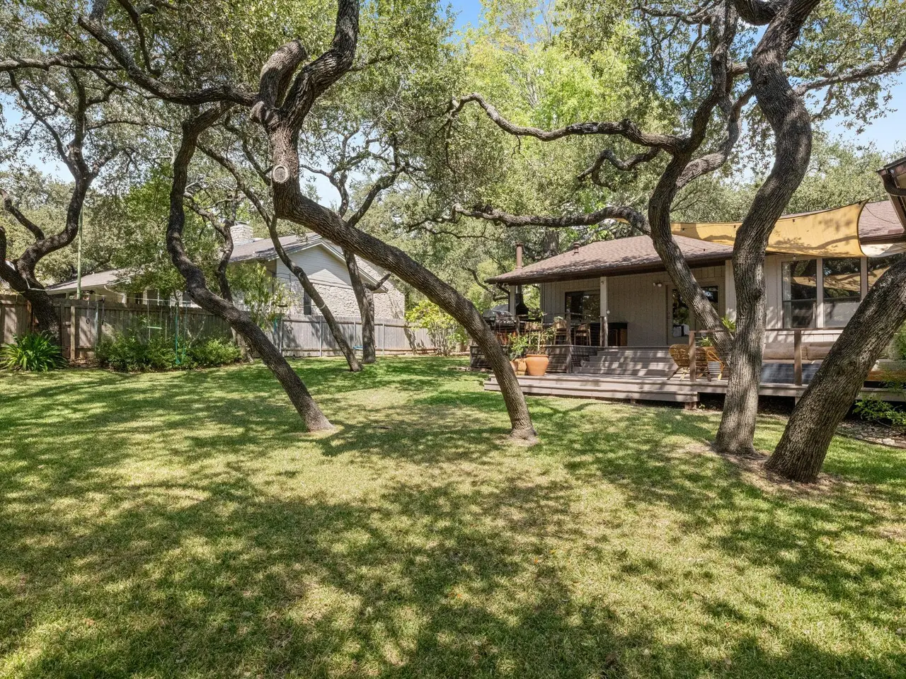 Near top-rated Eanes ISD schools, this beautifully renovated one-story home in The Woods of Westlake offers an open floor plan with three bedrooms, two and a half baths, and a flexible bonus space adjacent to the living room. The kitchen features stainless steel KitchenAid appliances and flows seamlessly into the living areas. Custom built-in furniture including bookcases, credenzas, and more adds a touch of craftsmanship throughout the home. Enjoy entertaining on the expansive deck with a spacious lounge area and a fully equipped outdoor kitchen featuring a pizza oven, all overlooking the serene, wooded backyard. Just a short walk to the trails of Barton Creek Greenbelt and Hill of Life and minutes from downtown Austin, this home offers the best of both nature and city life.