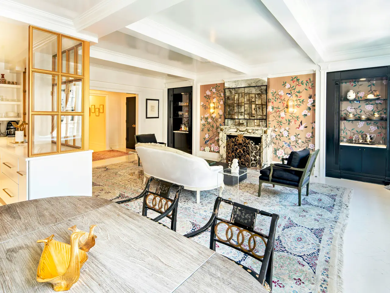 It feels like Paris when you enter this mint condition full floor residence from the private elevator landing. The gallery leads you to the glamorous living room complete with built-in storage flanking the fireplace with marble mantel from the legendary Plaza Hotel. Both the living room and dining room face west over Park Avenue, with a view of New York's most distinguished neighborhood. The innovative renovation of the kitchen features glass and metal French windows which allows abundant light to filter in. The appliances include Wolf, Miele and SubZero as well as beautifully designed lacquer cabinetry.  In a separate wing there are two generous bedrooms. The primary bedroom has a generous walk-in closet with dressing area and a stunning marble bathroom with a heated floor.  The second bedroom also comes with generous closet space, a marble bathroom and an added bonus room which can be used as a home office or nursery.  In addition there is a laundry room and guest bathroom.  There is a heat and air conditioning system installed through-out the apartment plus generous storage space as well as a storage unit in the basement of the building that transfers with the sale.  Built in 1931 by Arthur Paul Hess, 891 Park Avenue is a 15 unit boutique co-op with a brick facade and three story limestone base. Amenities include a  live-in Resident Manager and Doorman on duty 24 hours Friday to Sunday and 7AM to 11PM Monday to Thursday.  There is a semiannual real estate assessment of $11,235 and a 3% Flip Tax. The building allows 50% financing and pets with Board approval.