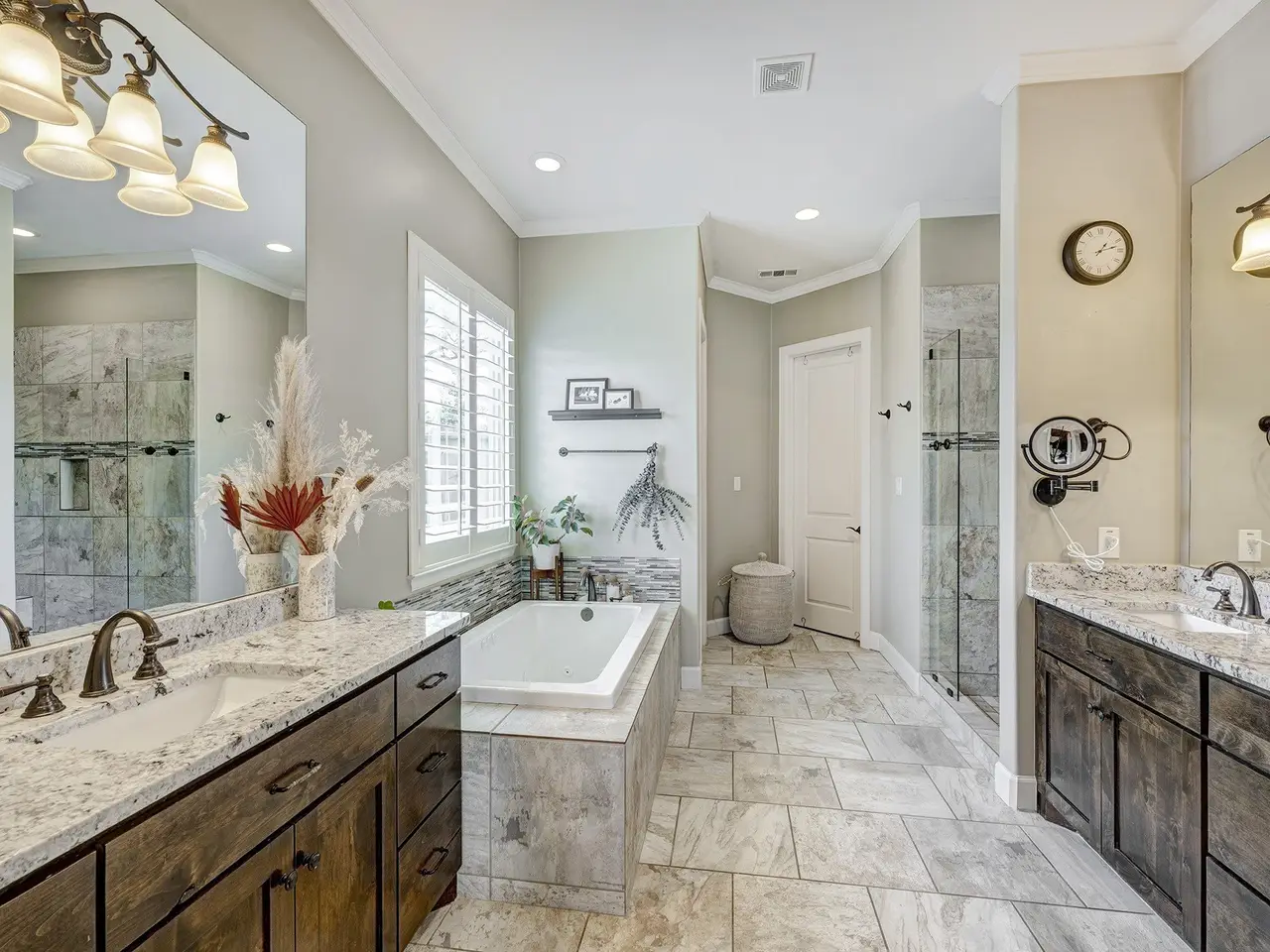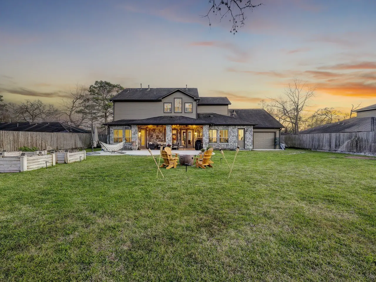 Welcome to this exquisite home in sought-after Spring Branch Oaks, just blocks from Spring Branch Elementary School (Buyer to verify eligibility)! The stately stone exterior invites you into a grand two-story foyer. Adding character to the home, the study and den feature rich alder wood beamed ceilings. You’ll love the island kitchen with elegant wood cabinetry, spacious breakfast bar, butler’s pantry, and adjoining breakfast room! The kitchen flows into the den offering seamless entertaining. The first-floor primary suite boasts wood floors, tray ceiling, patio access, and luxurious bathroom! The second floor features the guest bedrooms, a light-filled game room, and a media room for maximum entertainment! Enjoy evenings on the covered patio, overlooking the oversized backyard where there is plenty of space for all your recreation! You’ll appreciate the whole-home generator, three-car tandem garage, and mud room. Schedule a showing today and envision your life in this remarkable home!