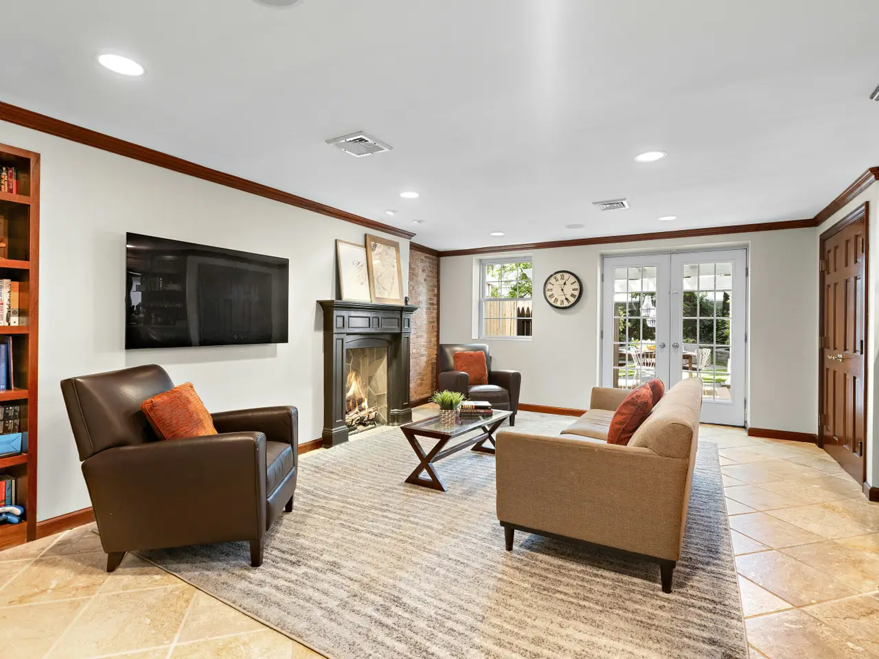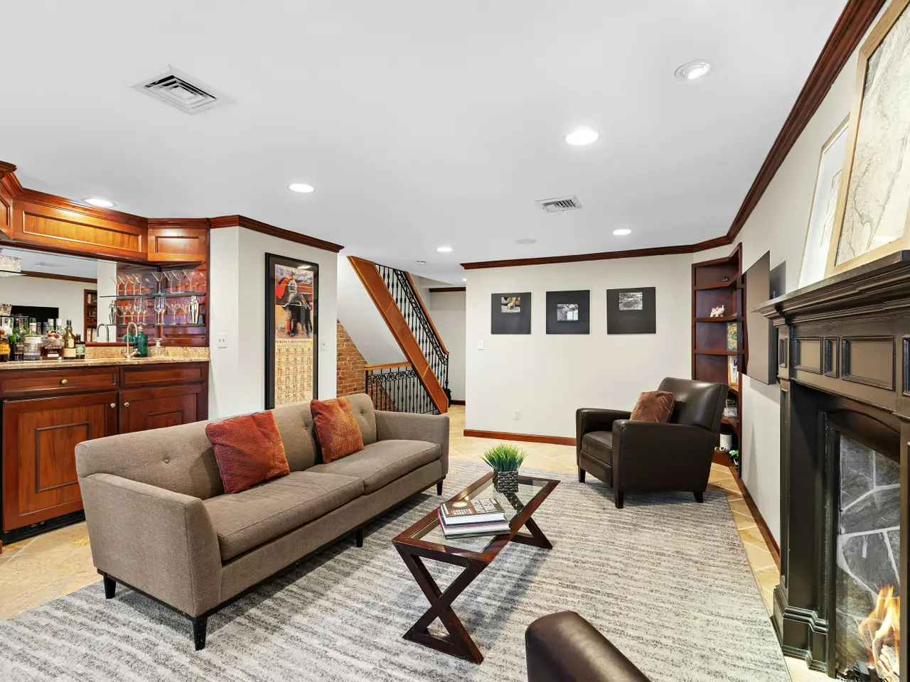 Garden level family room with built-in wet bar