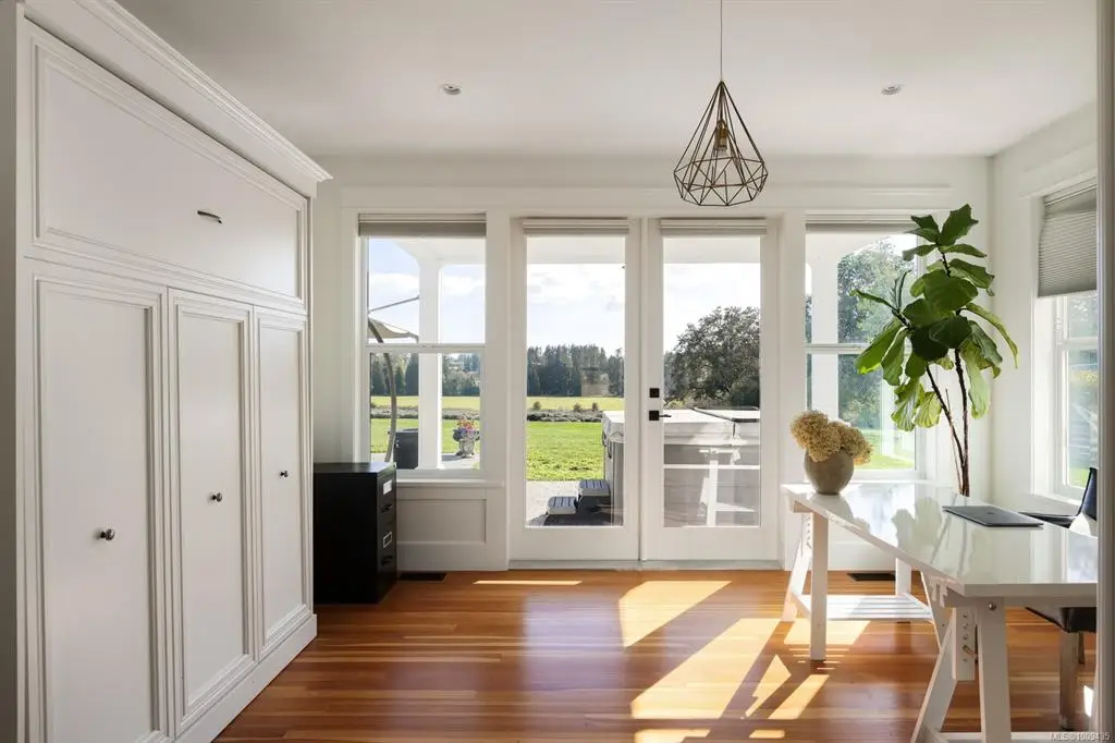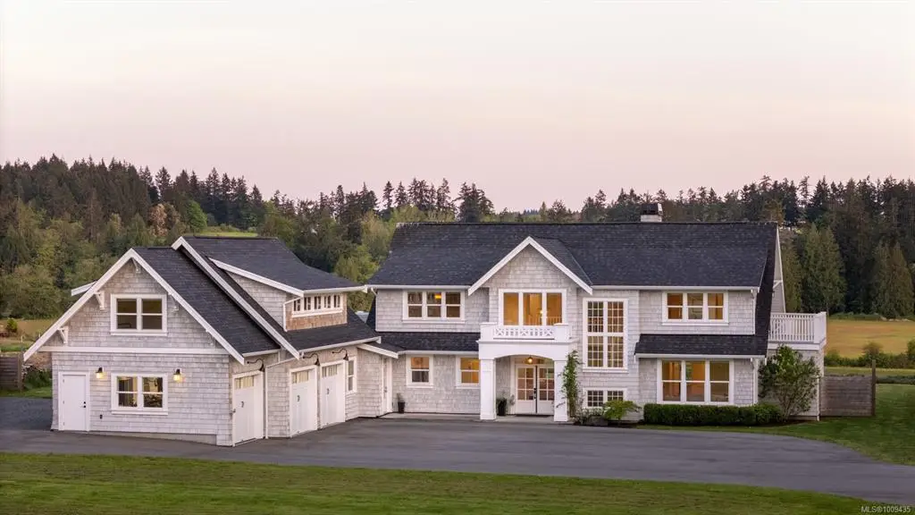 Discover effortless elegance in this cedar shingle, Hamptons-style home. Newly built by award-winning, Villamar Construction, this five bed, six bath, 4,796 square foot home blends timeless architecture with modern sophistication. The property, set on a pristine 62 acres, welcomes symmetrical design, gracious proportions, and clean lines while offering a seamless indoor/outdoor flow, light-filled interiors, and luxurious natural finishes throughout. An open floorplan, soaring ceilings, and wall-to-wall windows invite views into every room. A thoughtful layout offers two primary suites – one on the main floor and another on the second story. Keeping its connection to the outdoors, the home offers over 1,500 square feet of patio space and private verandas, enjoying exposures from sunrise to sunset. The picturesque property also includes an upper-level one bed, one bath carriage house and additional workshop. Located in the heart of Central Saanich, close to schools, parks, beaches, and trails.
