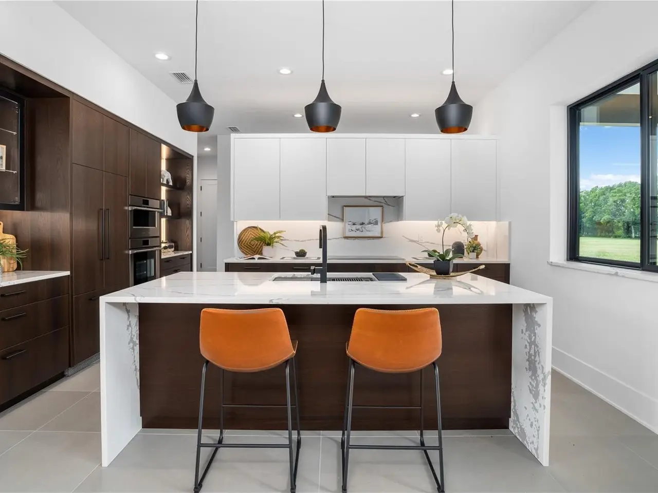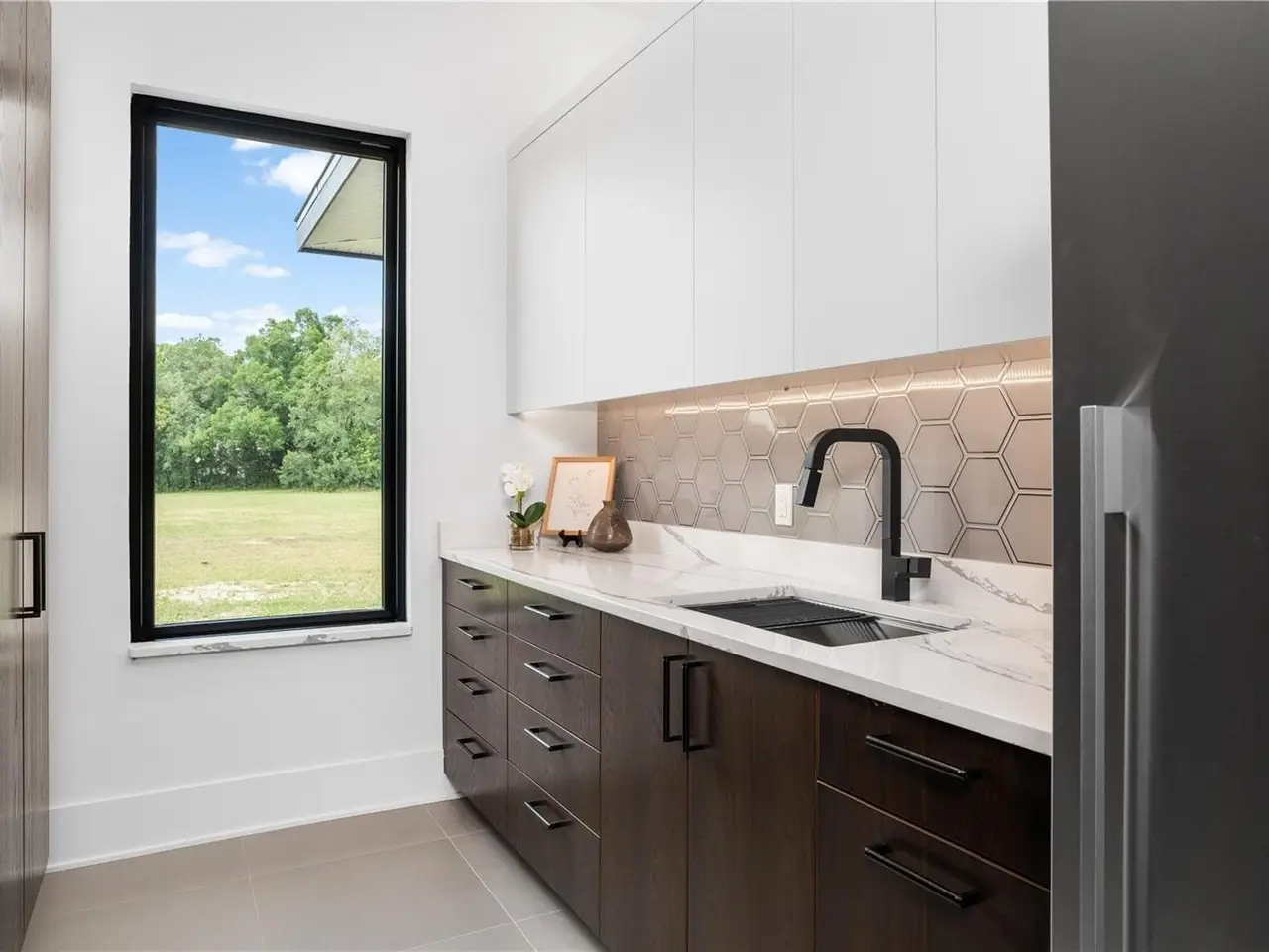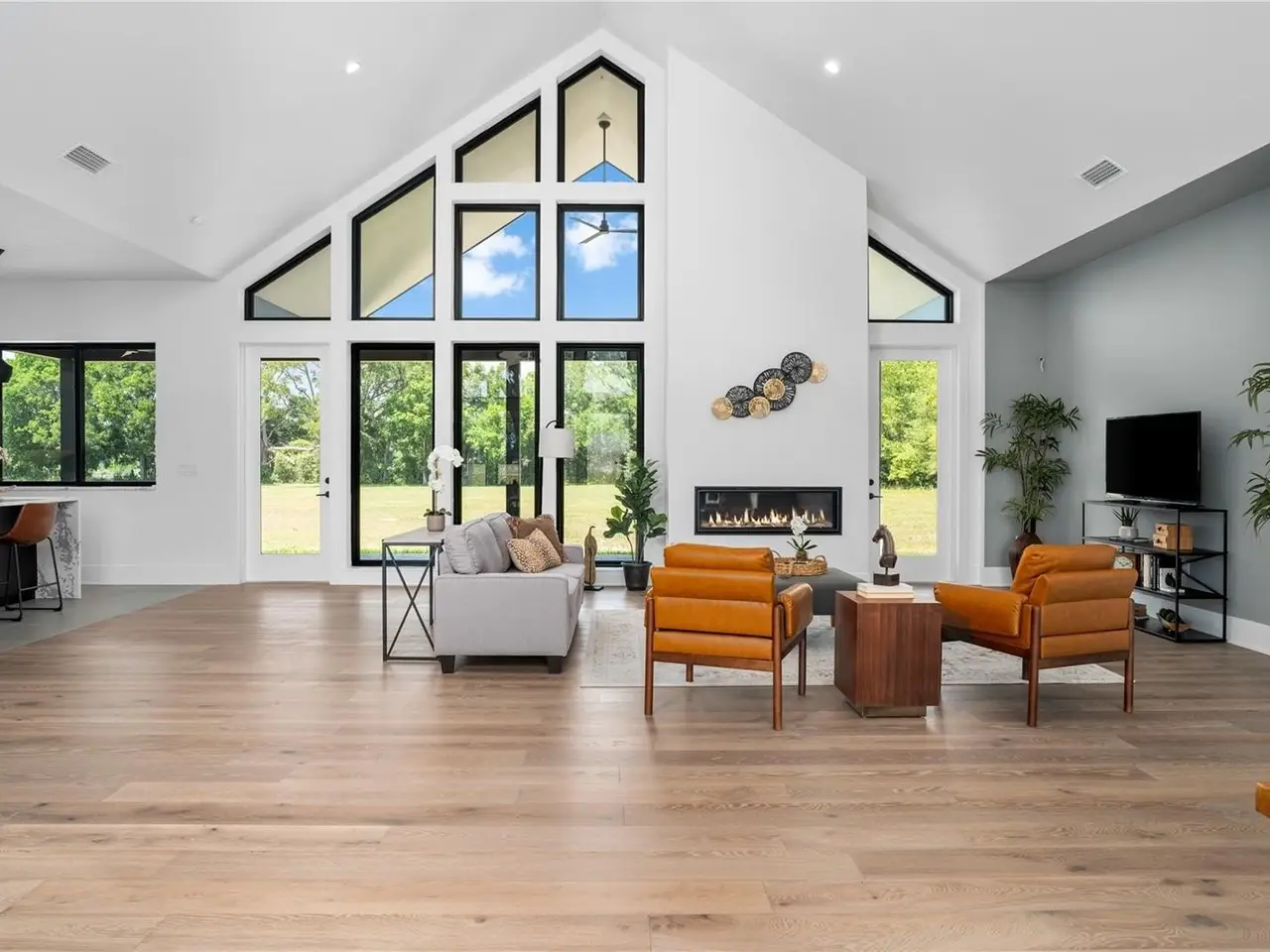 Introducing this extraordinary 5 bedroom, 4 bathroom, custom built home by Atlantic Design, situated on over 3 acres within an exclusive gated community of Dylan’s Grove. You are welcomed with a beautiful front porch that seamlessly flows into floor to ceiling premium Fibrex Composite windows, known for their superior insulation, durability, and low maintenance. Inside you will find an expansive living room with 18’ vaulted ceilings, filled with natural light, accompanied by an indoor vented 50” gas fireplace. Every detail was thoughtfully considered from the grain-matched wood cabinetry in the kitchen, custom-designed by Straw & Co Woodwork, to the upgraded Fisher and Paykel appliances, to the high-end fixtures and hardware that ties the space together. Adjacent to the kitchen is the butler’s pantry, offering additional custom cabinetry, a second sink refrigerator, dishwasher, and extra countertop space and storage. Also included in this space is a chic wet bar, perfect for crafting cocktails and hosting gatherings. This home is not only lavish but also environmentally conscious, boasting energy-efficient features throughout. From high-performance windows to efficient 18 Seer, 2 stage air conditioner systems with wi-fi thermostats, every detail has been carefully considered to minimize energy consumption without compromising comfort. The home has also been pre-wired for an alarm system, (6) gigabit ethernet ports, a wifi system, (4) exterior cameras, smart door locks, and automated lights. The exterior of the home is equally captivating, with an oversized covered lanai-already pre-wired and plumbed for a summer kitchen. The outdoor gas fireplace with stone veneer makes it a perfect sanctuary for those looking to cozy up and soak up the panoramic views. Schedule your private tour today and experience the epitome of luxury living.
