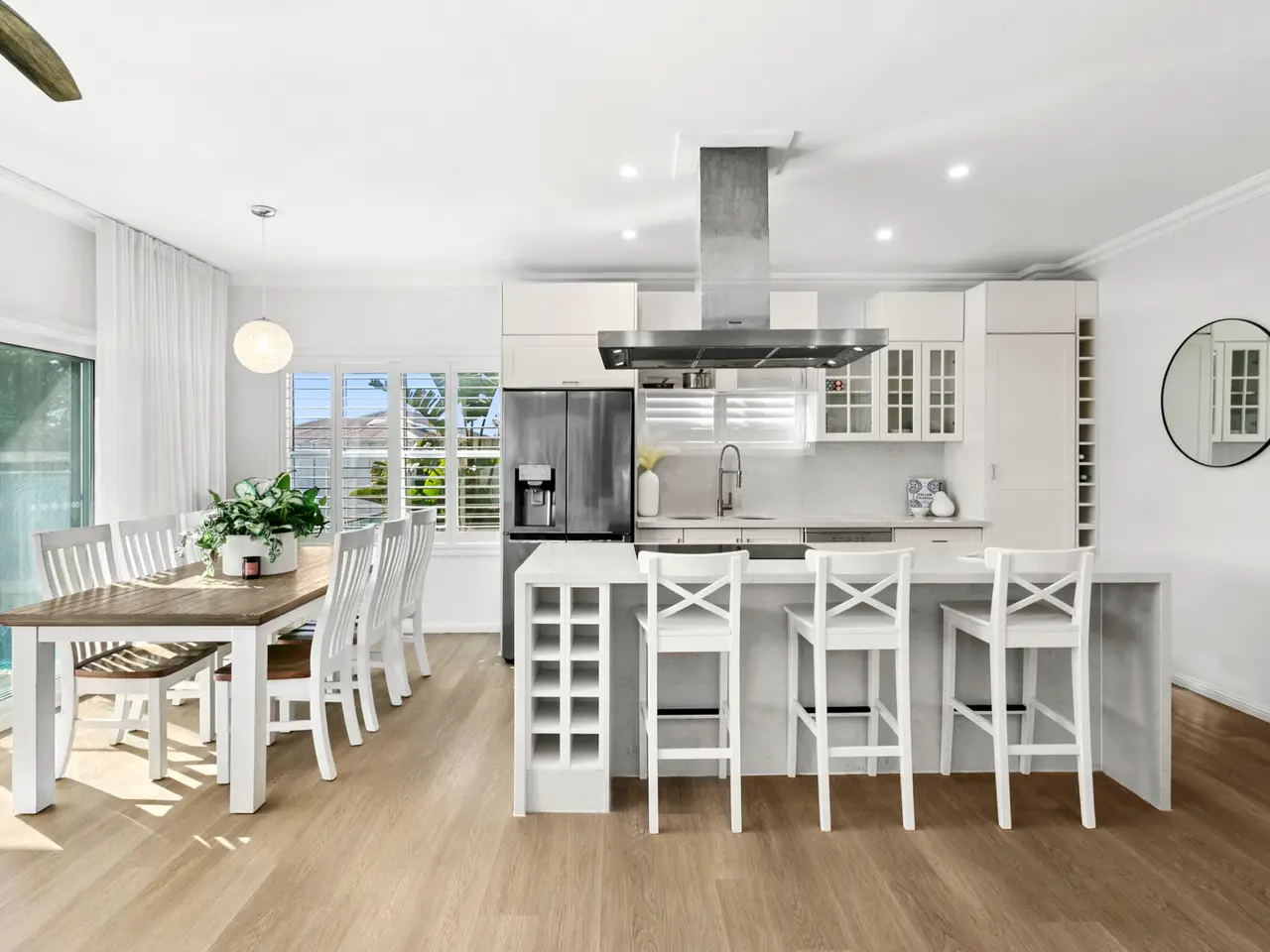 Privately nestled within a tranquil cul-de-sac, this beautifully presented family residence reveals a fluid and functional layout that celebrates effortless connection between indoors and out. The open plan living and dining domain unfolds into sunny alfresco space, with a covered deck, pool, and child-friendly garden that bask in a luminous north-westerly aspect. Comfortably tailored for modern family life, the home's configuration balances generous shared spaces with private breakout zones. Upstairs, the sumptuous master retreat is a private haven with its own balcony and elevated district outlooks, capturing soft light and a sense of calm. Thoughtful updates, considered design, and coveted level flow from living to outdoor entertaining complete a home that feels both refined and grounded. Positioned close to Narrabeen Lake, local schools, and village shops, with beaches and major amenities just moments away, this is a lifestyle of privacy, ease and connection, in one of the Northern Beaches' most peaceful pockets. - Immaculate dual-level home tucked well back from the road - Airy open plan living and dining with 2.8m high ceilings and excellent natural light - Effortless level flow to a deck overlooking a sun-drenched pool - Flawless kitchen with stone island, induction cooktop, dishwasher - Two bedrooms upstairs, two tucked quietly on the lower level - Luxe master retreat with bush views, balcony, and rainfall ensuite - Ground floor guest/teen suite with walk-in robe and full ensuite - Stylish family bathroom with freestanding bath, rainfall shower - Additional upstairs rumpus, under stairs storage, plantation shutters - Approved fourth bathroom upstairs currently used as a laundry - Secure gated entry, carport and driveway parking for five vehicles - Serene cul-de-sac setting just moments from Narrabeen Lake - 150m to local buses, 2km to Jamieson Park and Narrabeen Lake - 500m to Berith St entry to Wheeler Heights Public School - 750m to St Rose Catholic Primary, 1.6km to NBSC Cromer Campus - 2.4km to Pittwater House, 5.1km to St Luke's Grammar - 950m to IGA Collaroy Plateau and local shops and cafes - 5.8km to Warriewood Square, 6.1km to Westfield Warringah Mall