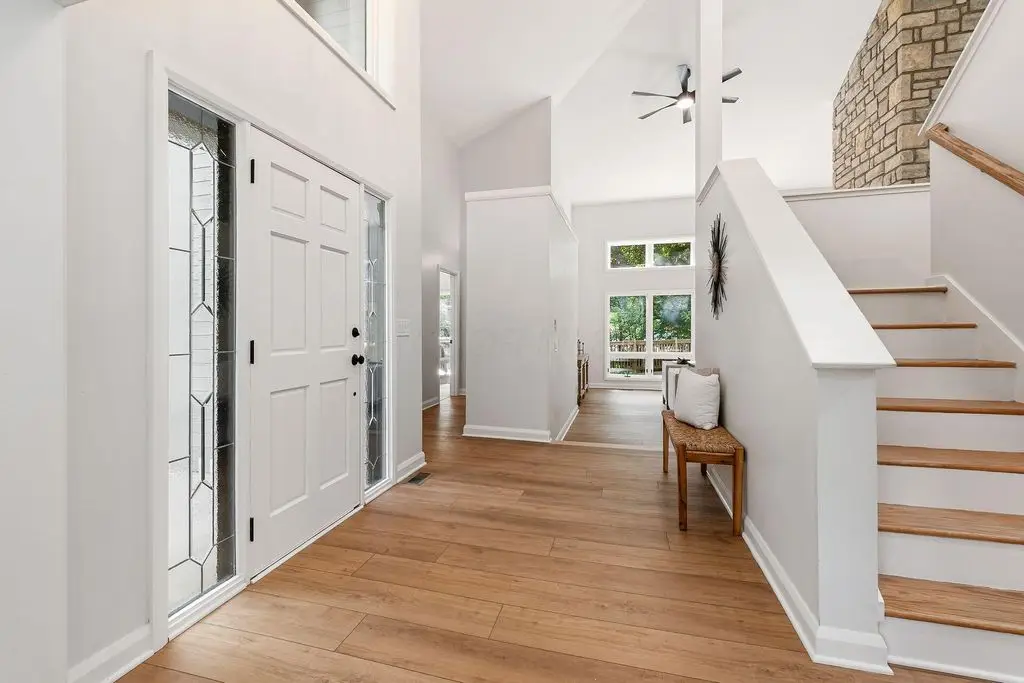 Experience refined living in this fully reimagined custom estate, tucked away on -2 private wooded acres in one of Westerville's most prestigious settings. Originally built in 1988, this home has been completely transformed inside and out with high-end modern finishes paired with timeless craftsmanship throughout its expansive sq ft of living space. The main floor features an open, light-filled layout with walls of windows that bring the outdoors in. The showpiece is a first-floor primary suite a true retreat offering a spa-like bathroom with a floor-to-ceiling tiled shower, dual rainfall showerheads, and a freestanding soaking tub. Step directly from your suite onto a deck overlooking the serene, wooded ravine. A first-floor laundry room and mudroom add seamless day-to-day convenience, while the custom chef's kitchen flows into the spacious living area perfect for entertaining. Waddington Oak flooring, soaring ceilings, and thoughtful architectural details elevate every space. The fully finished walk-out lower level is an entertainer's dream, complete with a custom bar, home gym, generous media area, a full bedroom with its own luxurious en-suite bath, and direct access to another outdoor deck ideal for gatherings or peaceful evenings surrounded by nature. With five total bedrooms, three full and two half baths, and multiple indoor/outdoor living areas, the home offers exceptional flexibility for multi-generational living or extended guest stays. This is more than a home it's a lifestyle. A world of privacy, sophistication, and connection to nature just minutes from top-rated schools, Hoover Reservoir, and the best of Westerville. Private showings begin soon contact Beth Williams directly to experience this extraordinary property.