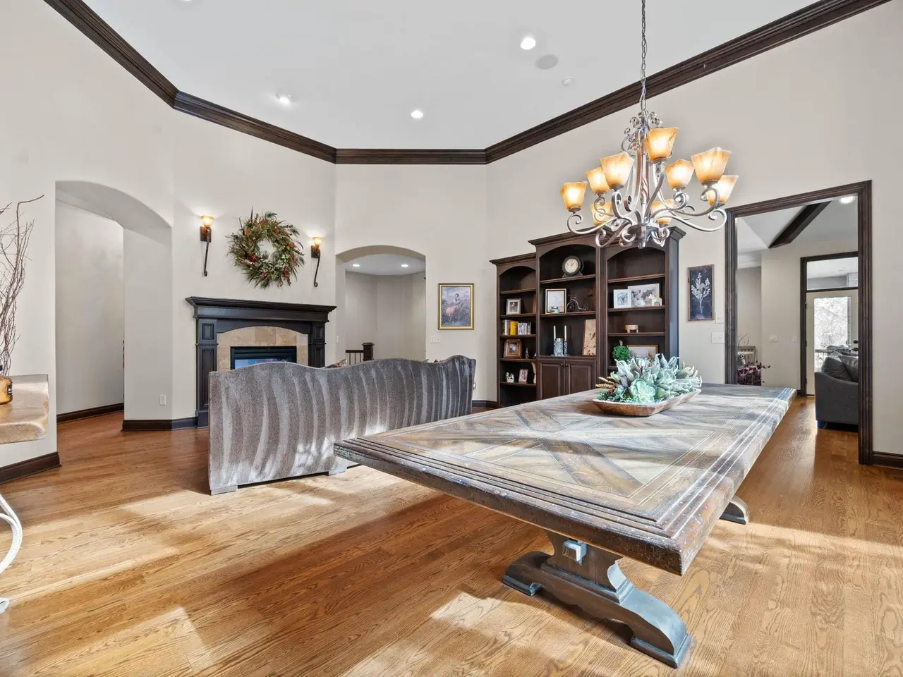 Welcome Home to 8219 W. Meadow Park, located in the sought-after gated Fossil Rim Estates neighborhood of west Wichita. This full brick and stone residence combines craftsmanship, comfort, and natural beauty on nearly one acre backing to mature trees. Designed for everyday living and memorable entertaining, the home offers 6 bedrooms, 4.5 baths, and approximately 6,082 sq ft of finely finished space. Step inside to find architectural detail at every turnarched entries, custom millwork, crown moulding, and gleaming hardwood floors. The open main level showcases a formal living and dining area with built-ins, gas fireplace, and tall windows that frame peaceful tree views. The adjoining hearth room features a stone fireplace with beam accents, creating a warm gathering space connected to the gourmet kitchen. Well-appointed for cooks and hosts alike, the kitchen includes granite countertops, double ovens, gas cooktop, stainless appliances, two large islands, and a walk-in pantry with prep sink. A main-floor office provides an ideal workspace, while the laundry room offers built-in cabinetry, sink, and drop-zone bench. The spacious primary suite is a private retreat with a coved, lighted ceiling and a wall of windows overlooking the wooded yard. The spa-style bath offers dual vanities, jetted tub, custom tile shower, and an impressive walk-in closet with built-ins. Two additional bedrooms and a full bath complete the main level. The finished walk-out basement extends the living space with a large family room centered around a stone fireplace, full wet bar with granite counters and slate flooring, billiards area, exercise room, two bedrooms, concrete safe room, and abundant storage. Natural light and patio access make the lower level ideal for entertaining or relaxation. Outdoor living shines here with a covered composite deck featuring a stone fireplace, perfect for year-round enjoyment, and a lower brick patio surrounded by landscaped beds. The expansive yard includes fencing, fire pit, and a private well and sprinkler system. The side-load three-car garage offers epoxy flooring and extra workspace. A concrete tile roof and full masonry exterior provide exceptional durability and timeless curb appeal. Located in Maize School District 266, within minutes of Sedgwick County Park, NewMarket Square shopping and dining, Ridge Road corridor amenities, and the Northwest YMCA, this property delivers the perfect balance of privacy and convenience. Experience refined living in Fossil Rim Estateswhere design, setting, and quality craftsmanship come together in one remarkable west-side Wichita address.