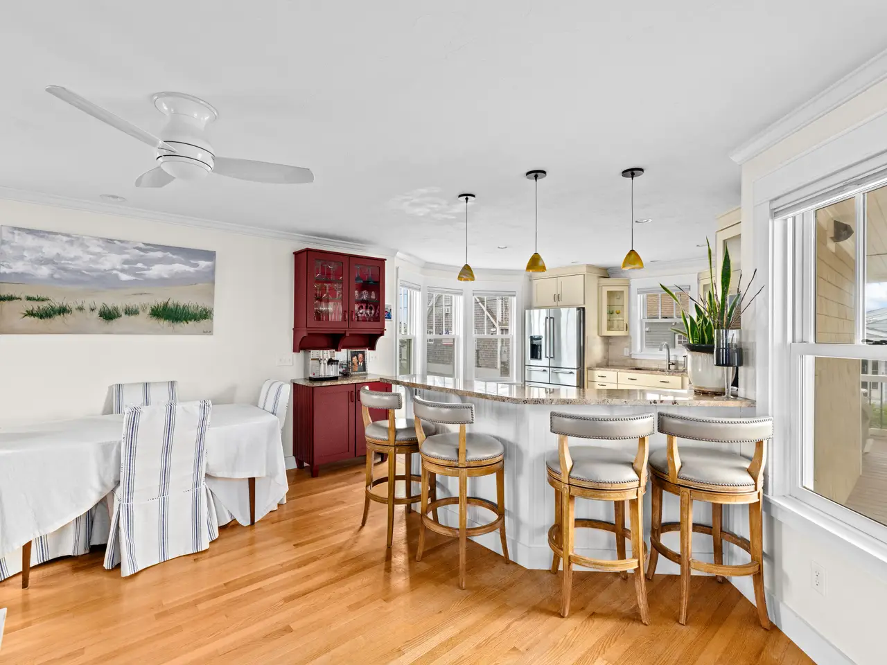 Wake up to ocean, harbor, and lighthouse views from this exquisitely designed three-level home. Expertly built with top-tier craftsmanship, this home combines timeless elegance with modern comfort. The gourmet kitchen features high-end appliances, custom cabinetry and a layout ideal for entertaining. The luxurious primary suite provides a private escape with spa-like amenities. A heated sunroom offers a cozy, light-filled space to enjoy the surroundings all year round. Step out to the wrap-around deck— perfect for al fresco dining, morning coffee or taking in the sea breeze. Just minutes to beaches, marinas, shopping and commuter rail.