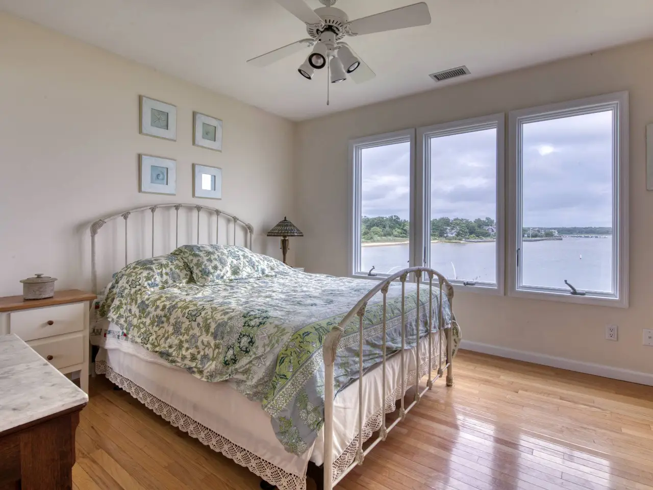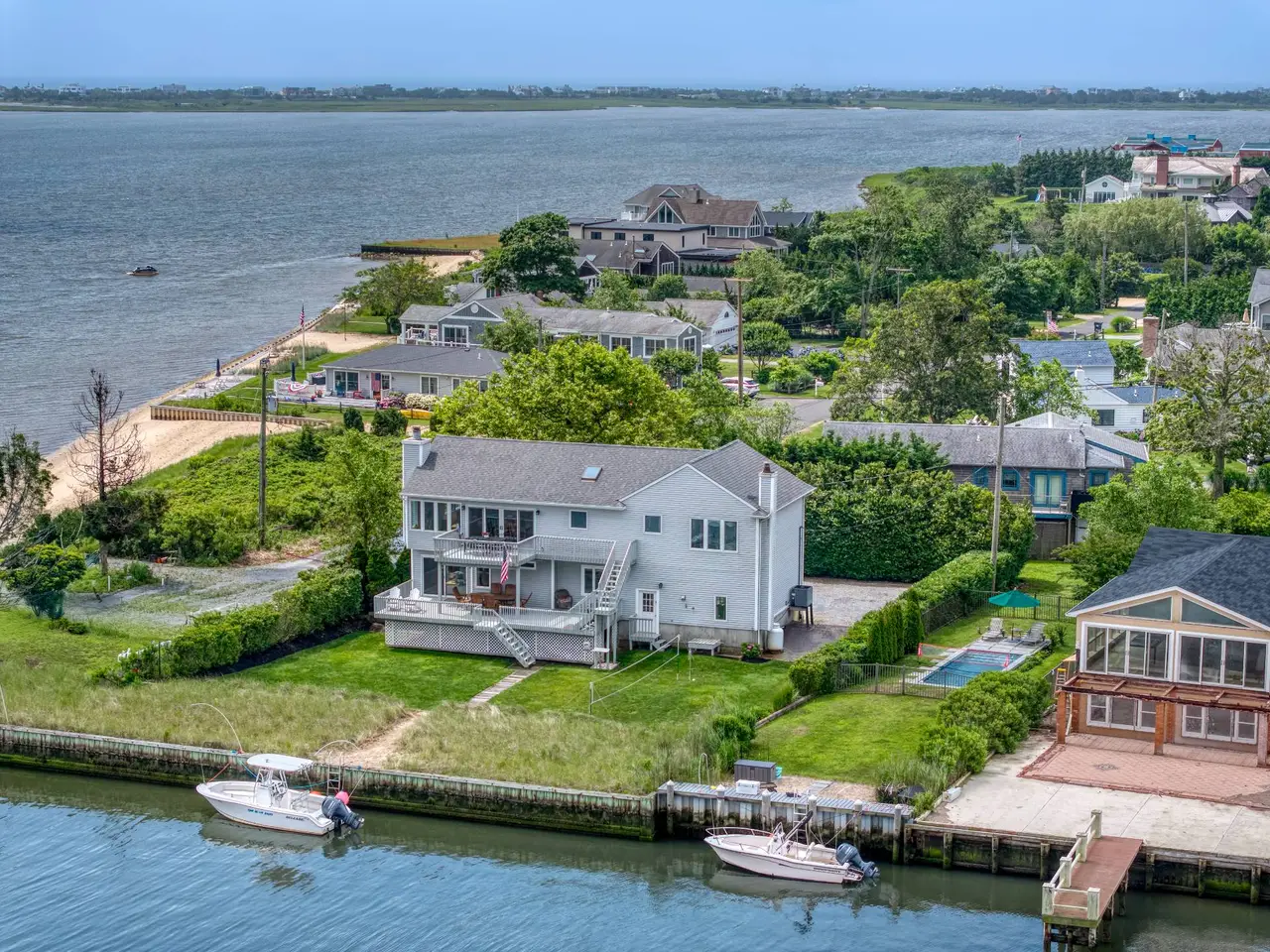 Waterfront Beach House / Shinnecock Bay, East Quogue Nestled along the shimmering shores of Shinnecock Bay, this stunning two-story beach house boasts panoramic water views to the east, south to Dune Road, and west-offering serene sunrises and captivating sunsets. Situated within an exclusive private beach community with residents-only access, the home is perfectly designed for effortless summer living. Expansive decks on both levels create inviting spaces for entertaining or peaceful relaxation by the water's edge. A bulkhead with ample space to dock your boat enhances the true bayfront lifestyle, complemented by four community docks providing added convenience for boating enthusiasts. Whether you're looking for a weekend retreat or year-round coastal sanctuary, this East Quogue gem embodies the best of Hamptons waterfront living.