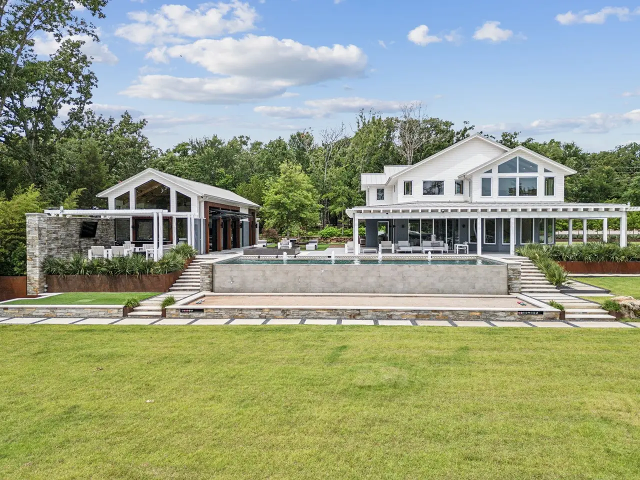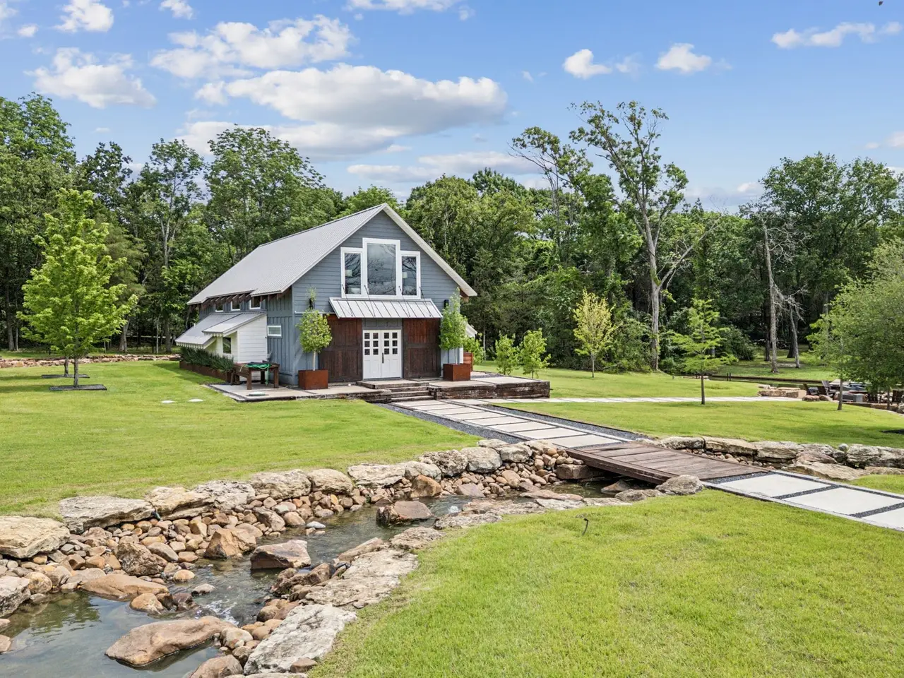 Tucked away on 14 breathtaking acres at Richland Chambers Lake, this one-of-a-kind lakefront estate blends global architectural influences with the relaxed elegance of lakeside living. Designed with intention and inspired by travels across the world, the 5-bedroom home is a masterpiece of natural light and thoughtful design, wrapped in walls of windows that frame stunning views of the water and surrounding landscape. Every inch of this property was created to embrace the outdoors and bring a resort-style experience to daily life. The main residence opens seamlessly to an entertainment pavilion that includes kitchen and bar inviting alfresco dining, and a beautiful resort-style pool sets the tone for relaxation. A fully equipped gym with a private outdoor shower and tranquil courtyard offers the perfect wellness escape. For those who love to entertain or stay active, the property features a pickleball court alongside a sports pavilion that includes a spectator area and bar. This space is primed to be outfitted with massage rooms, locker rooms, or whatever vision you imagine. A beautifully designed multi-use building that includes bedroom, full bath, kitchen and a loft which adds flexibility - ideal as an indoor sports facility, spacious guest house, creative studio, or grand bunk house. Down by the water, the two-story boat dock is a dream setup, with room for two boats and two jet skis, plus an upper level perfect for lounging under the Texas sun. Meandering through the property is a charming brook, while a fire pit, bocce ball court, and countless other amenities to create endless opportunities for fun, connection, and serenity. This property isn't just a home, it's a private resort, a gathering place, a retreat. Truly one of a kind, and ready to be enjoyed. Information is deemed reliable, Buyer and Buyers agent to verify.