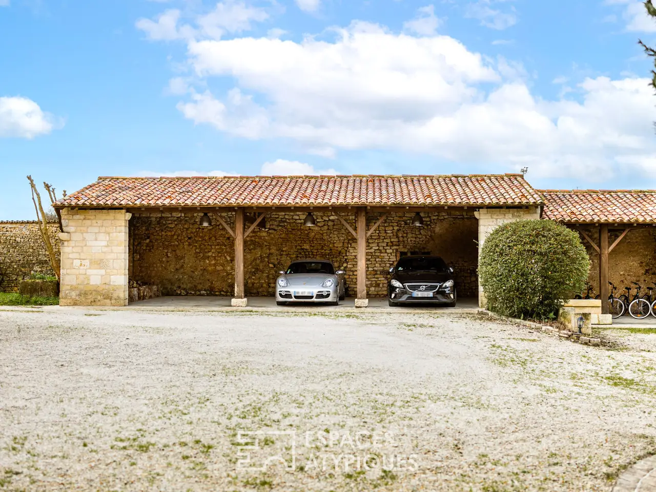 Located in a hamlet between Saintes and Royan, central position 25 minutes from the beaches, this property with careful appointments hosts an authentic Saintongeaise house of approximately 400m2 and partly restored outbuildings.The place, ideal for a large family or for a professional operation, will seduce with its services and its environment, ensuring calm and serenity. It is in the heart of a superb landscaped park of more than 5000m2, planted with trees of multiple species that the building rises and reveals its quality renovation, carried out according to the rules of the Art.Here, the materials have been carefully selected for a timeless decoration combining modernity and authenticity. The entrance hall, with its terracotta floor, sets the tone. It reveals a beautiful height under ceiling and allows access on the one hand to a bright living room equipped with a fireplace, and on the other hand to the modern kitchen.This friendly space will delight epicureans with a passion for cooking, and hides beautiful original elements. It joins a bar area with cozy decoration where you can easily imagine sharing joyful moments with friends or family. These living spaces extend onto a terrace which allows meals to be taken outside, enhanced by the surrounding vegetation. The other wing of the house benefits from a friendly library lounge, bright in every season thanks to its large openings offering a view of the swimming pool and the garden. A first sleeping area has three magnificent suites, each of which has a private bathroom.Upstairs, the central landing distributes four comfortable bedrooms as well as an office. Two of them have a private bathroom, the other two share a bathroom and separate WC.A 60 m2 room dedicated to leisure currently accommodates a gym and sauna, but may be suitable for artists looking for space. Another building, today dedicated to wine tasting, benefits from a real cellar, which will appeal to all wine lovers. Adjoining a double garage and a laundry room. Finally, an old 12th century chapel still has potential awaiting a new project.The garden turns out to be a real cocoon where everyone can go about their activities: read a book near the wisteria, cultivate their vegetable garden in the priest's garden, soak up the sun on the terrace around the swimming pool, without forgetting the grounds petanque!A decidedly unique property, a perfect marriage between the charm of the past and the comfort of modern living, just 25 minutes from the seaside, the ideal place for a family refuge or even a professional project.ENERGY CLASS: C / CLIMATE CLASS: C - Estimated average amount of annual energy expenditure for standard use, established based on energy prices for the year 2021: between EUR3,870 and EUR5,300.REF. EALR1999Additional information* 13 rooms* 7 bedrooms* 1 bathroom* 6 shower rooms* Floor : 1* 1 floor in the building* Outdoor space : 5075 SQM* Parking : 6 parking spaces* Property tax : 1 895 €Energy Performance CertificatePrimary energy consumptionc : 164 kWh/m2.yearHigh performance housing*A*B*164kWh/m2.year24*kg CO2/m2.yearC*D*E*F*GExtremely poor housing performance* Of which greenhouse gas emissionsc : 24 kg CO2/m2.yearLow CO2 emissions*A*B*24kg CO2/m2.yearC*D*E*F*GVery high CO2 emissionsEstimated average amount of annual energy expenditure for standard use, established from energy prices for the year 2021 : between 3870 € and 5300 €Agency feesThe fees include VAT and are p