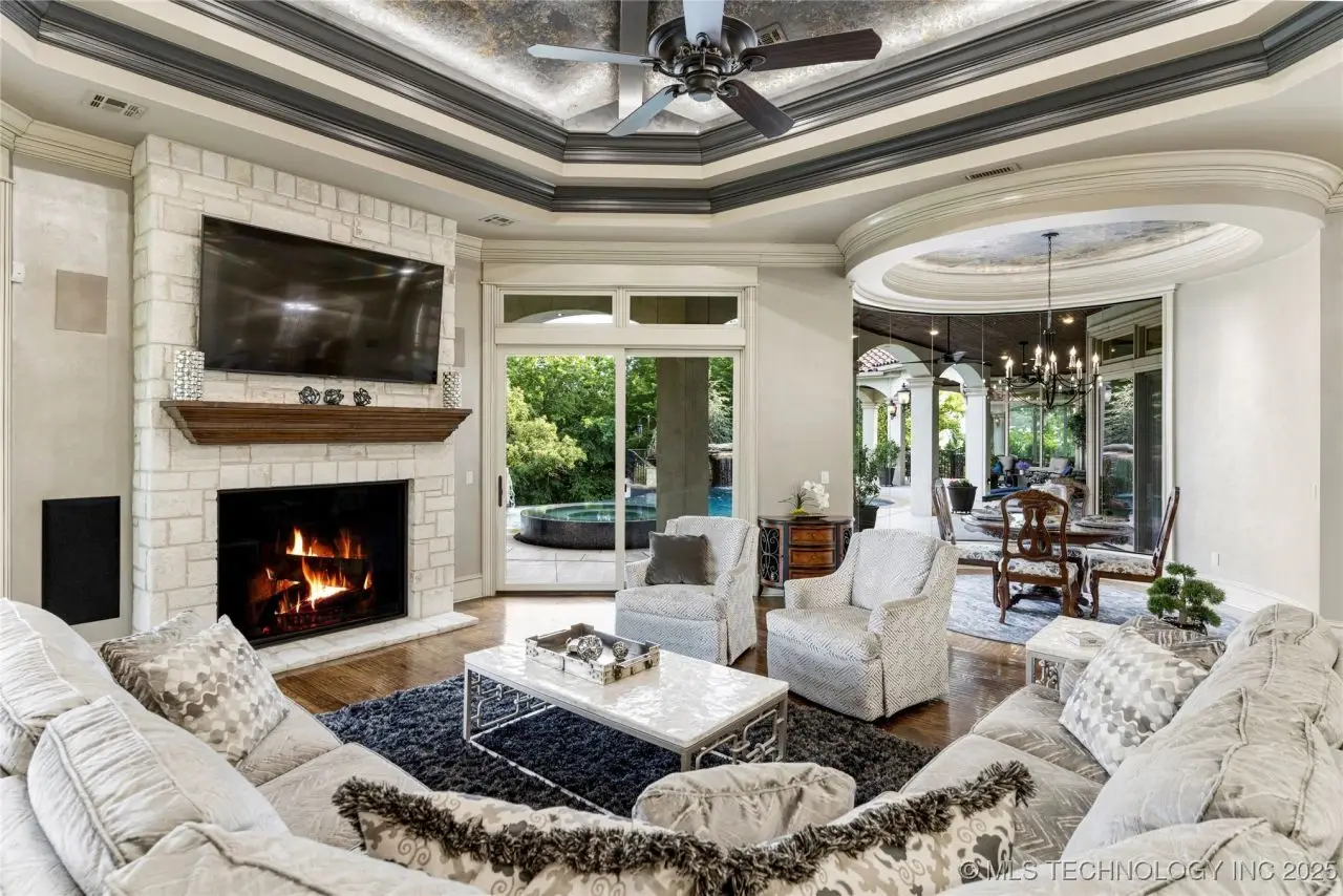 EXTRAORDINARY 2017 Ironwood Homes estate, situated on over 1 acre within prestigious gated Bluffs at Stone Canyon, overlooking 6 holes of the Patriot Golf Course. This exceptional residence showcases unparalleled quality & attention to detail, with meticulous craftsmanship & high-end finishes throughout. Hand-chiseled wood floors, concrete tile roof & lightning rods, full foam insulation, full water softener/filtration system, and a whole home Generator. Enjoy a 6-car garage with epoxy flooring, providing ample space for boat storage & luxury vehicle parking. 4 bedrooms, with en-suite baths, Master Suite retreat, boasting coffee bar, fireplace, sound system, & sitting room w/breathtaking views. Master bath spa, featuring His & Hers "glamour" closets, Jacuzzi tub w/chroma therapy, shower w/4 heads & full body jets, and direct access to a private exercise room equipped with tanning booth, sauna, & heat/air. Open concept living combines the chef's kitchen & great room, plus a separate formal living & dining space, creating an ideal environment for entertaining. The kitchen is a culinary dream, featuring a Galley sink, built-in accessory storage, Thermador Induction w/gas available, double ovens, massive pantry, All Fridge/All Freezer unit, instant hot water, & Scotsman ice. Executive Office with built-in desk, bookshelves, & outside entry. The estate also boasts 4 fireplaces: 3 indoors & 1 outside, adding charm & warmth to various areas of the home. Experience the ultimate in outdoor living! Infinity-edge pool & hot tub, full outdoor kitchen, fire pots, a full property mosquito misting system, and a heated & sound-equipped lanai that overlooks the beautiful surroundings. Technology and convenience are integrated throughout the home with full Control 4 Smart Home system, offering audio, video, lighting, and cameras, plus a theater room equipped with Dolby Atmos Audio, 4K DLP Laser Projector, Stewart High-Resolution Projector Screen, & full bar with Scotsman ice!